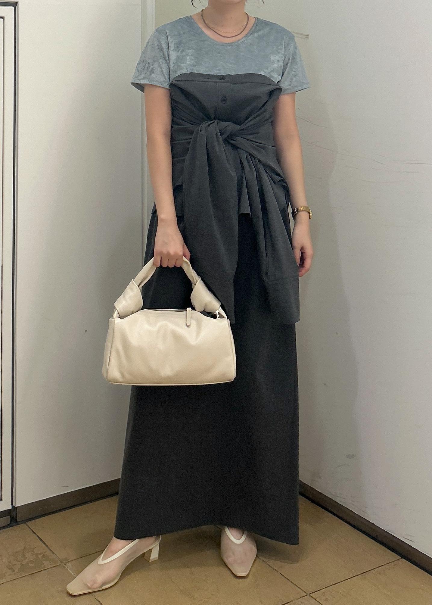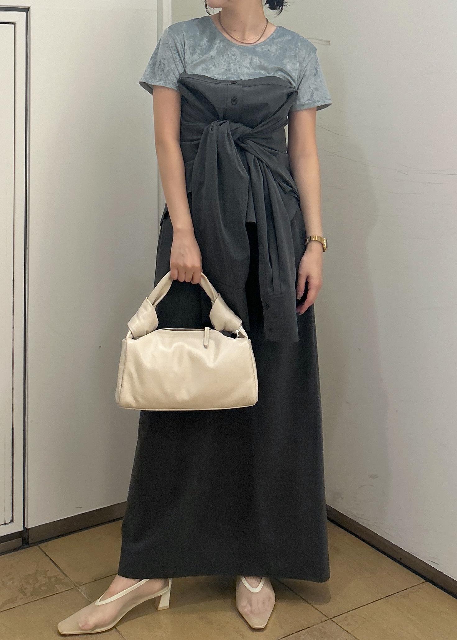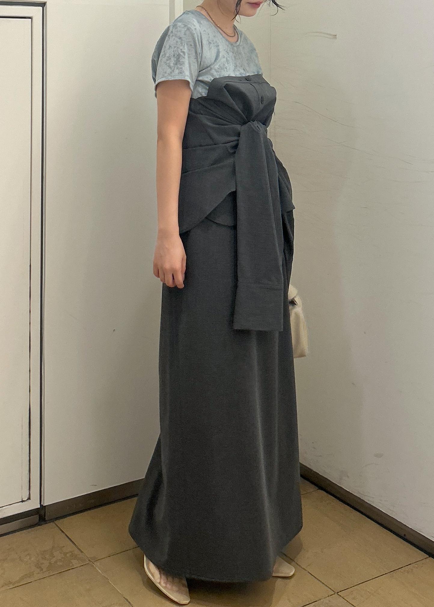 ADAM ET ROPÉ FEMME【一部WEB限定カラー】・【接触冷感】マルチWAYレイヤードシャツスカートネイビー系 / 36¥23,100レビュートップスは腕を通さず、腰に巻いてみました!
