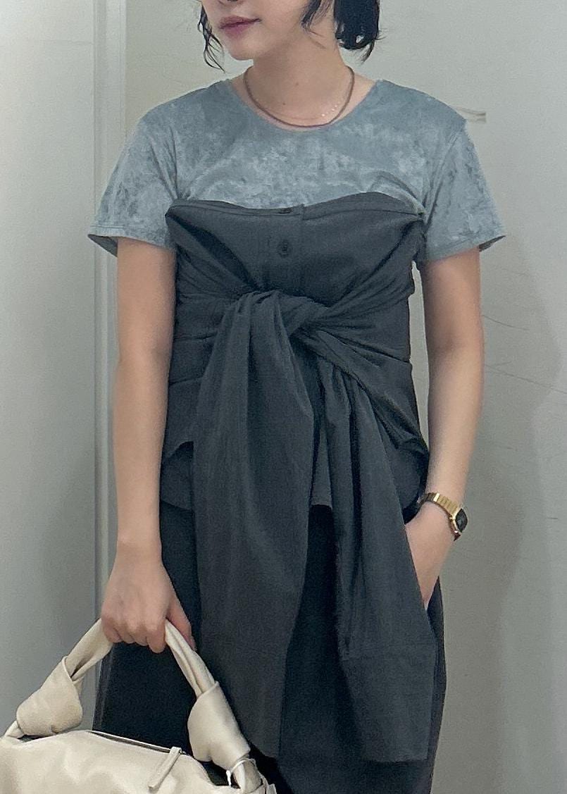 普通にトップスとしても着たり、腰に巻いてアレンジしてもいいので着回しできて便利です。