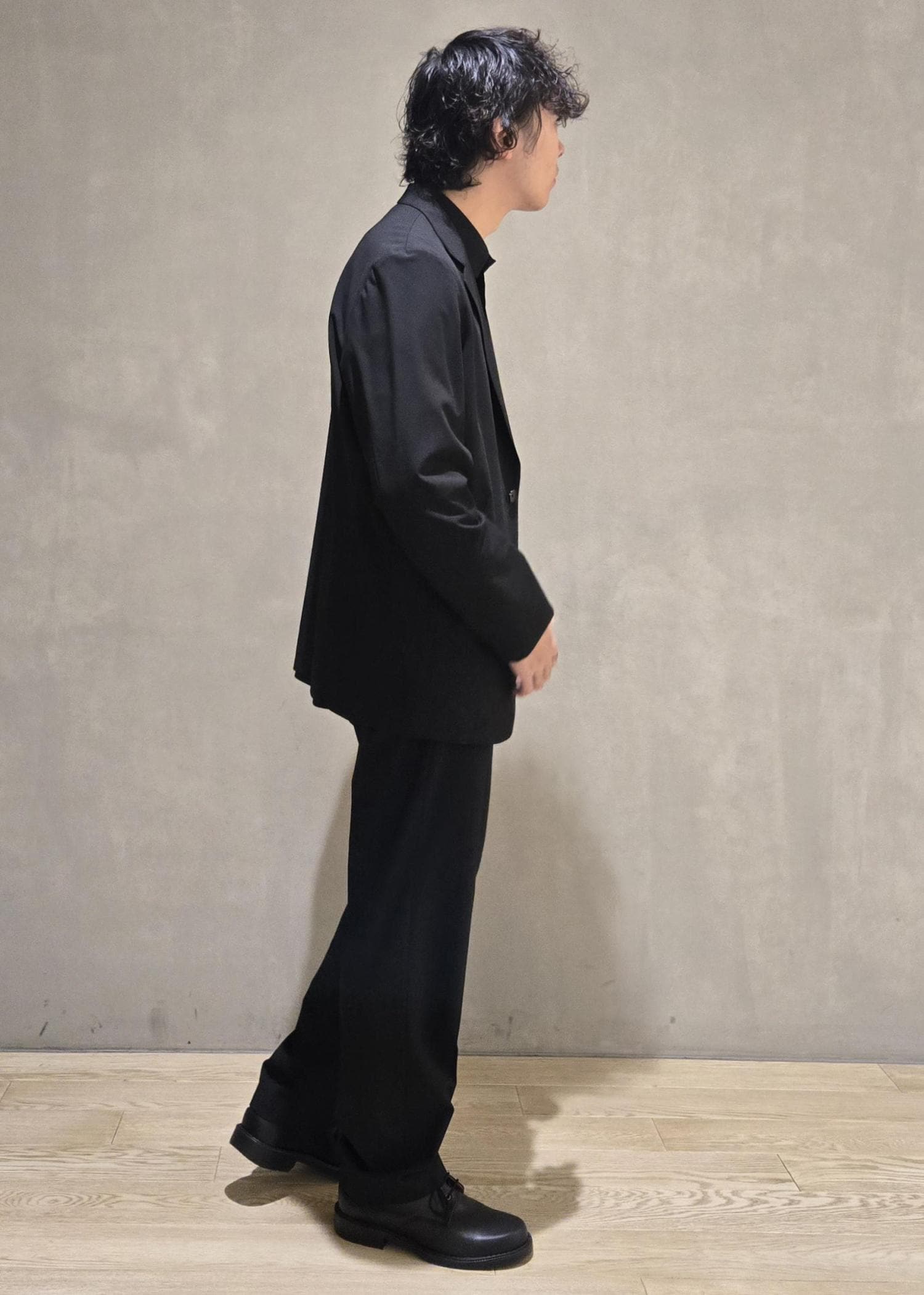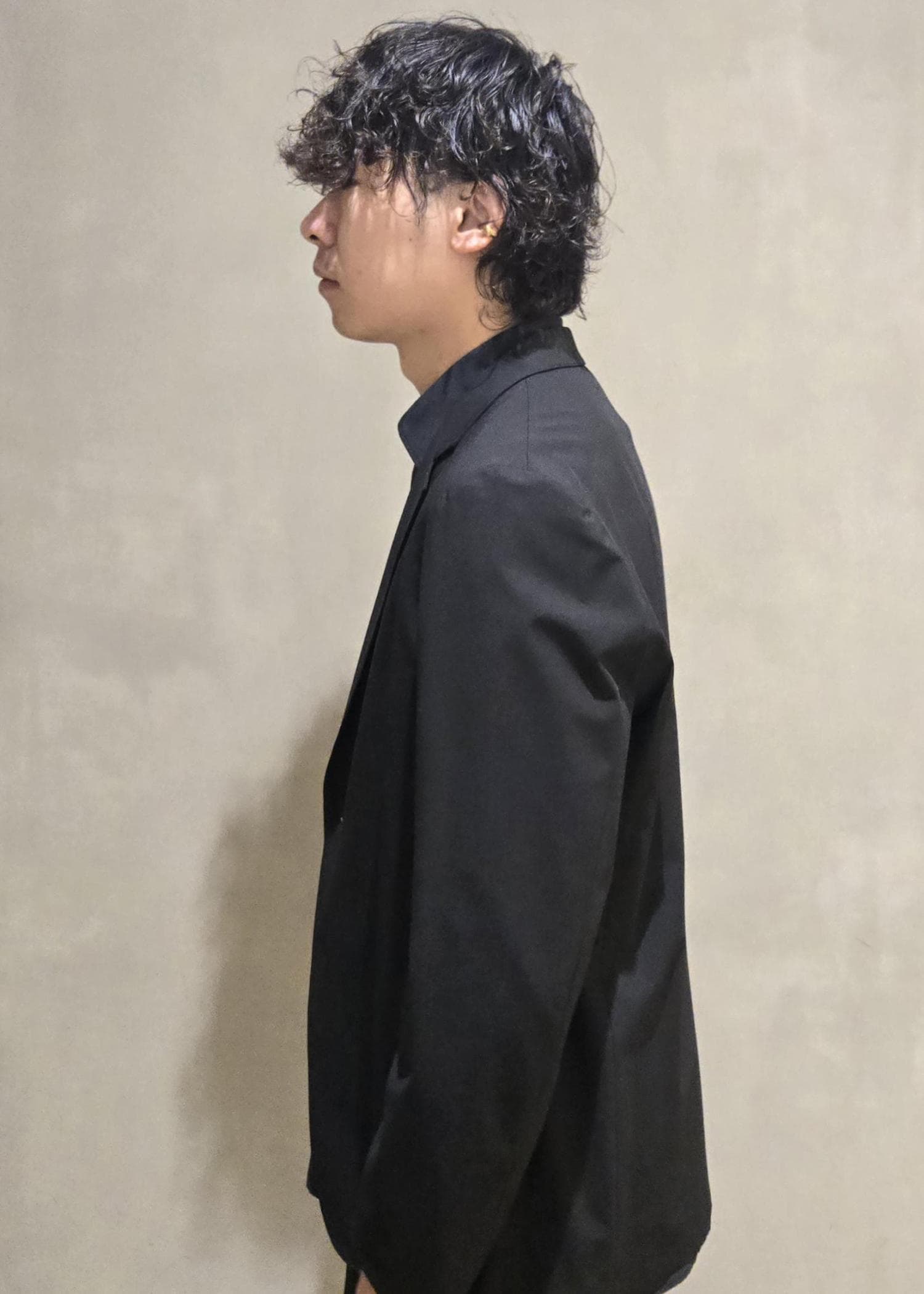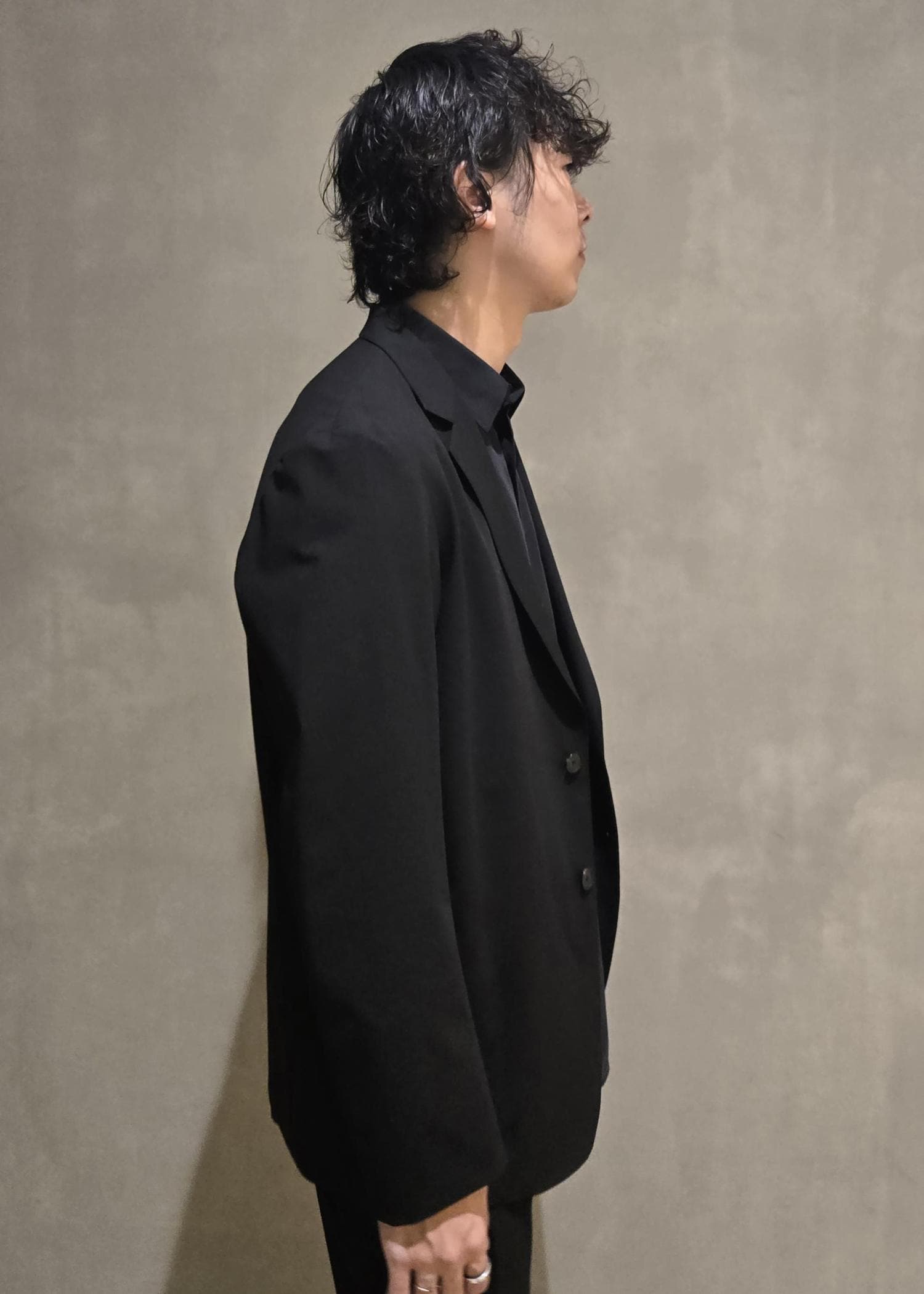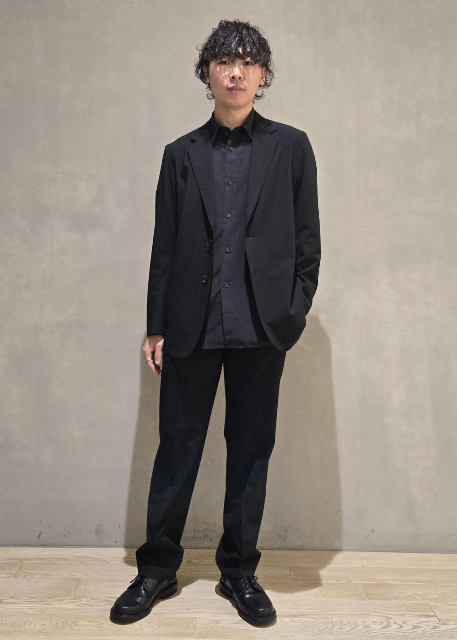 スタイリングとしてはセットアップのジャケットもシャツもワントーン ブラックコーデでまとめてみました!