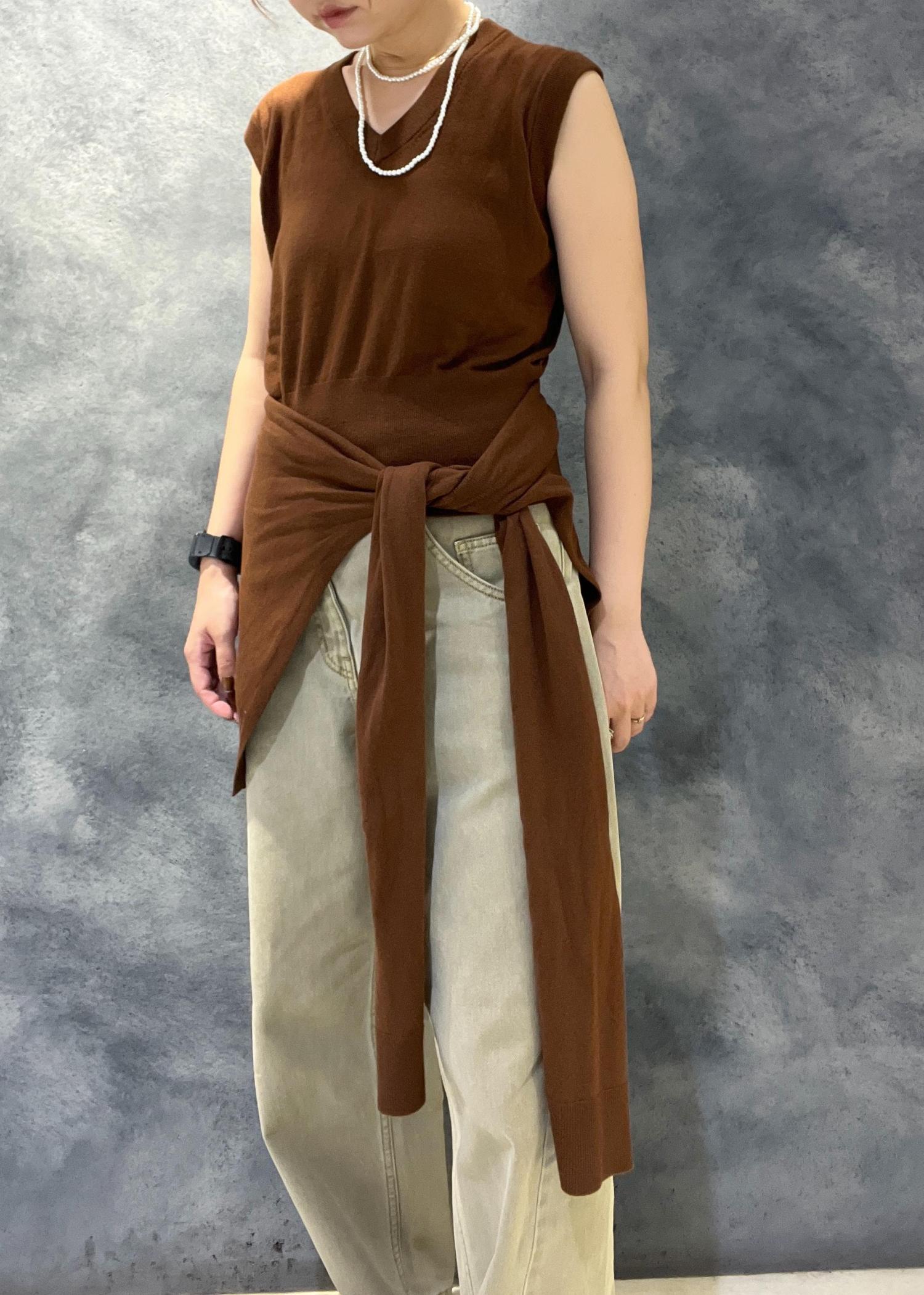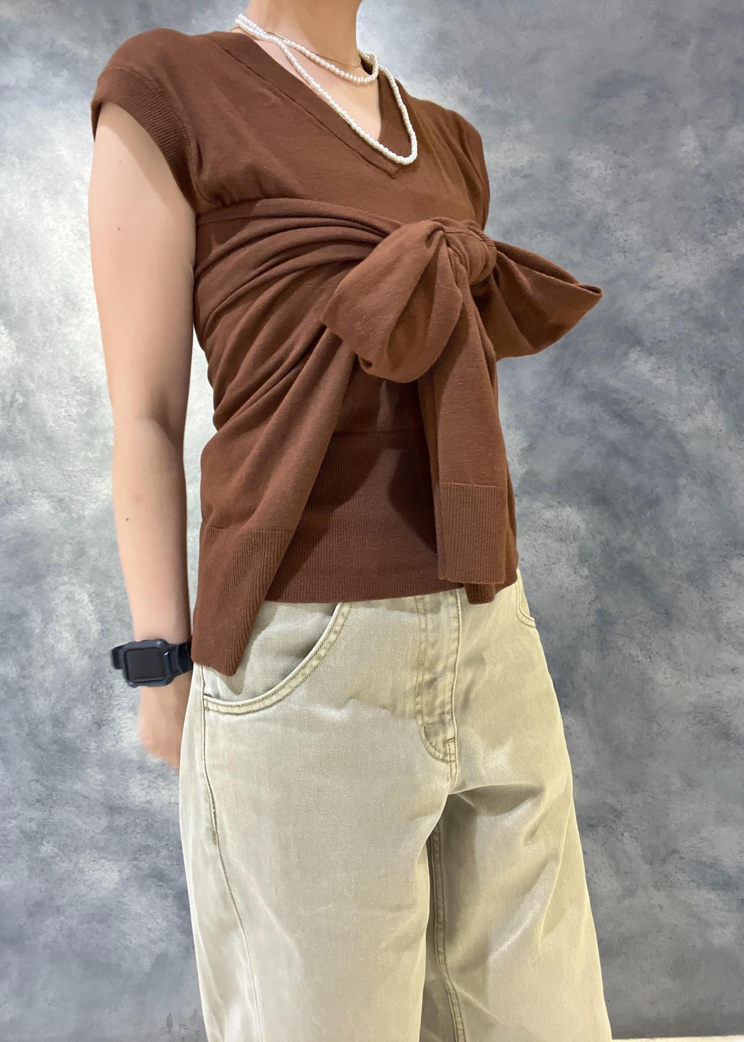 アウトレットADAM ET ROPÉ FEMMEラップストールコンビノースリーブプルオーバーブラウン / F¥12,551レビュー素材はカシミヤ混のコットンで、