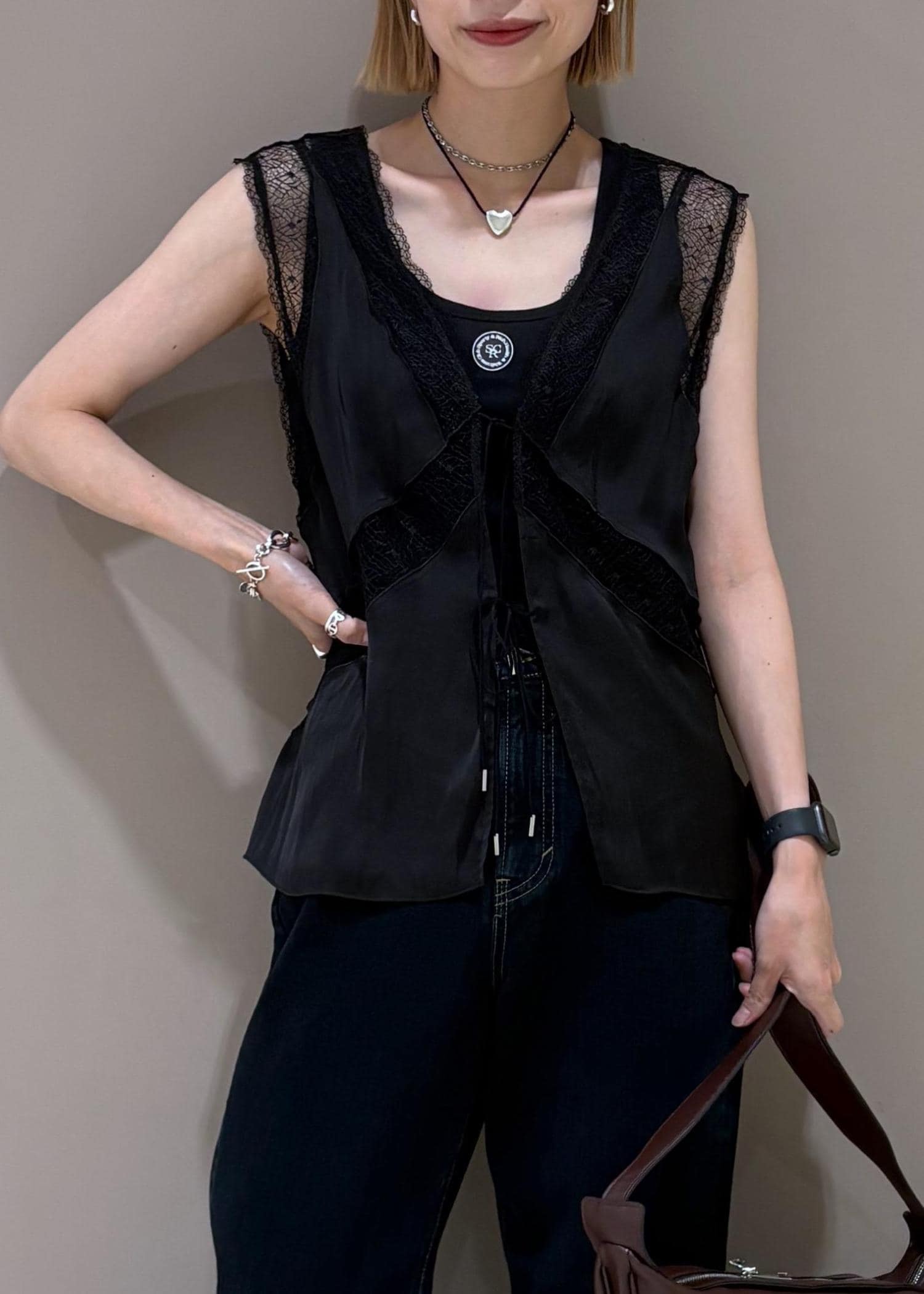 胸元のロゴがさりげなく、可愛いタンクトップ。
