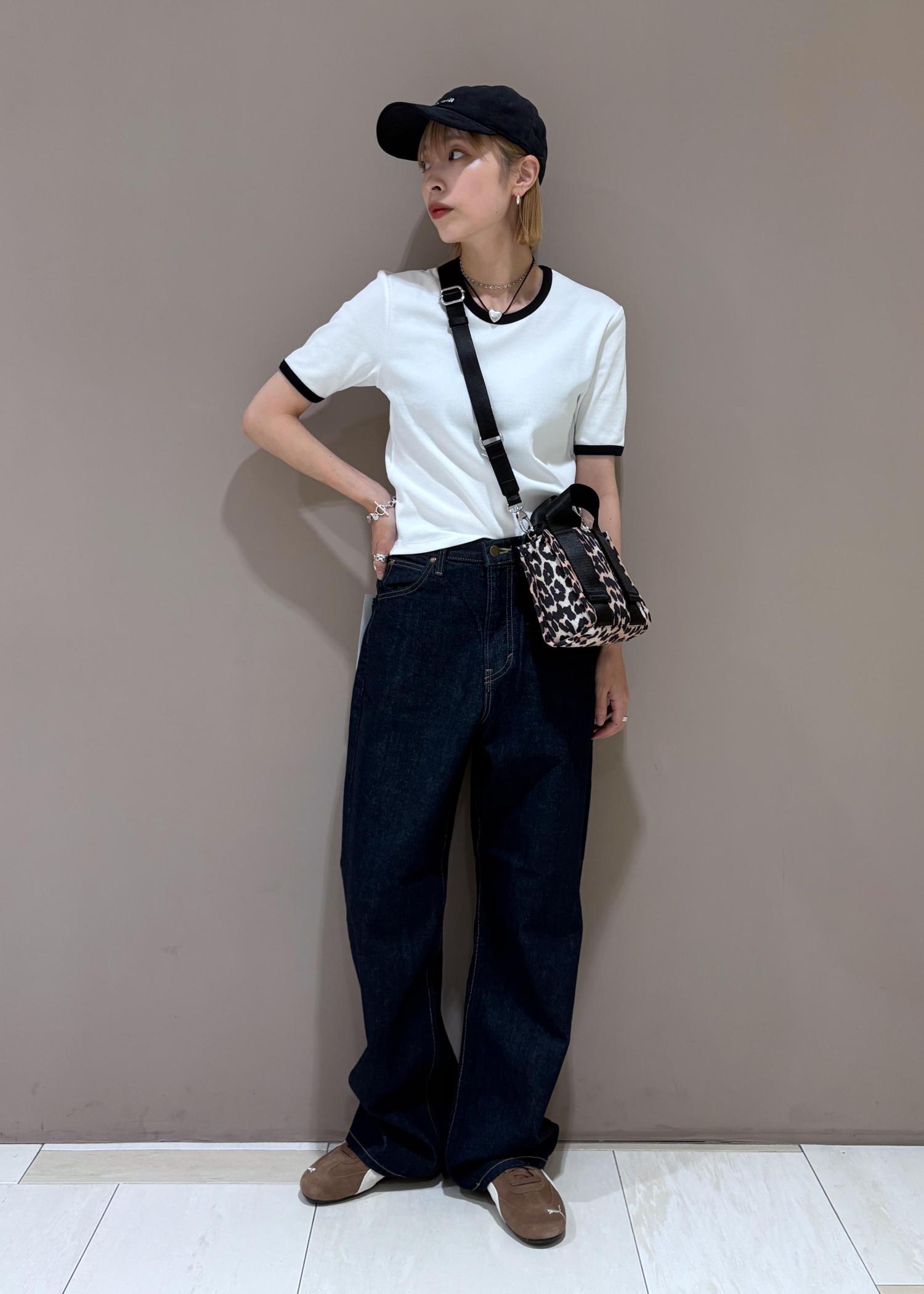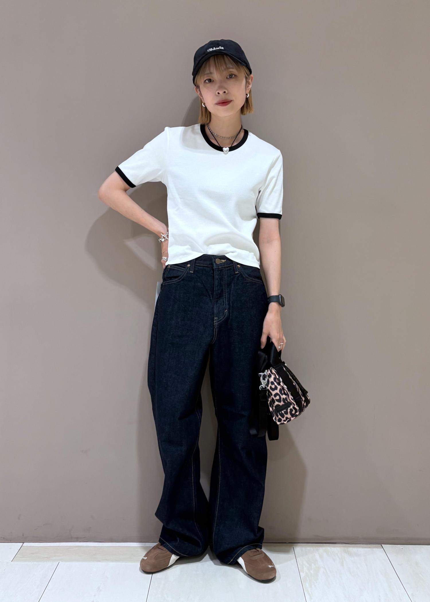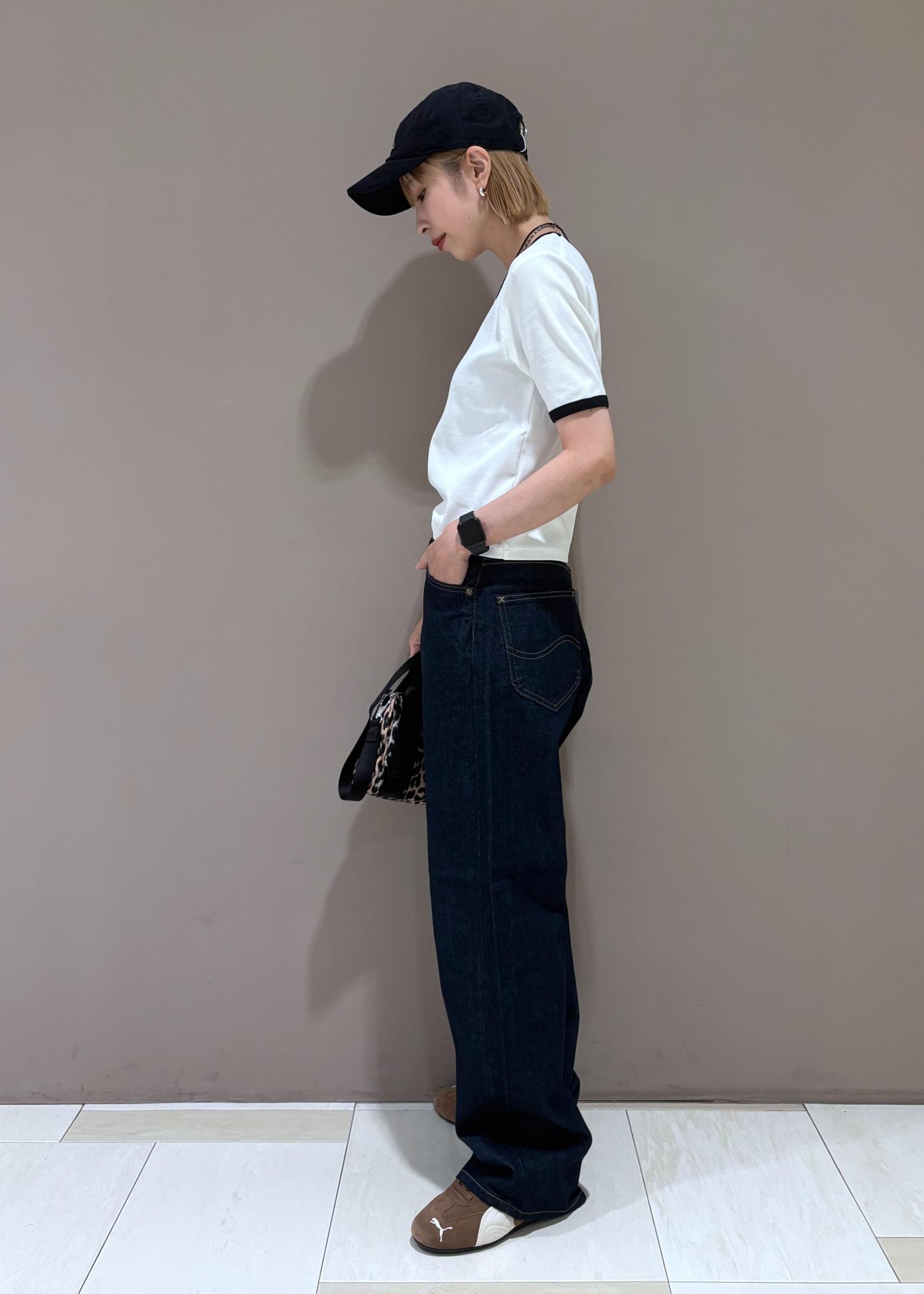 コンパクトタイプのTシャツに、Leeのデニムを合わせてカジュアルスタイルに。