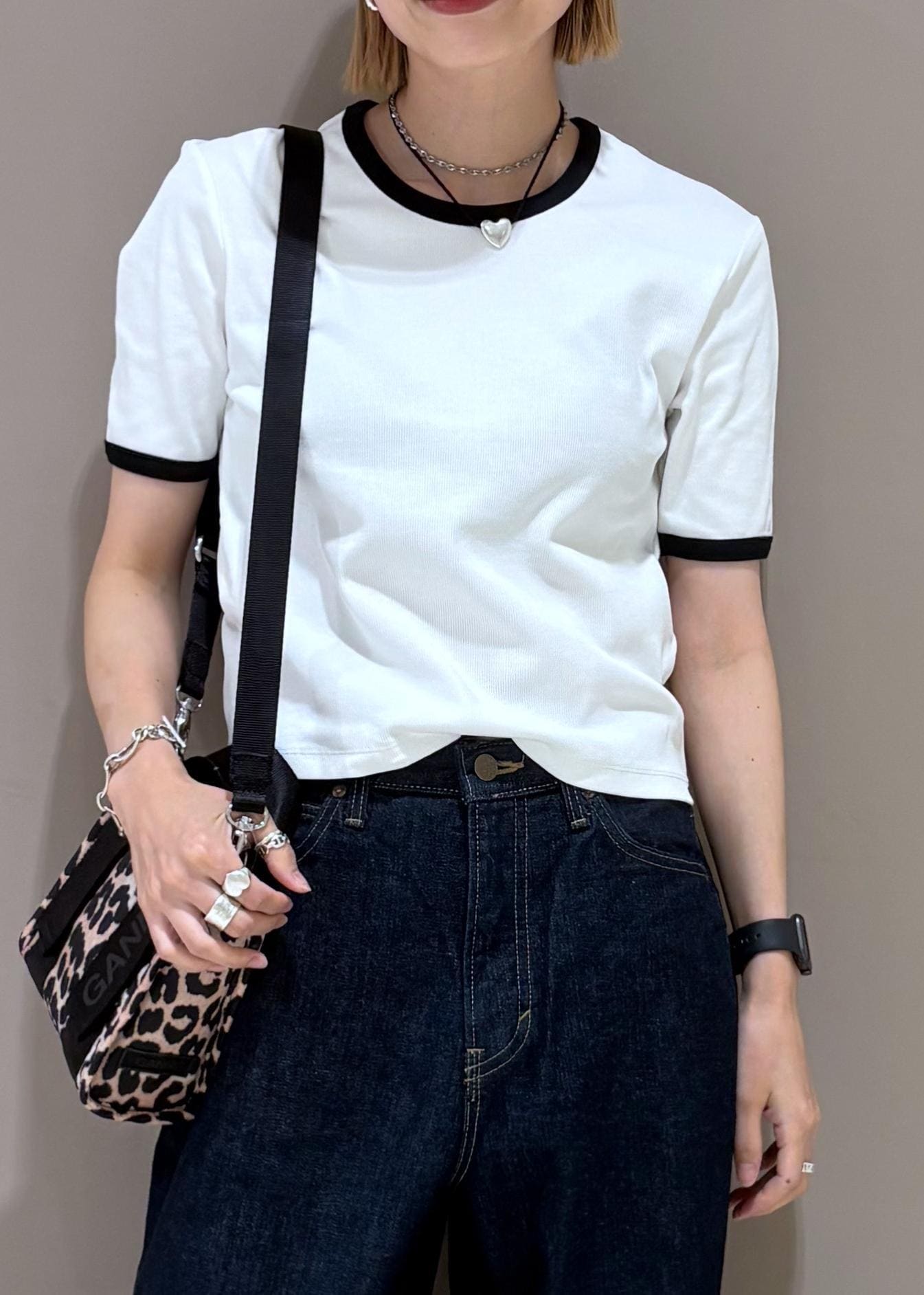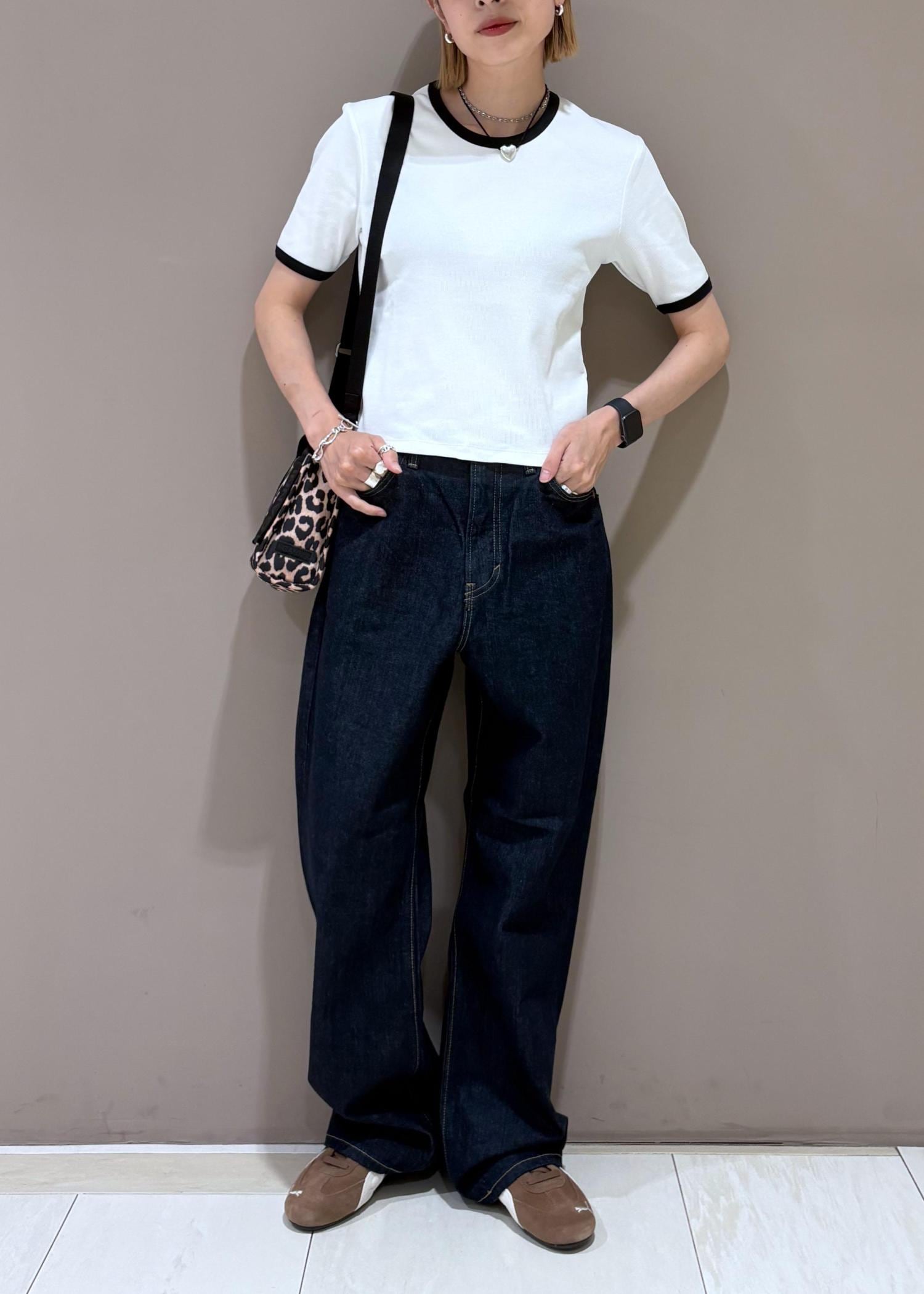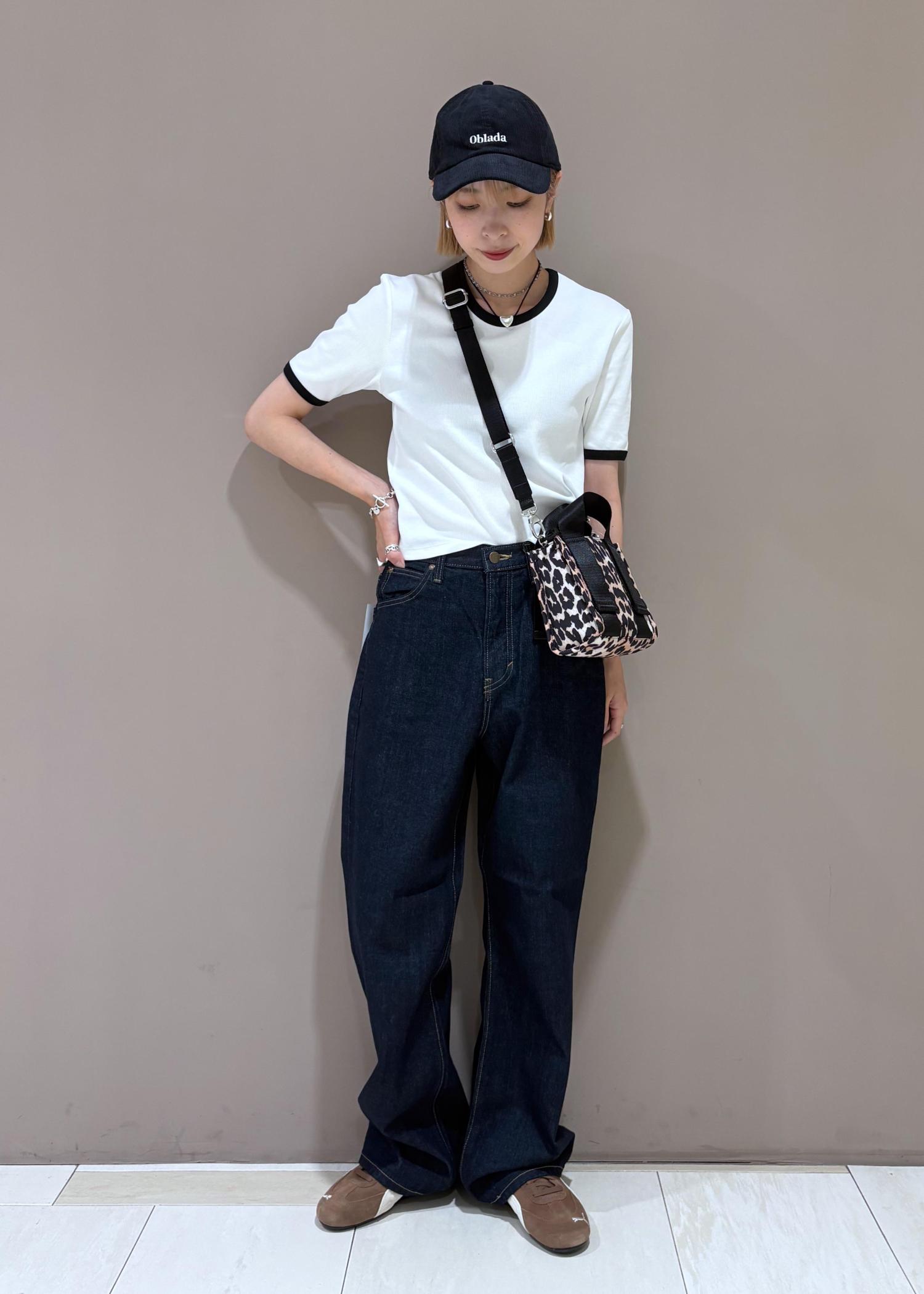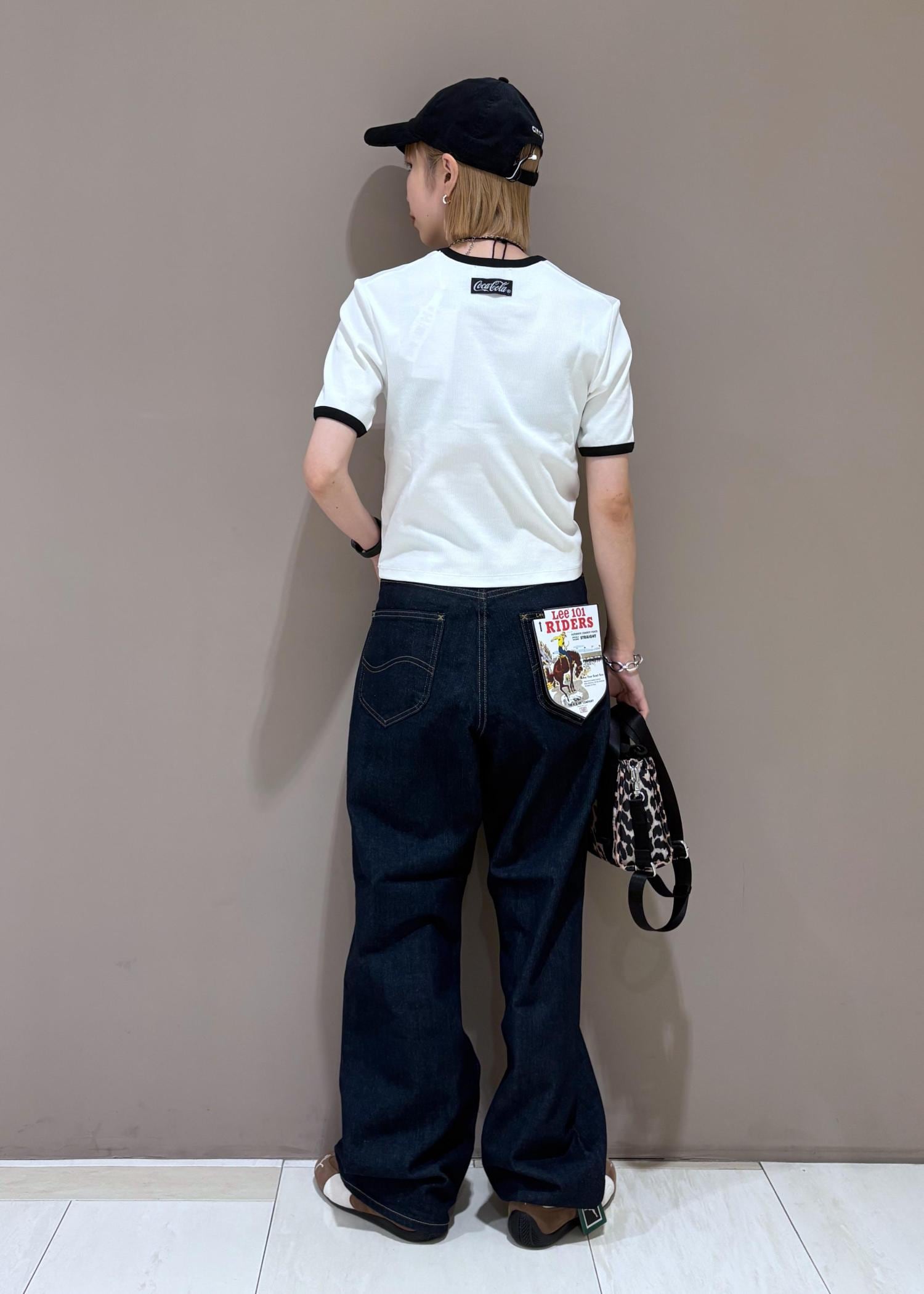 コンパクトタイプのTシャツに、Leeのデニムを合わせてカジュアルスタイルに。