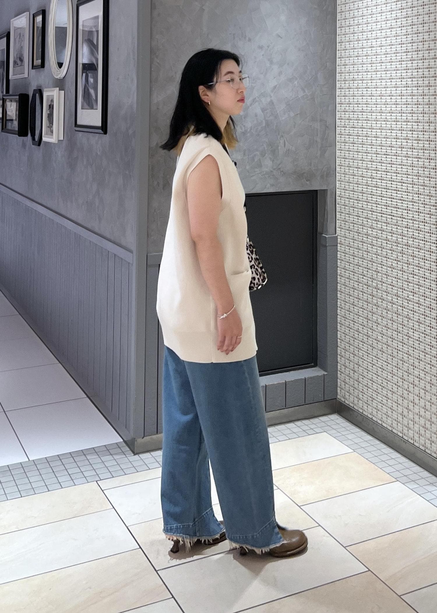 ADAM ET ROPÉ FEMME【サステナブル】ミドルニットジレキナリ / F¥17,600レビューゆったり着られるカーディガンです!お尻もすっぽり隠れて◎です♪秋口に向けて、レースやシアー感のあるカットソーと合わせるのも可愛いです!