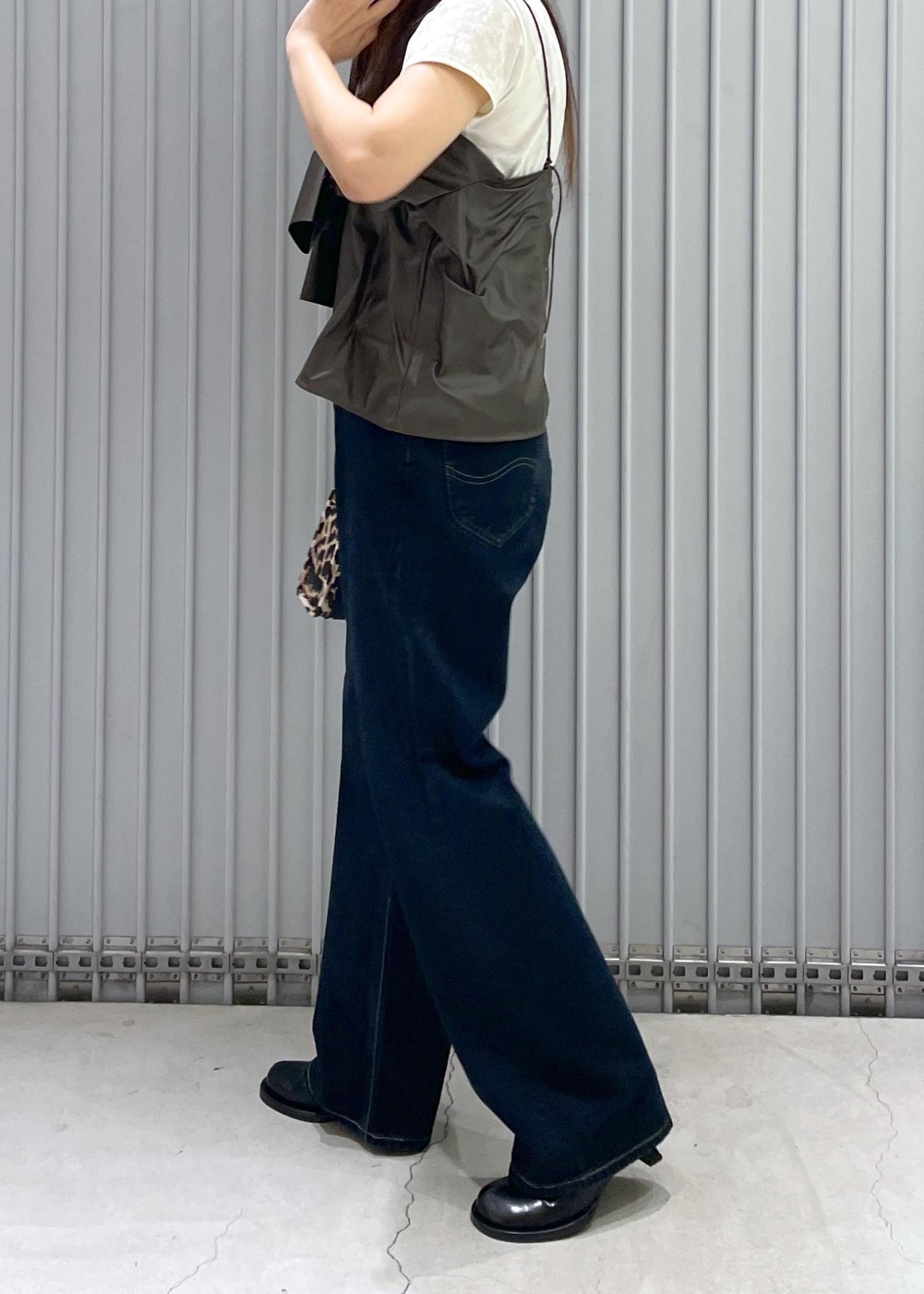 最近ワイドシルエットが多い中、程よいゆったり感でハイウエストで脚長効果抜群のデニムです◎