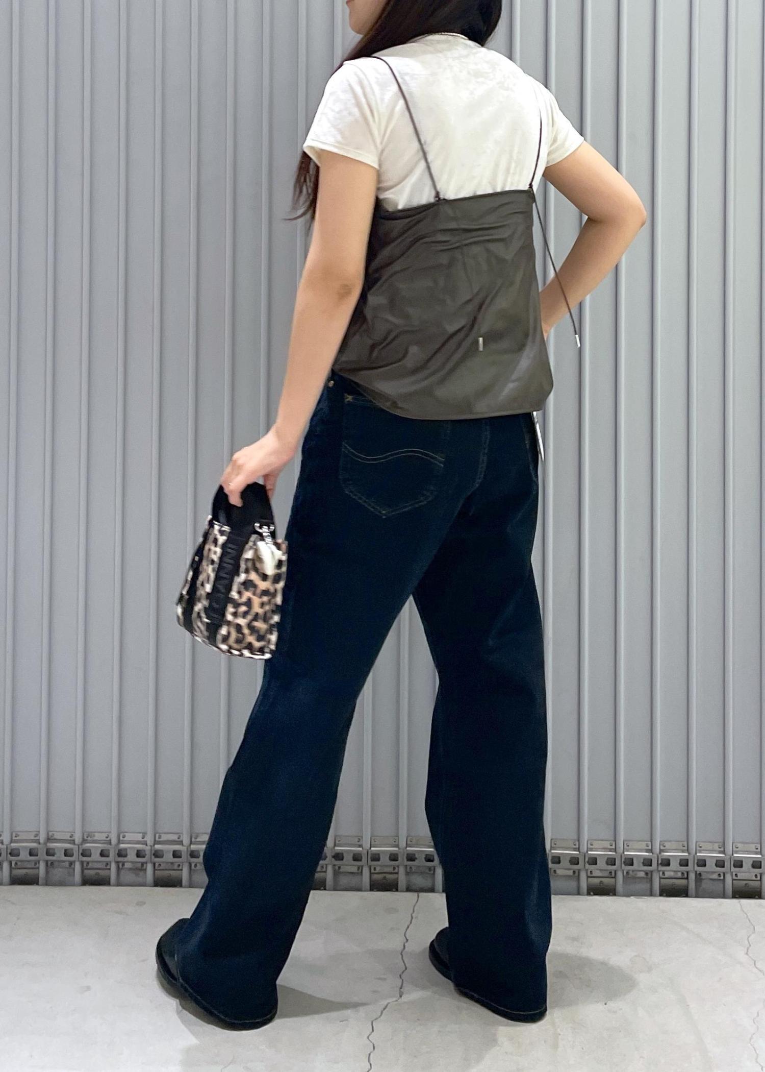 ベロアTEEにフェイクレザーキャミを合わせました!