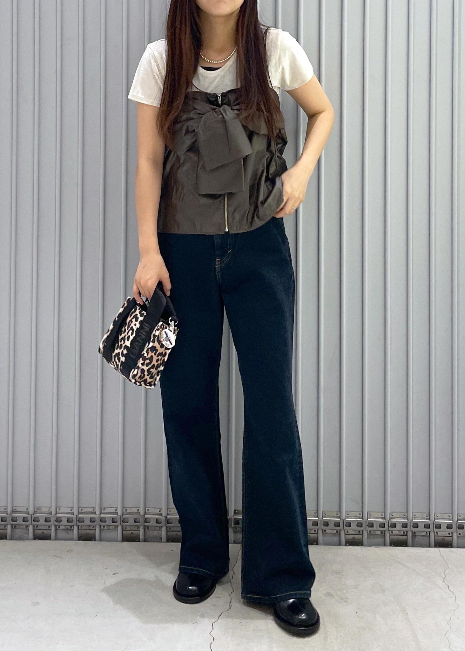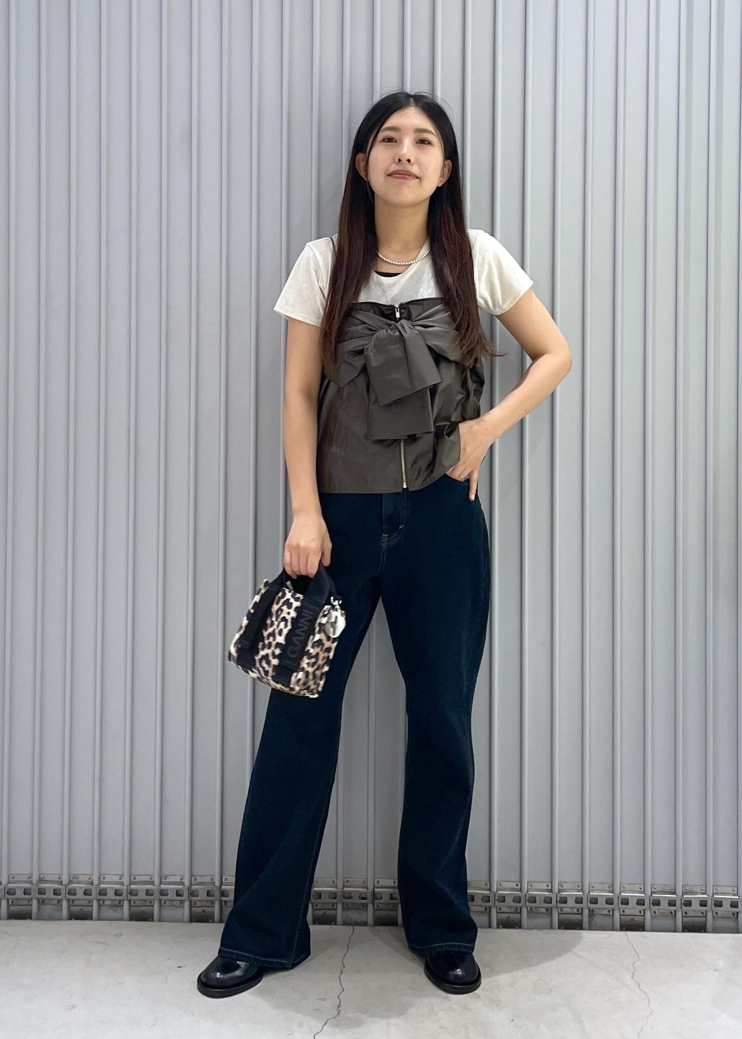 主役はデニムですが、トップスもワンポイント入れてメリハリをつけました。