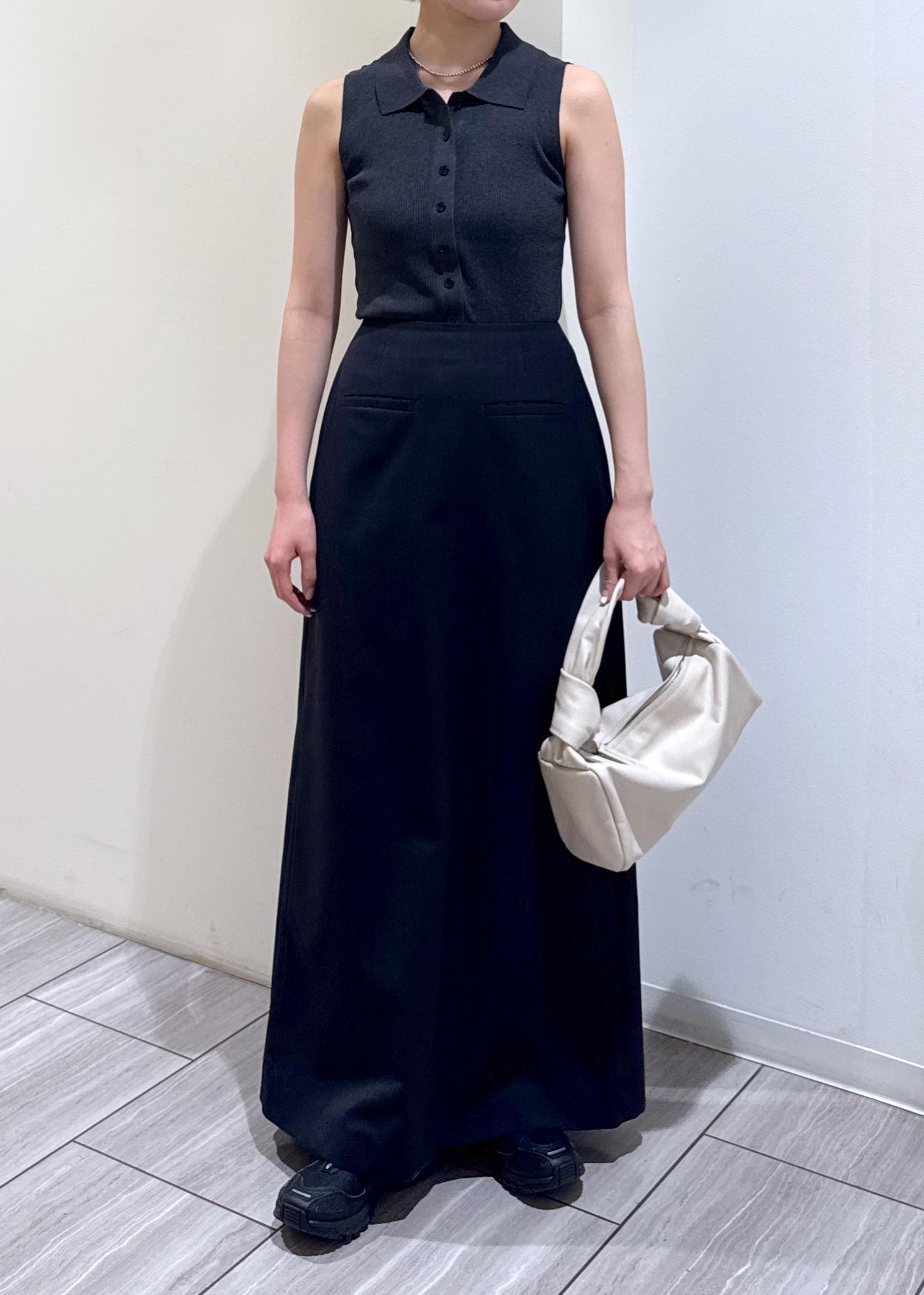 こちらのリブノースリーブニットは、ドライな肌触りがこれからの季節に重宝する事間違いなしです!