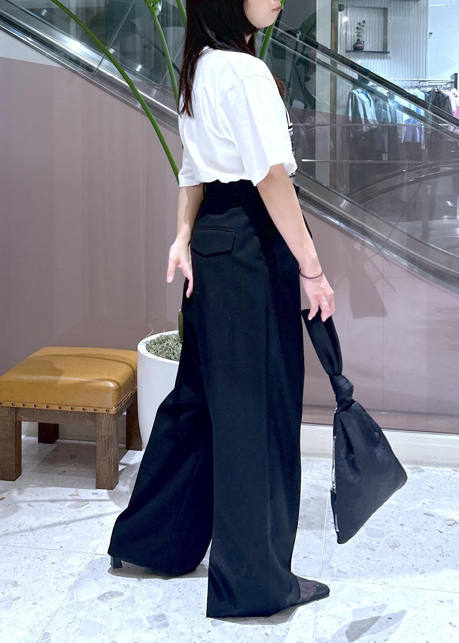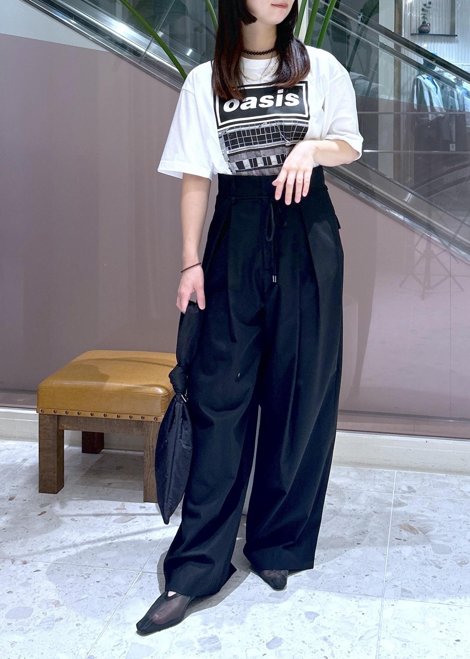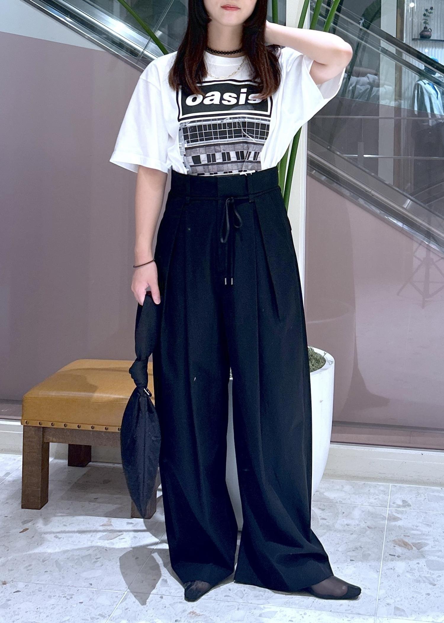 ADAM ET ROPÉ FEMMEドロストドカンパンツブラック / 36¥24,200レビュースタイリングではゆるっと履きたかったので36を着用しましたが34がジャストサイズです。ウエストに紐がついているのでぎゅっと絞ることもできます。すとんと落ちるシルエットで足が長く見えます!