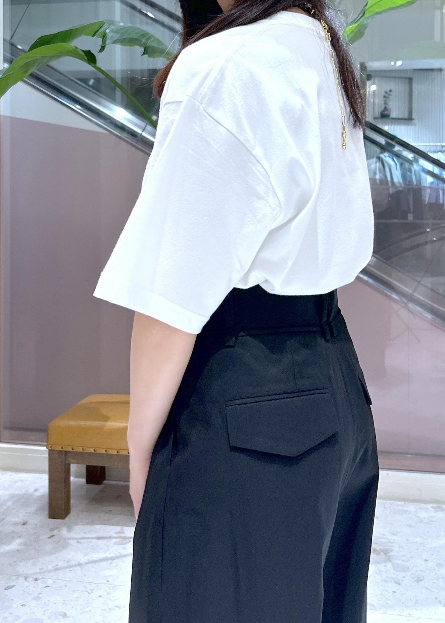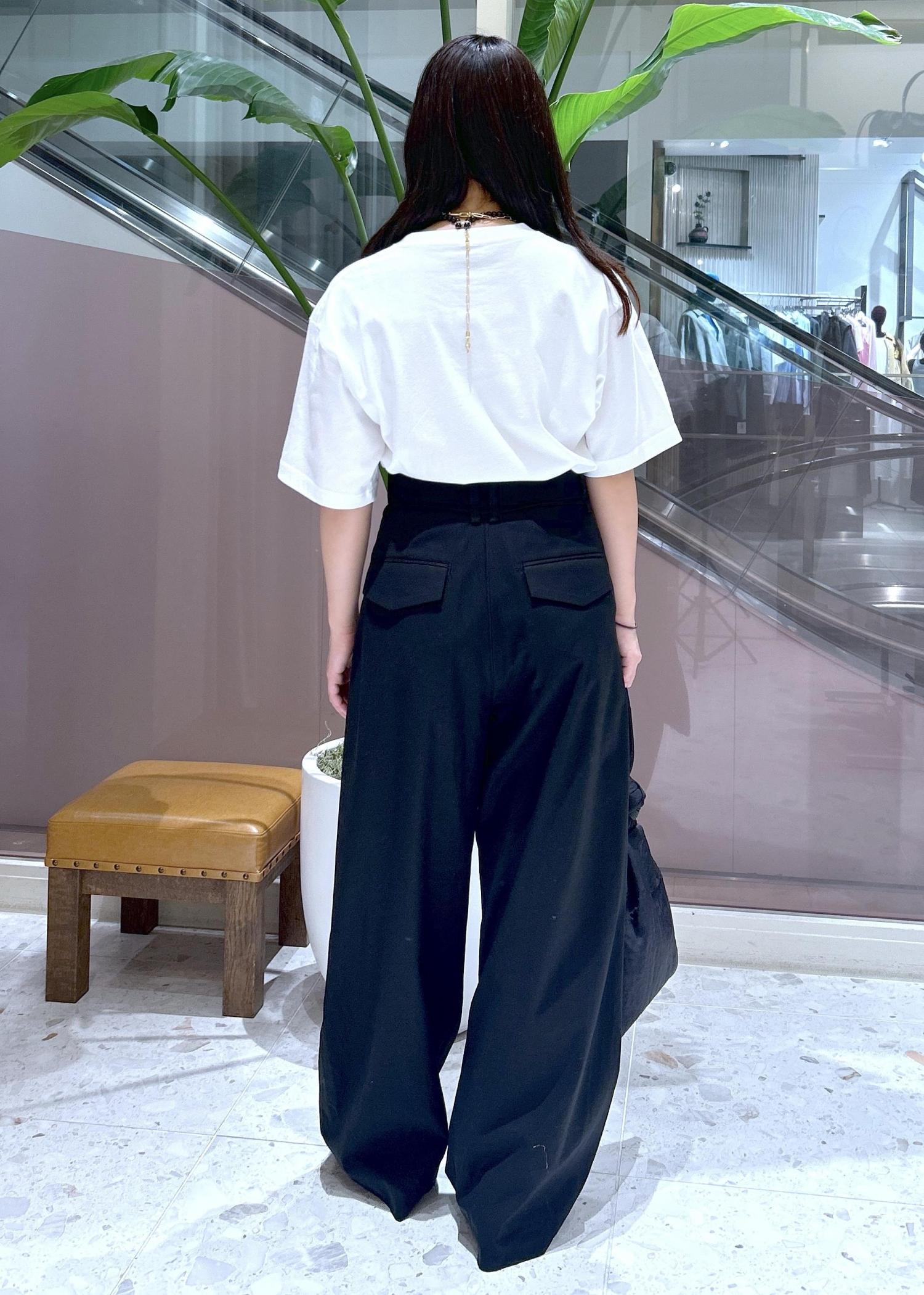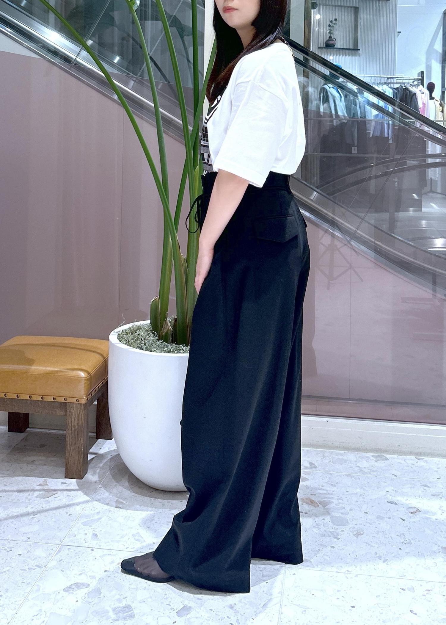 ADAM ET ROPÉ FEMMEドロストドカンパンツブラック / 36¥24,200レビュースタイリングではゆるっと履きたかったので36を着用しましたが34がジャストサイズです。ウエストに紐がついているのでぎゅっと絞ることもできます。すとんと落ちるシルエットで足が長く見えます!