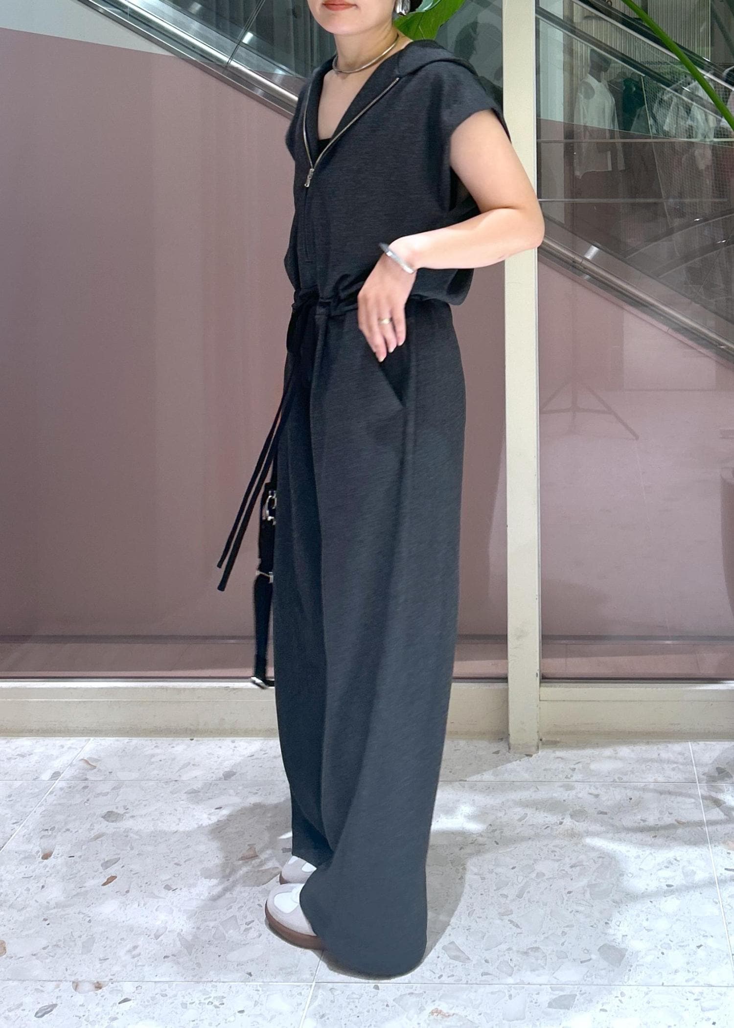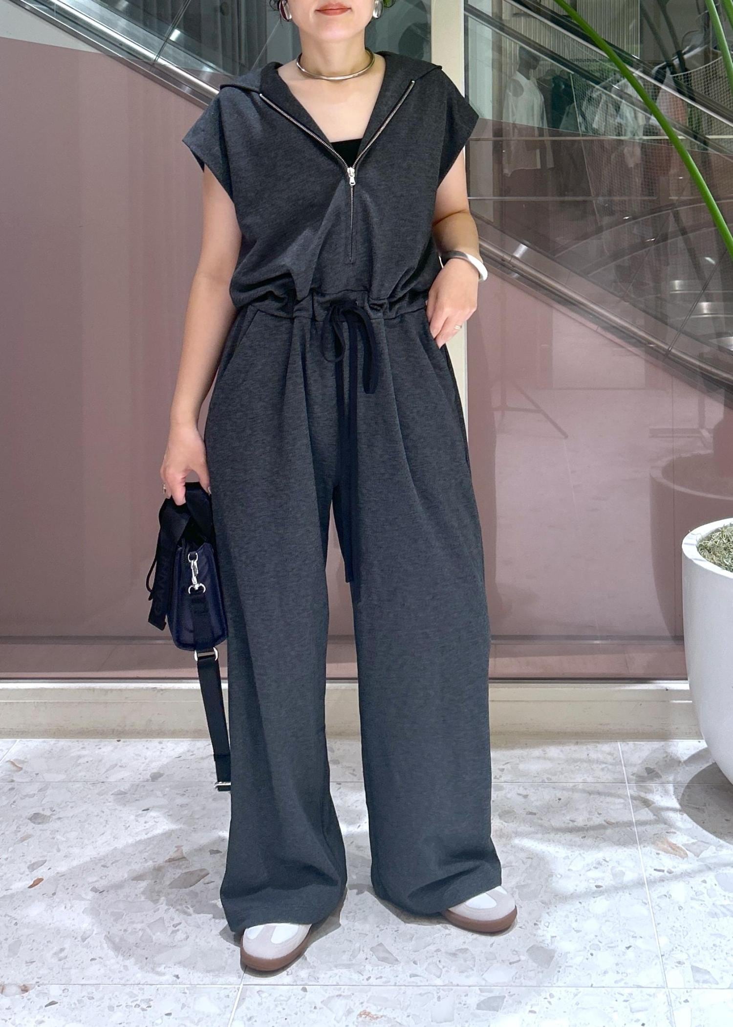 一見、着丈が長く感じましたがウエスト部分で絞れるのでスニーカーでも合わせられました!絞らずにゆるっとルーズに着ても可愛いです。分厚過ぎない裏毛素材で長いシーズン楽しめます。