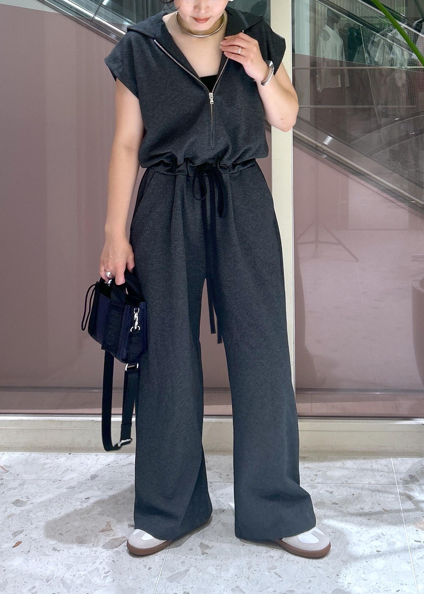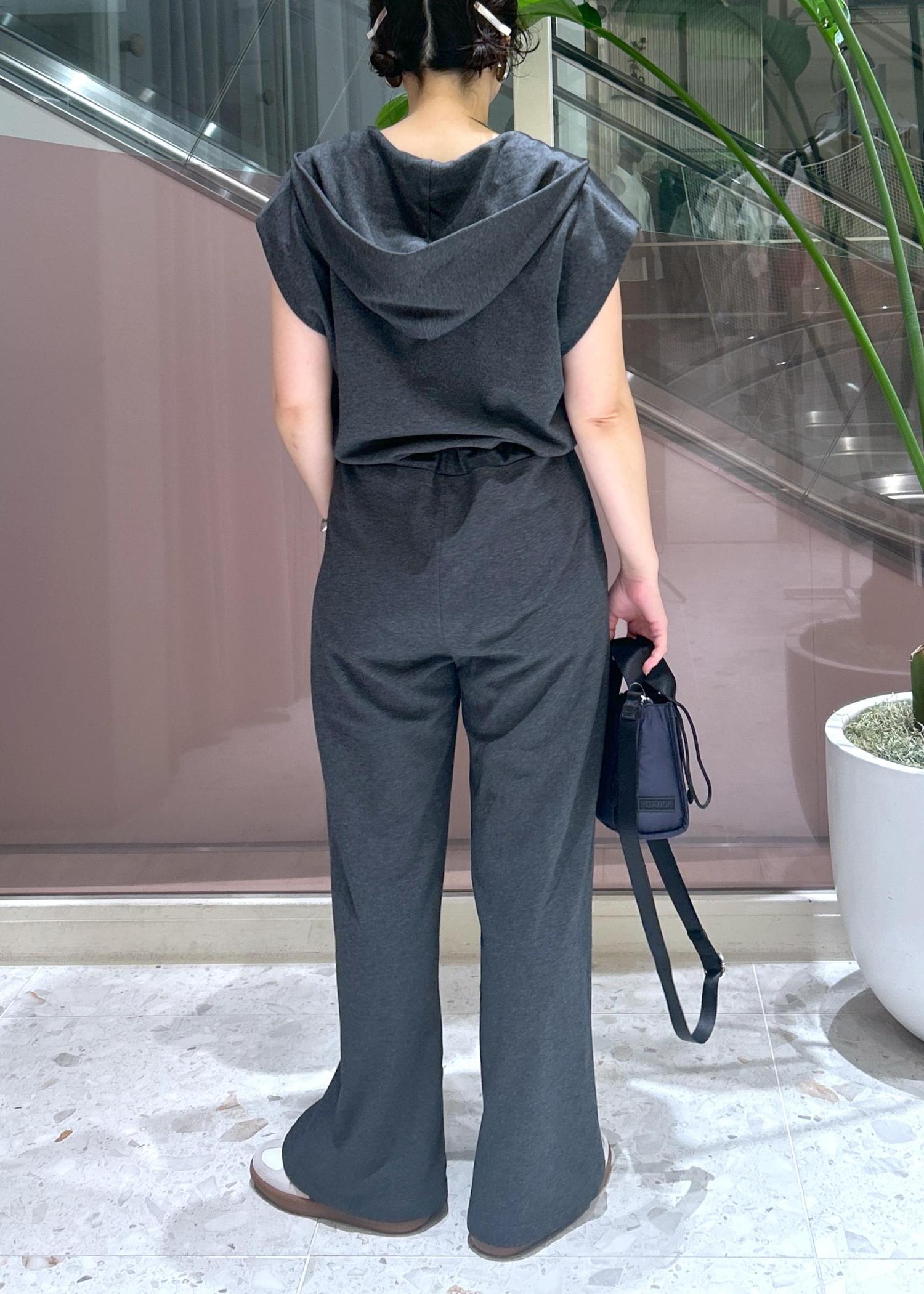 柔らかい裏毛が着心地もソフトで気持ち良く、太過ぎないパンツシルエットも、ウエストを絞ったシルエットもスッキリ見えて、