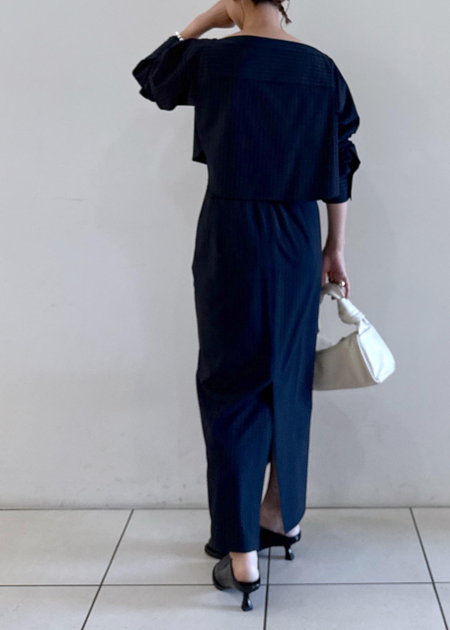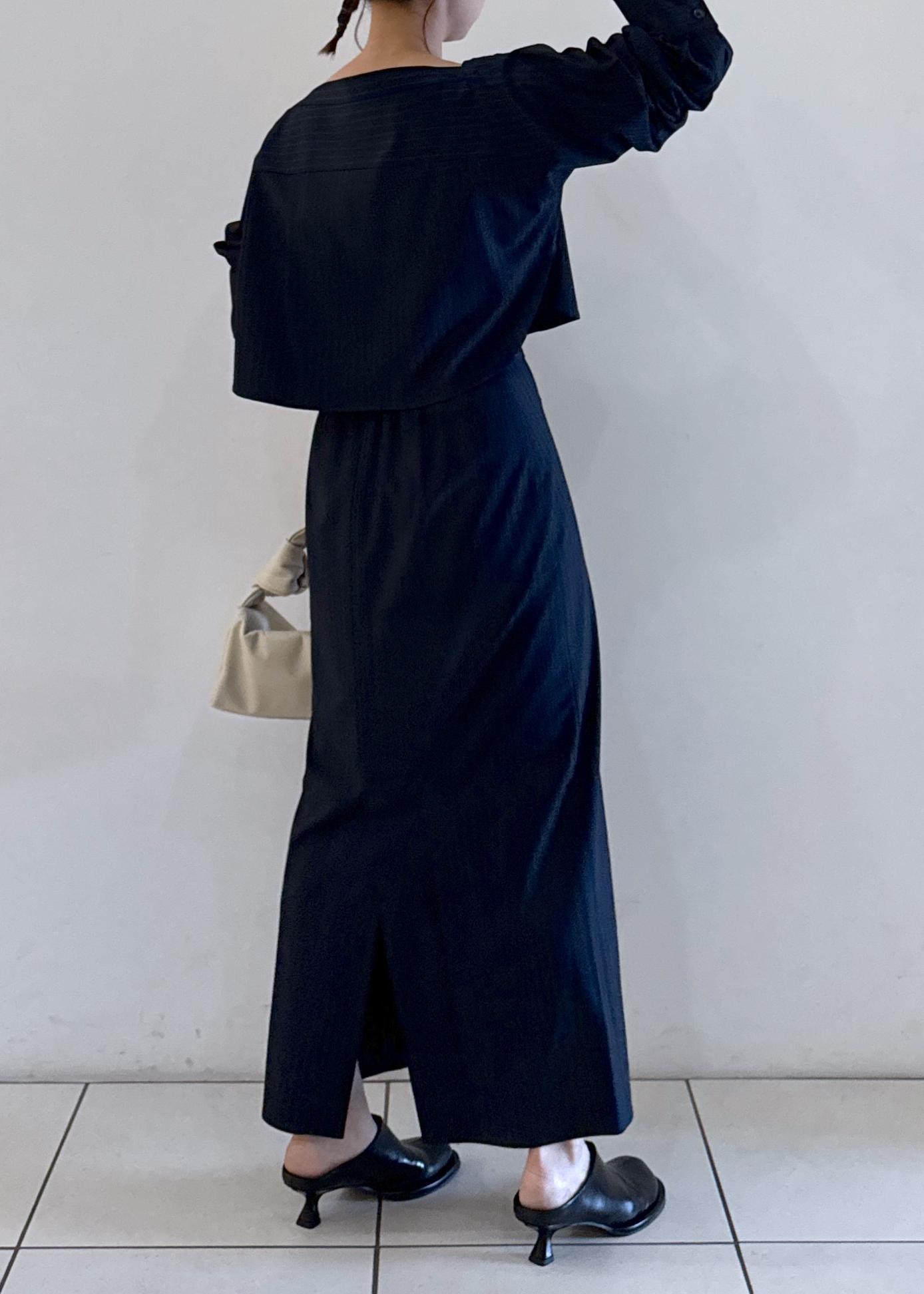 ブラウスはボートネックで綺麗な肩回りに魅せてくれます。
