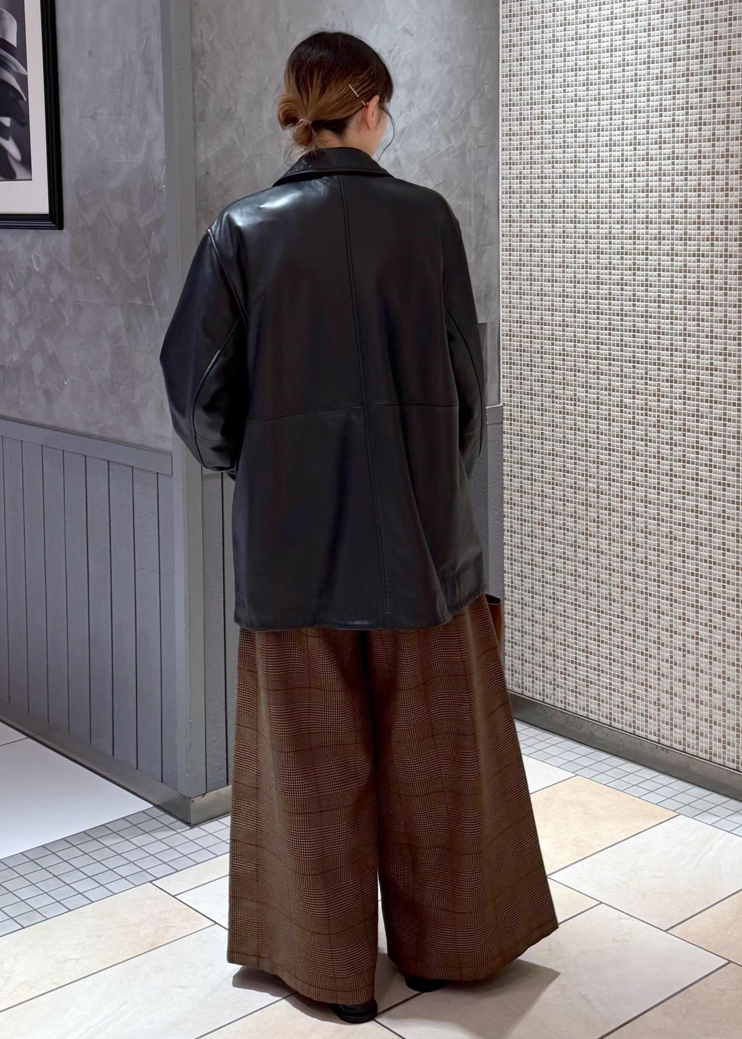 軽さがあり前下がりで女性らしさもあるレザージャケットです!