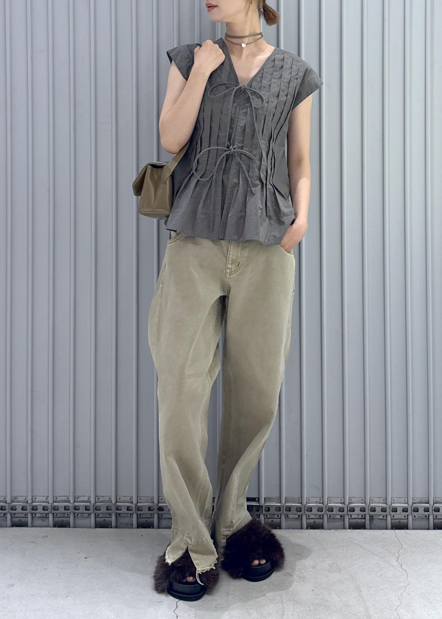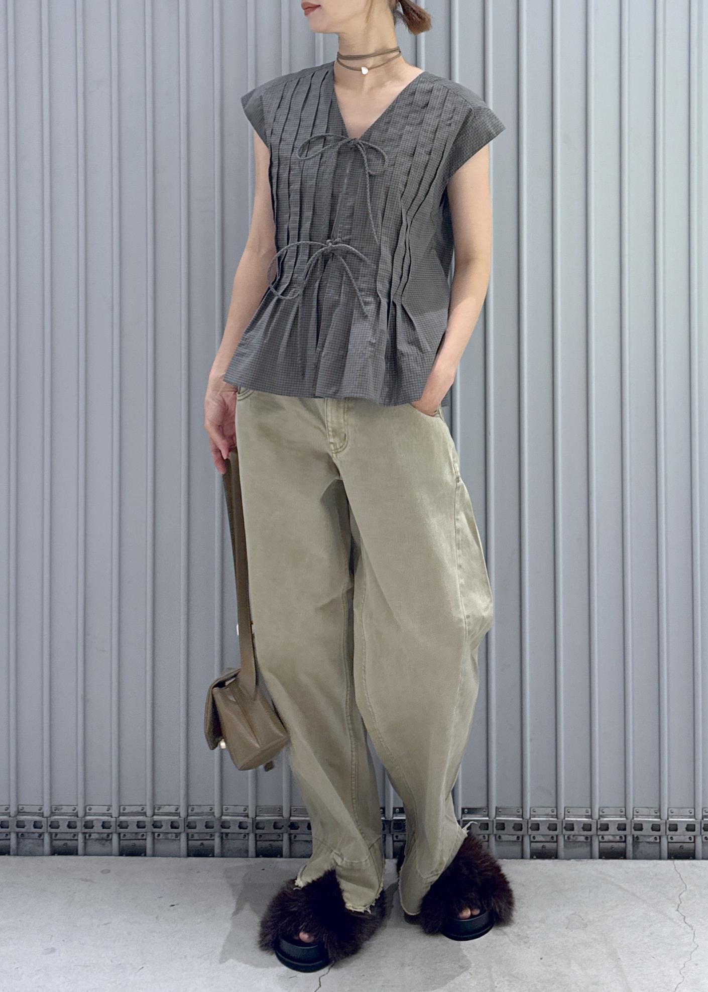 ADAM ET ROPÉ FEMME【サステナブル】タックフレアジレブラウスベージュ系 / F¥15,950レビュー前後2wayで着用可能◎