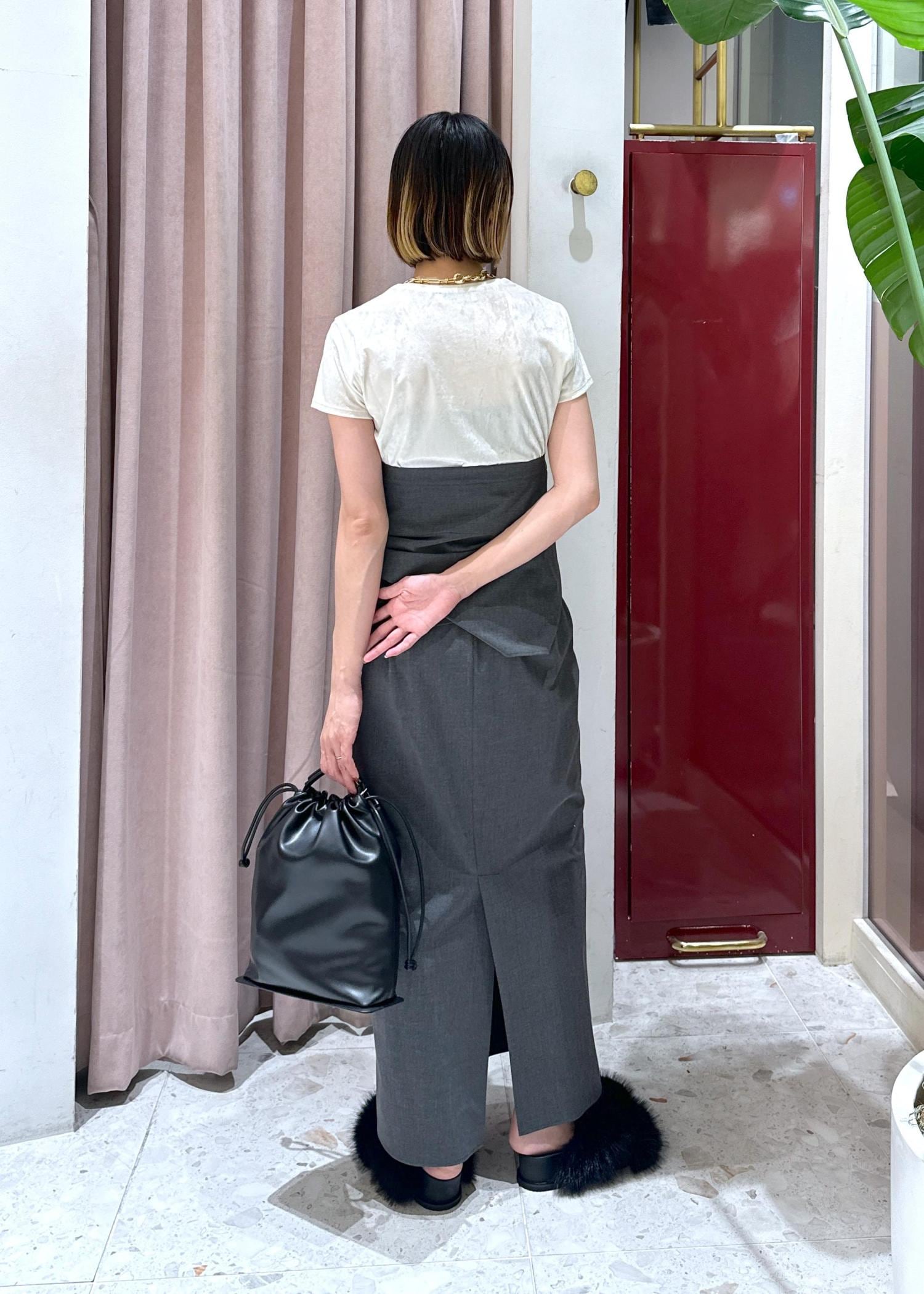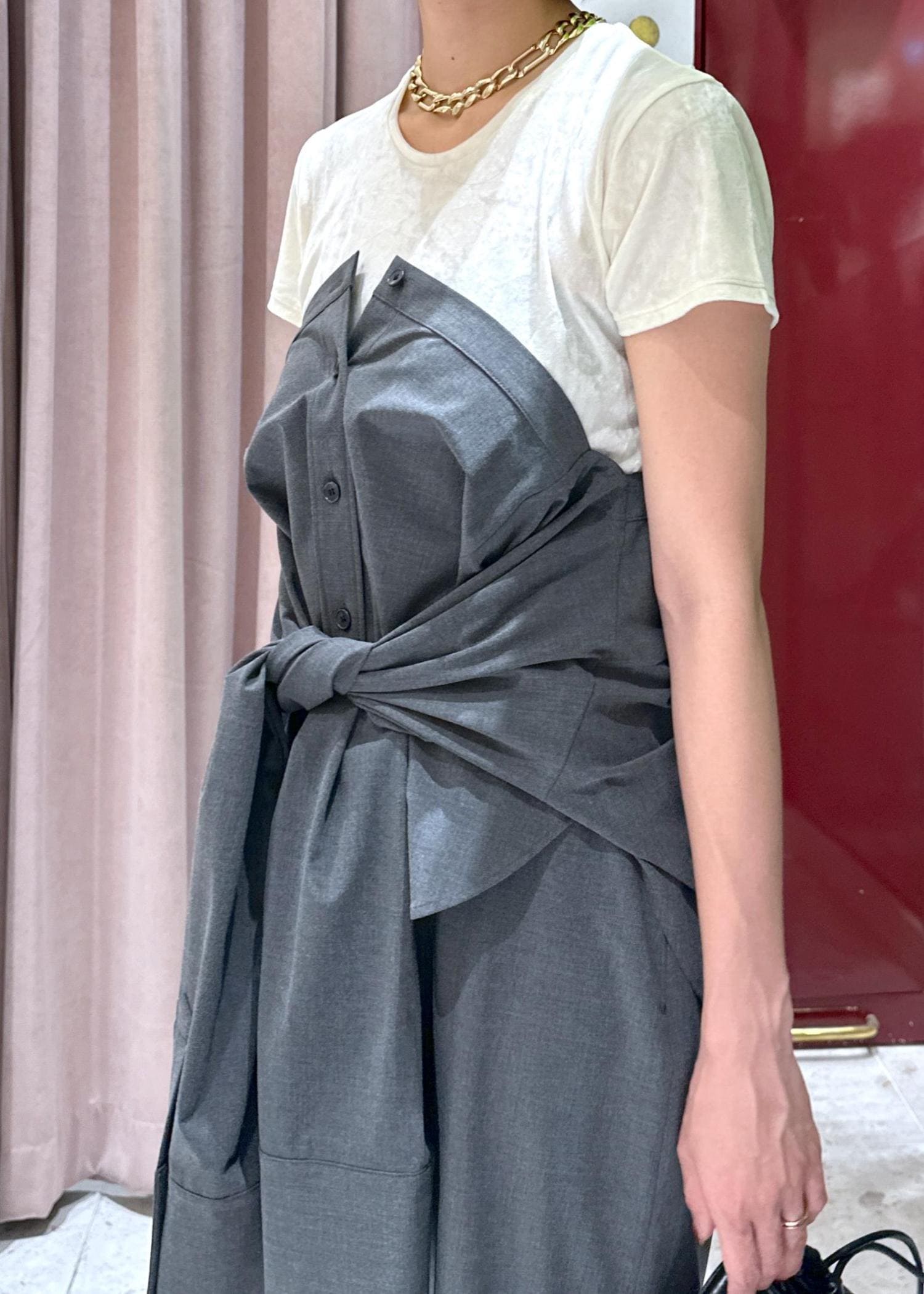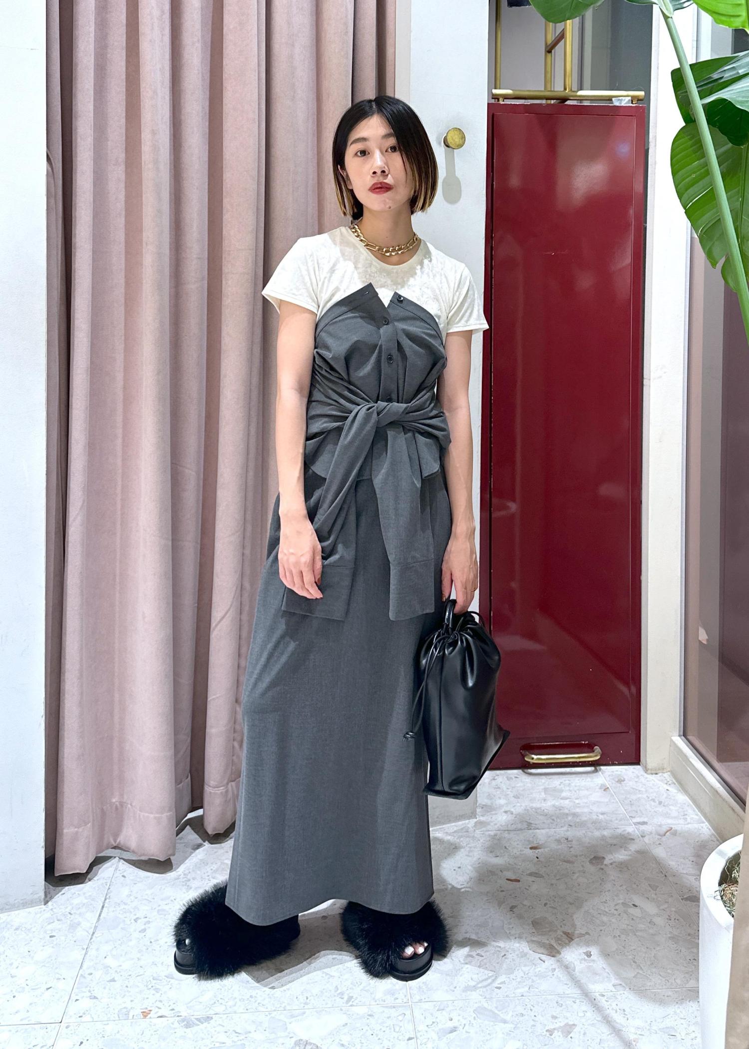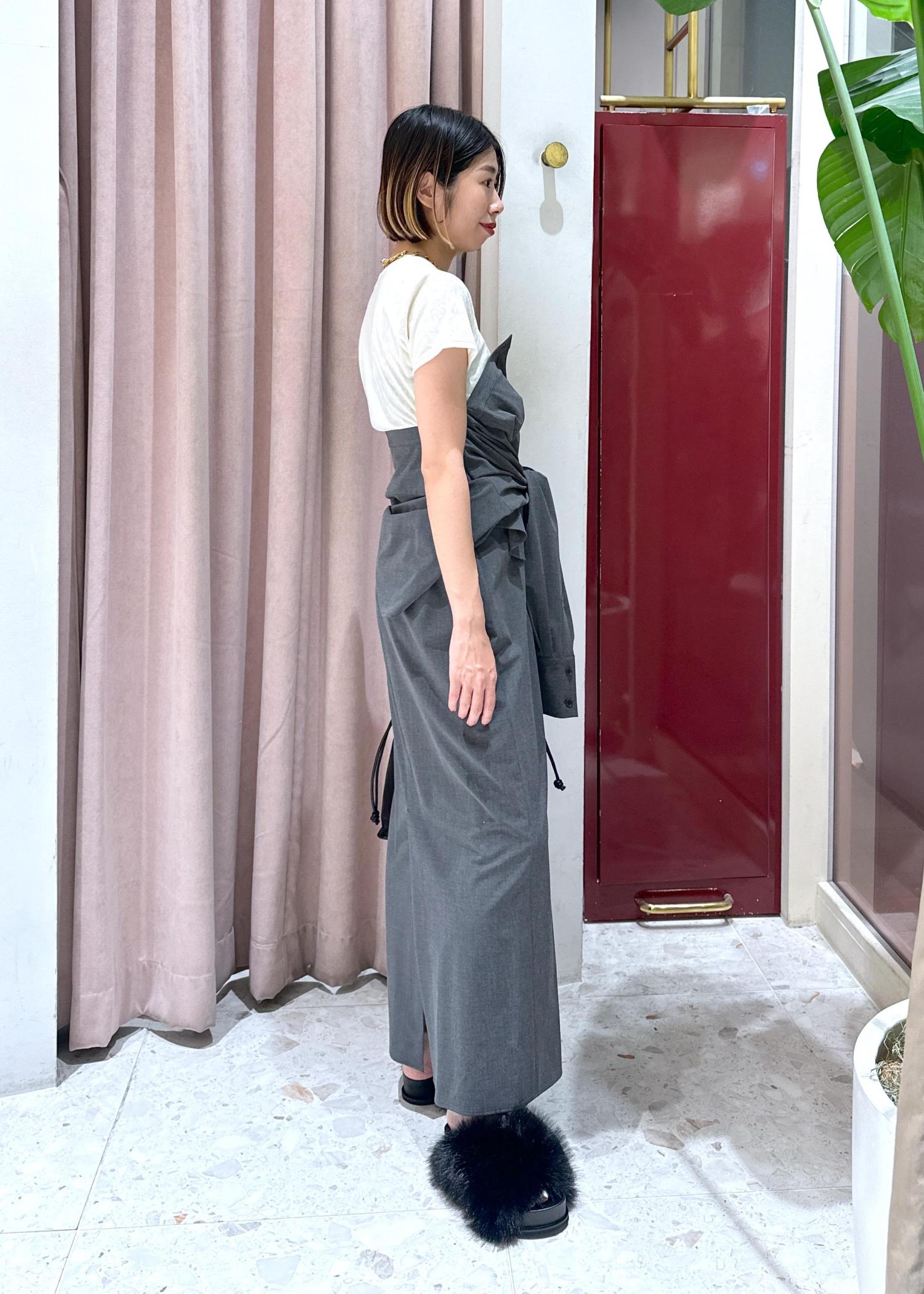 シャツとスカートがセットになっていて、いろんな着方が楽しめるアイテム。素材もサラッとしていて快適◎丈が欲しいので38サイズで腰位置で履いています!
