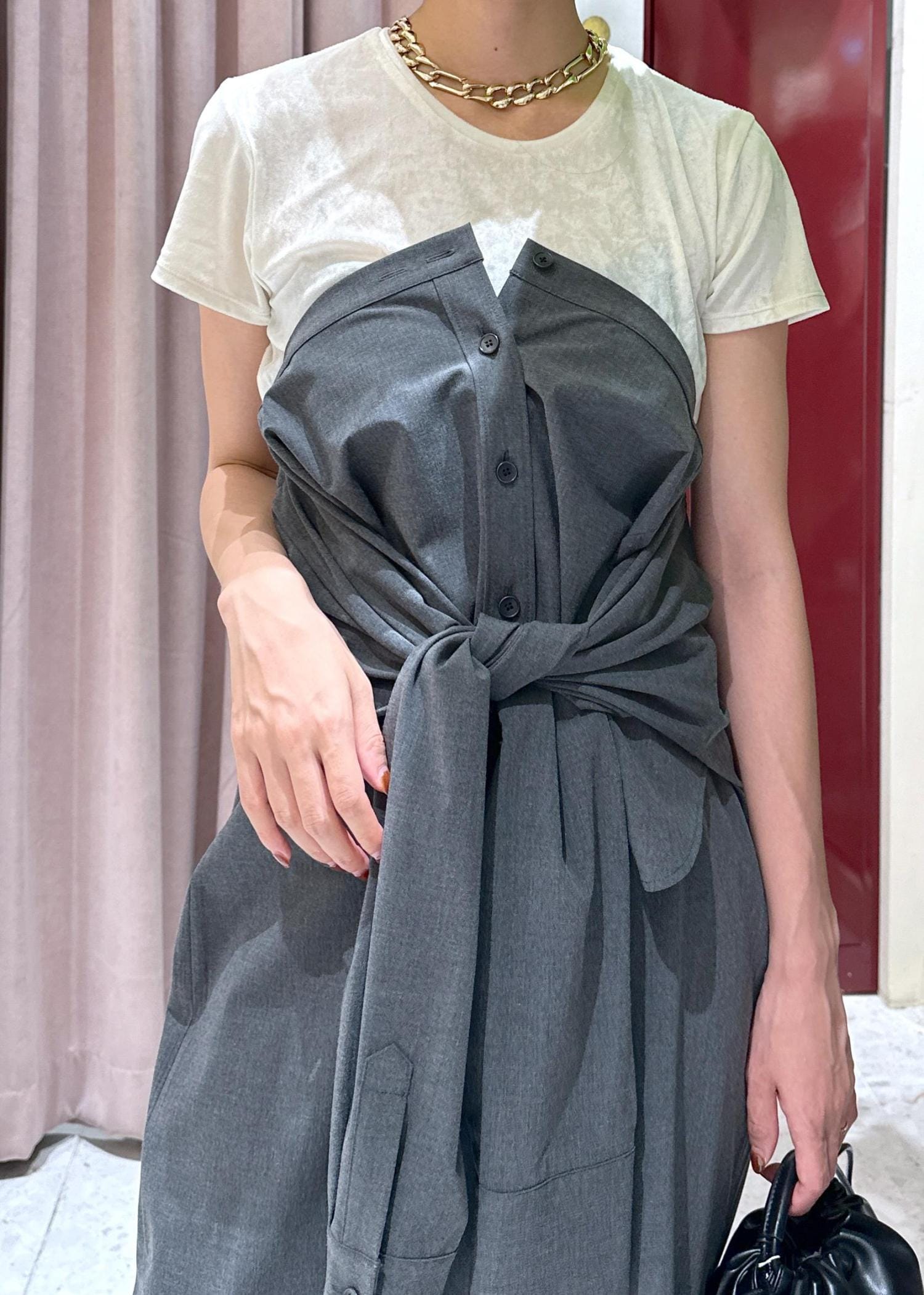 シャツとスカートがセットになっていて、いろんな着方が楽しめるアイテム。今回はシャツをビスチェのように着てワンピース風?な感じで着てみました!この着方可愛くてオススメです!!