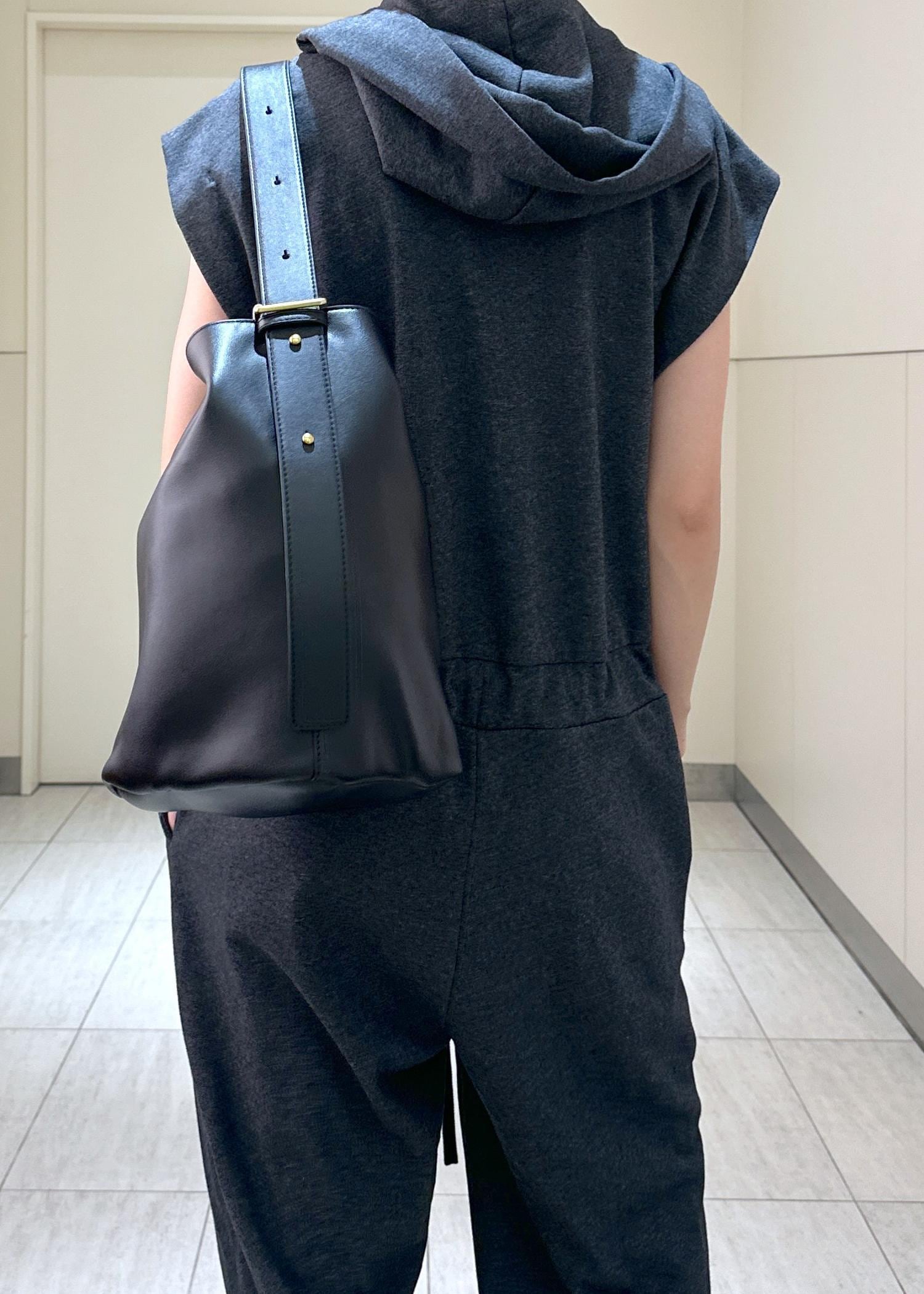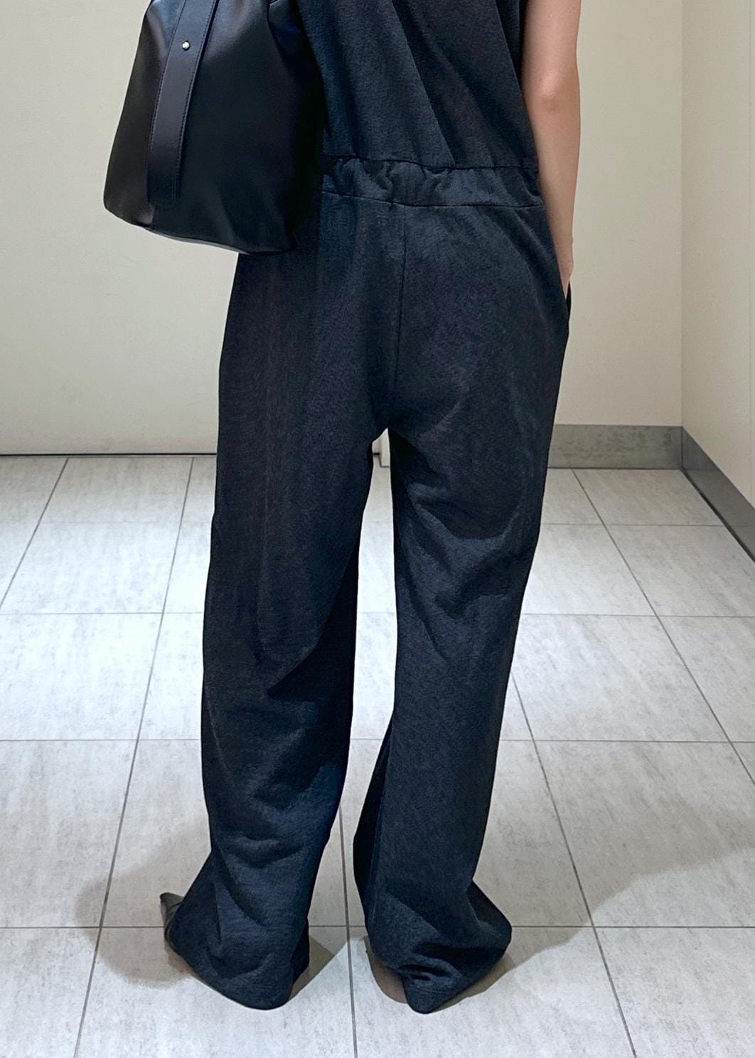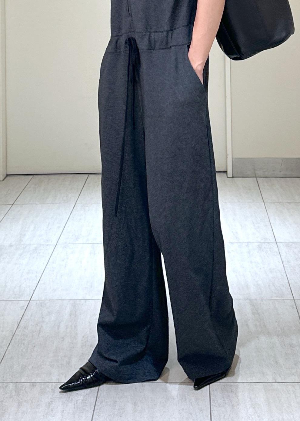 ズルッと着れるルーズなシルエットのロンパース。柔らかくてオチ感があり、カジュアルなのにどこか大人。