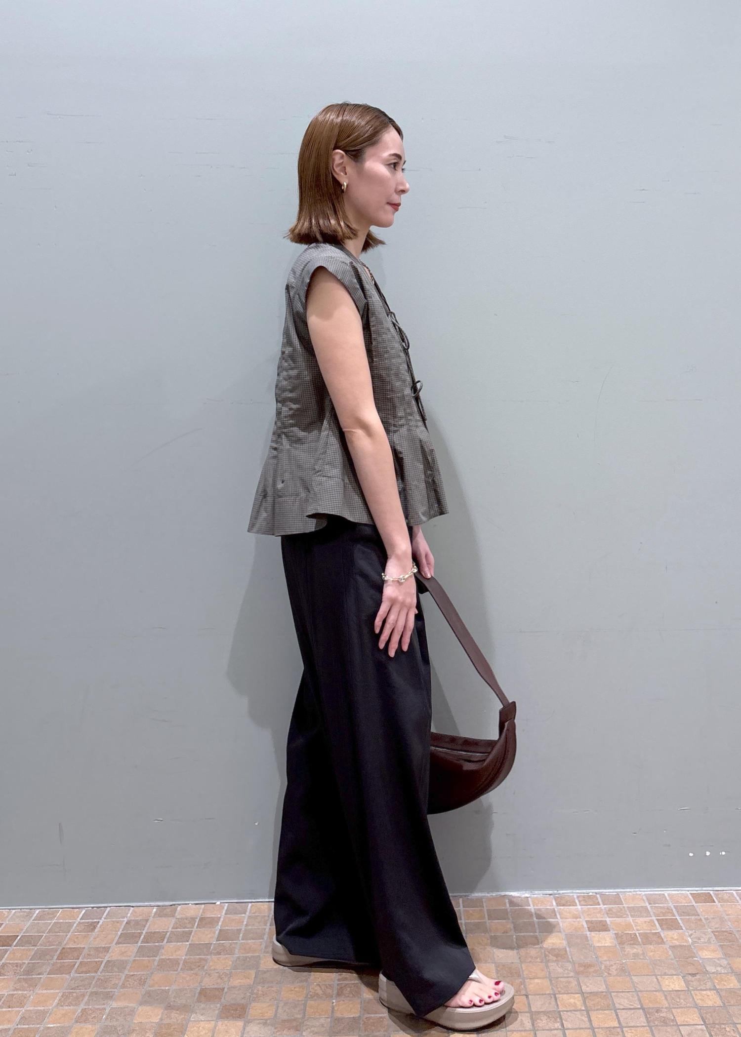 前後2WAYでブラウスとしてもジレとしても、自由自在なスタイリング力が魅力。