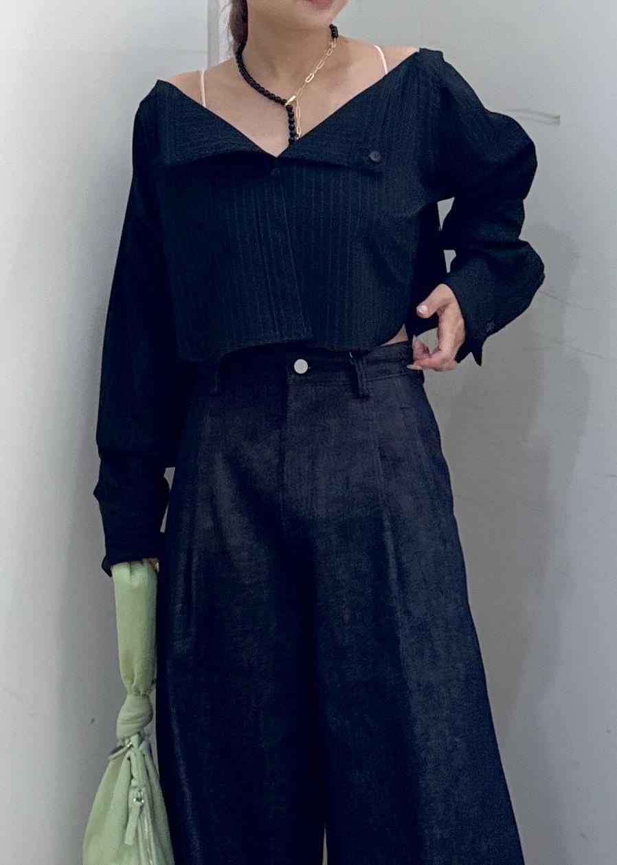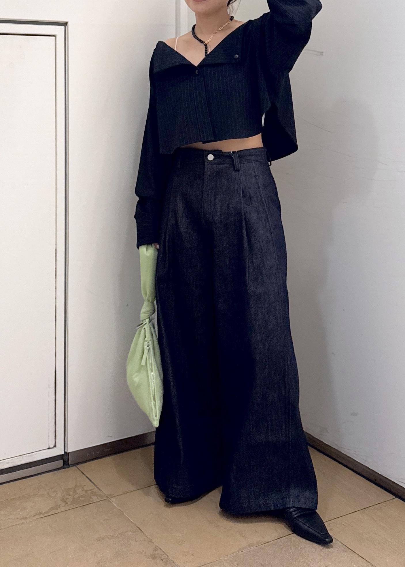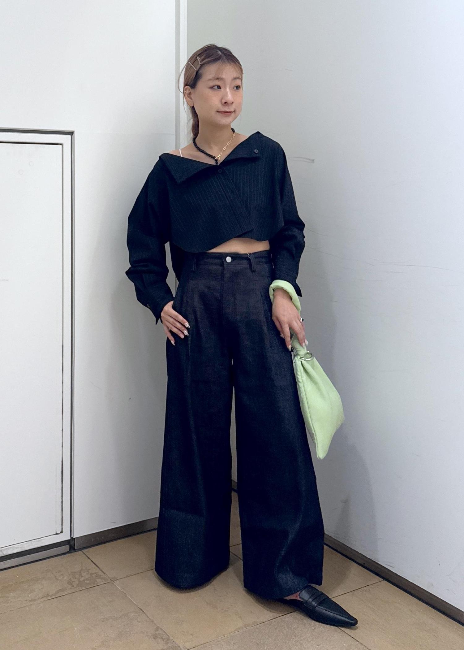デニムは裾にかけてしっかりとワイドになっていくシルエットなのでショート丈とのバランスが良く合います^_^