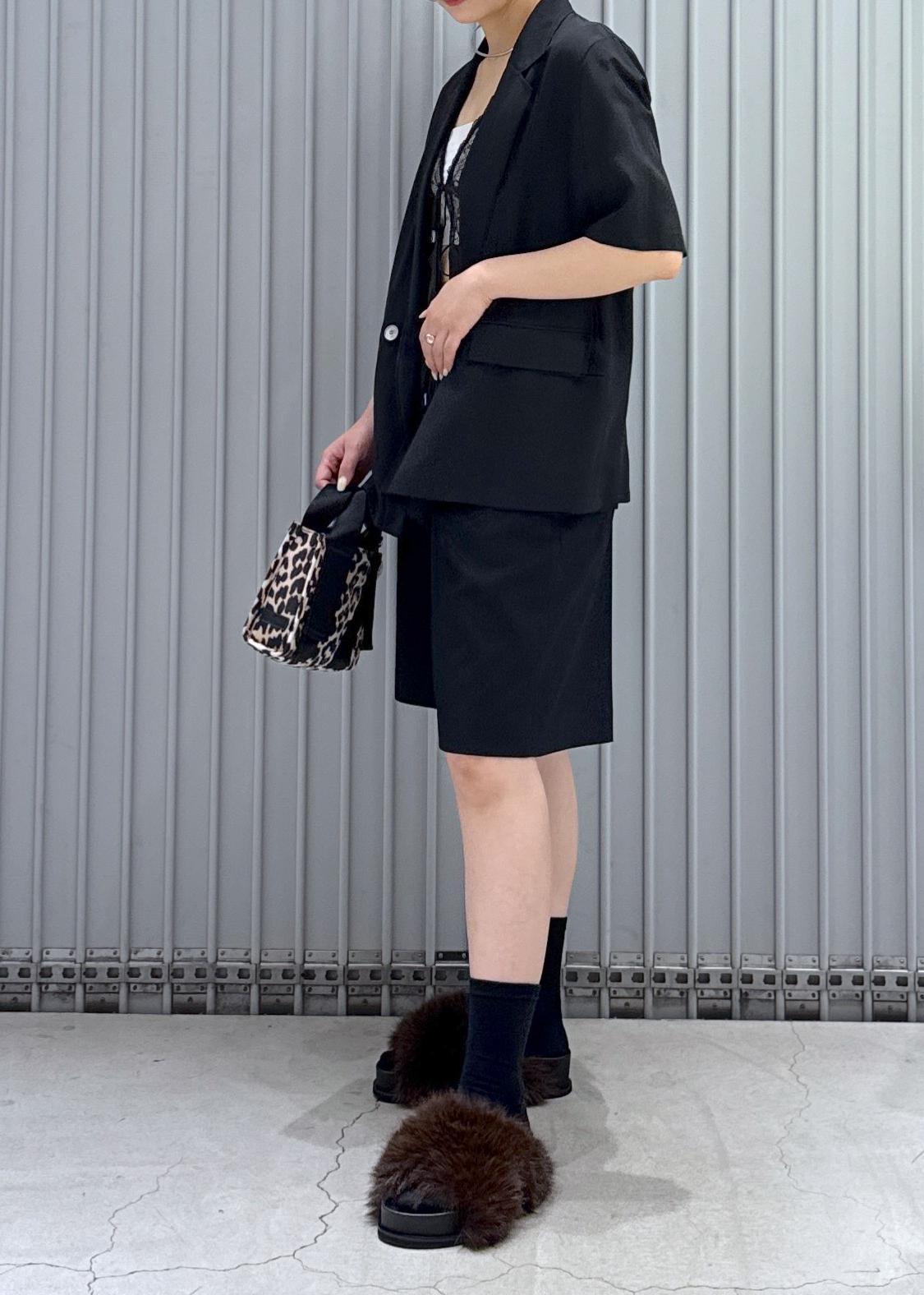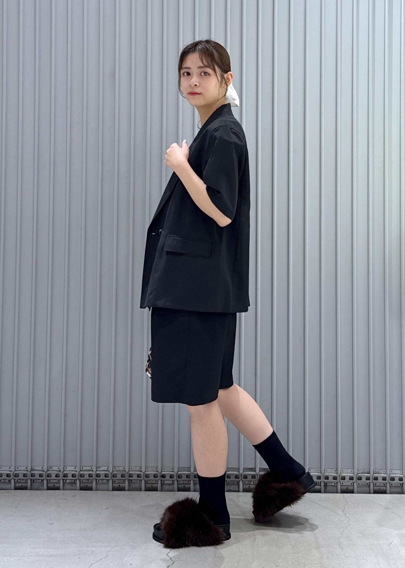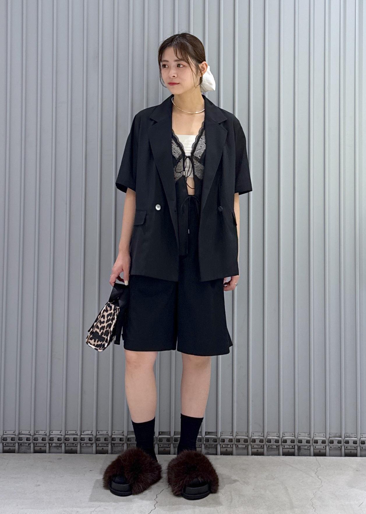 アウトレットADAM ET ROPÉ FEMME【サステナブル】ソリッド&ストライプハーフパンツブラック / 38¥13,090レビュー膝にかかるくらいの丈感です。