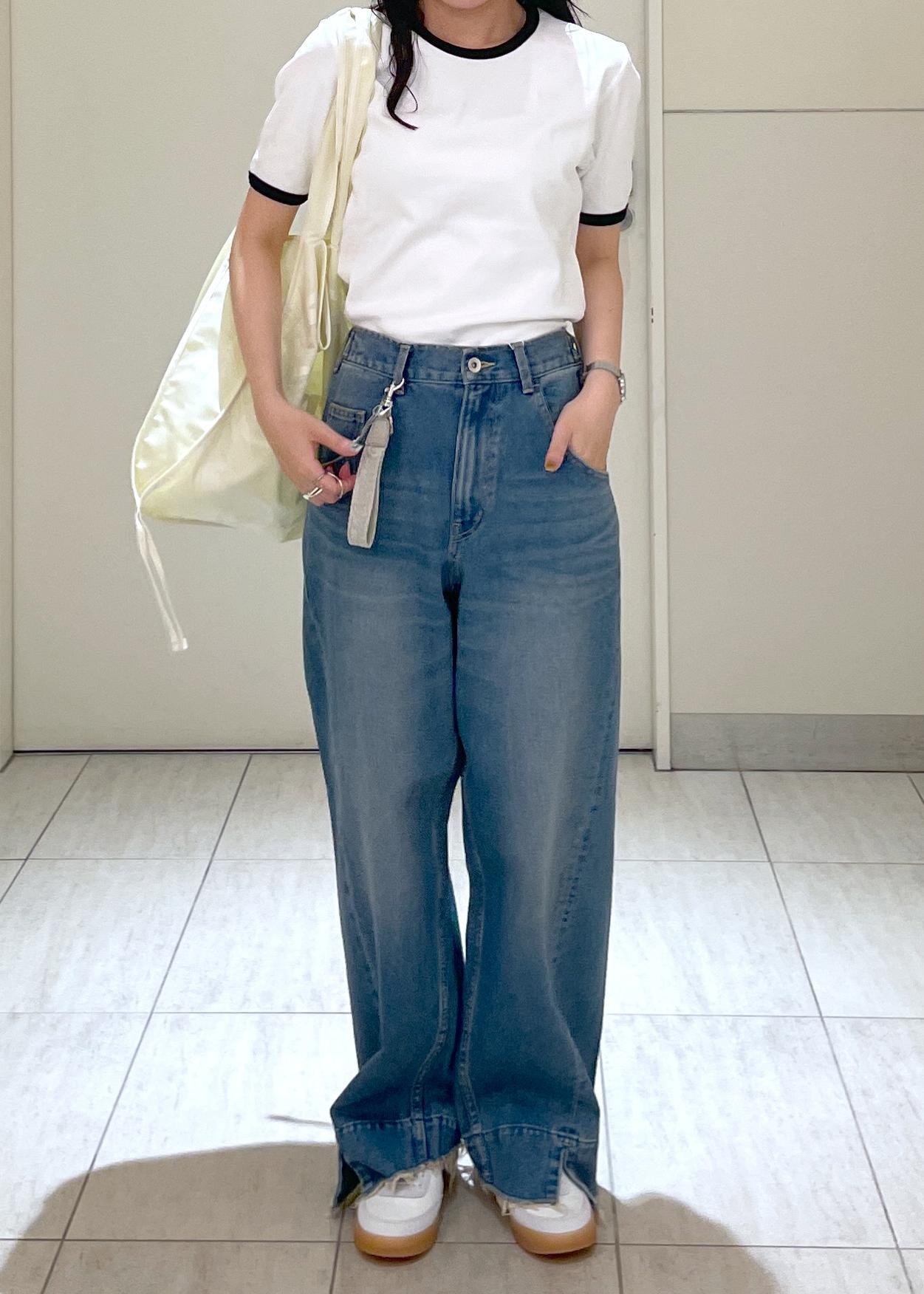コンパクトなサイズ感ですがサラッとした生地なので肌離れも良く心地よく着ていただけます。絶妙な丈感でインしてもアウトでも綺麗に着ていただけます!