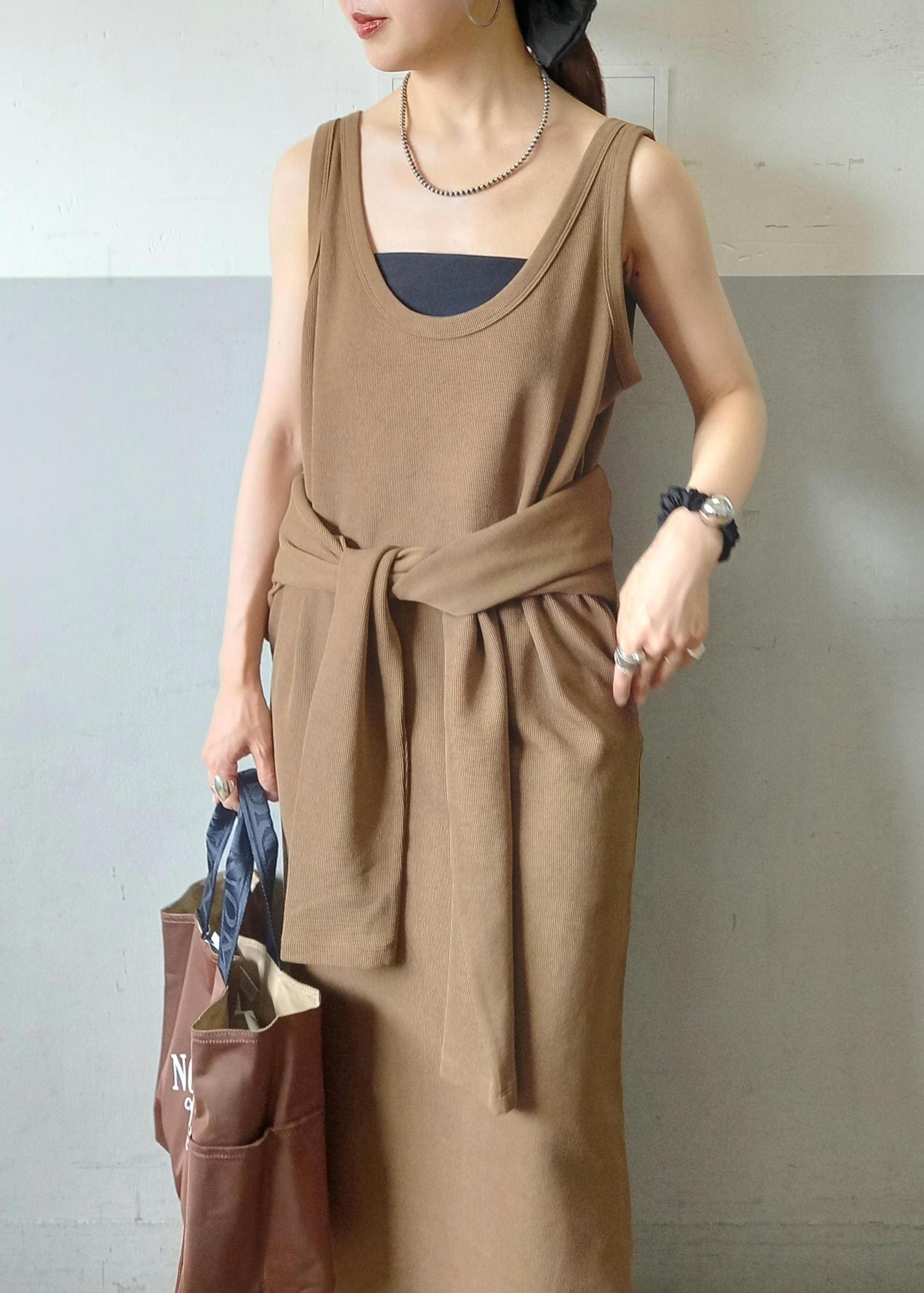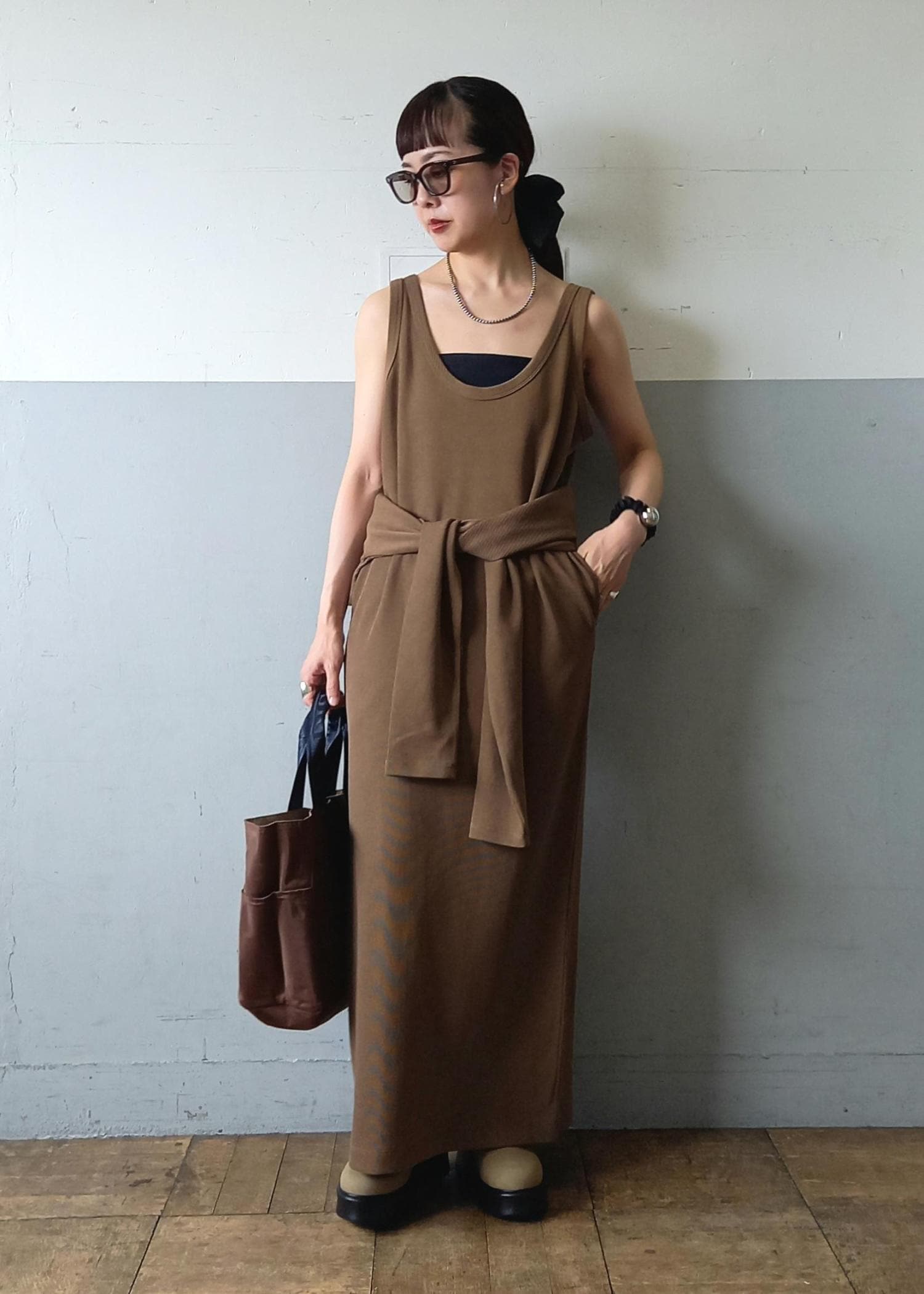 ADAM ET ROPÉ FEMME【サステナブル】Wフェイスジャージーセットワンピースブラウン / 38¥11,880レビュー158㎝で38サイズを着用しています。フラットシューズでも擦らない長さでした◎