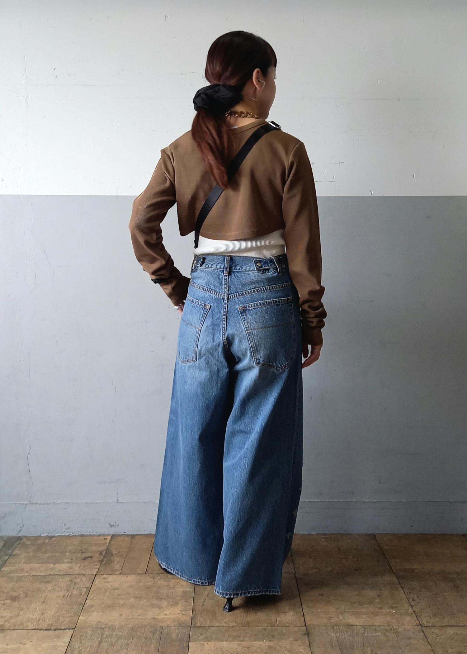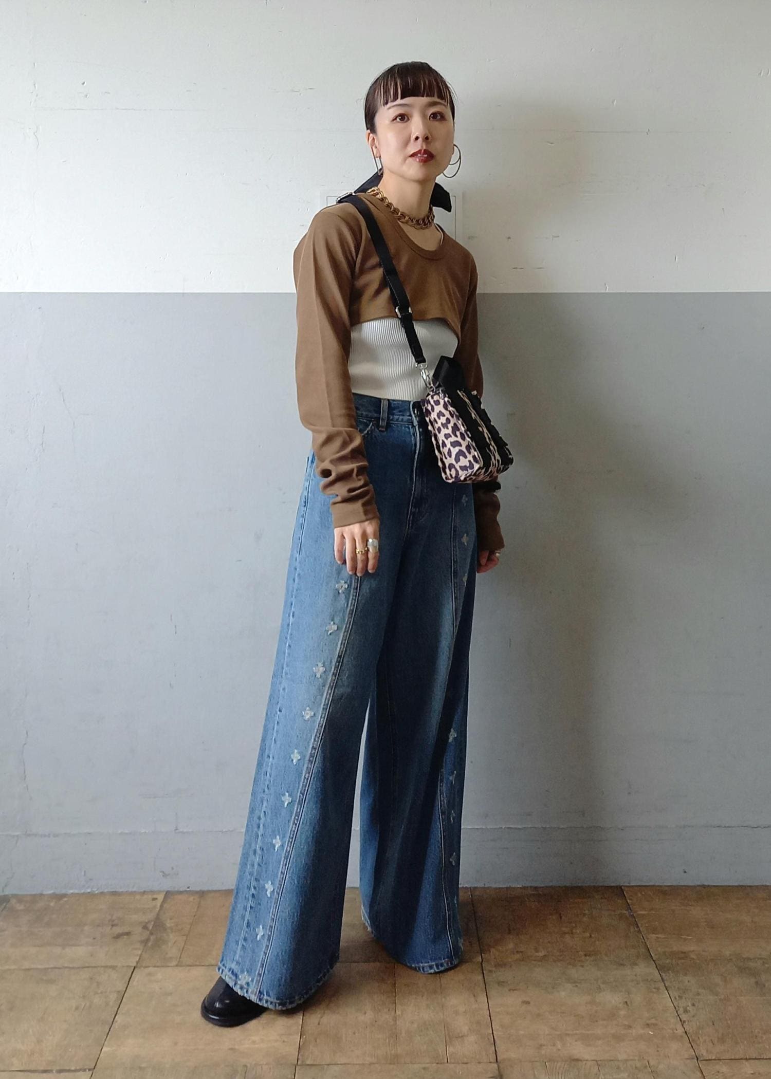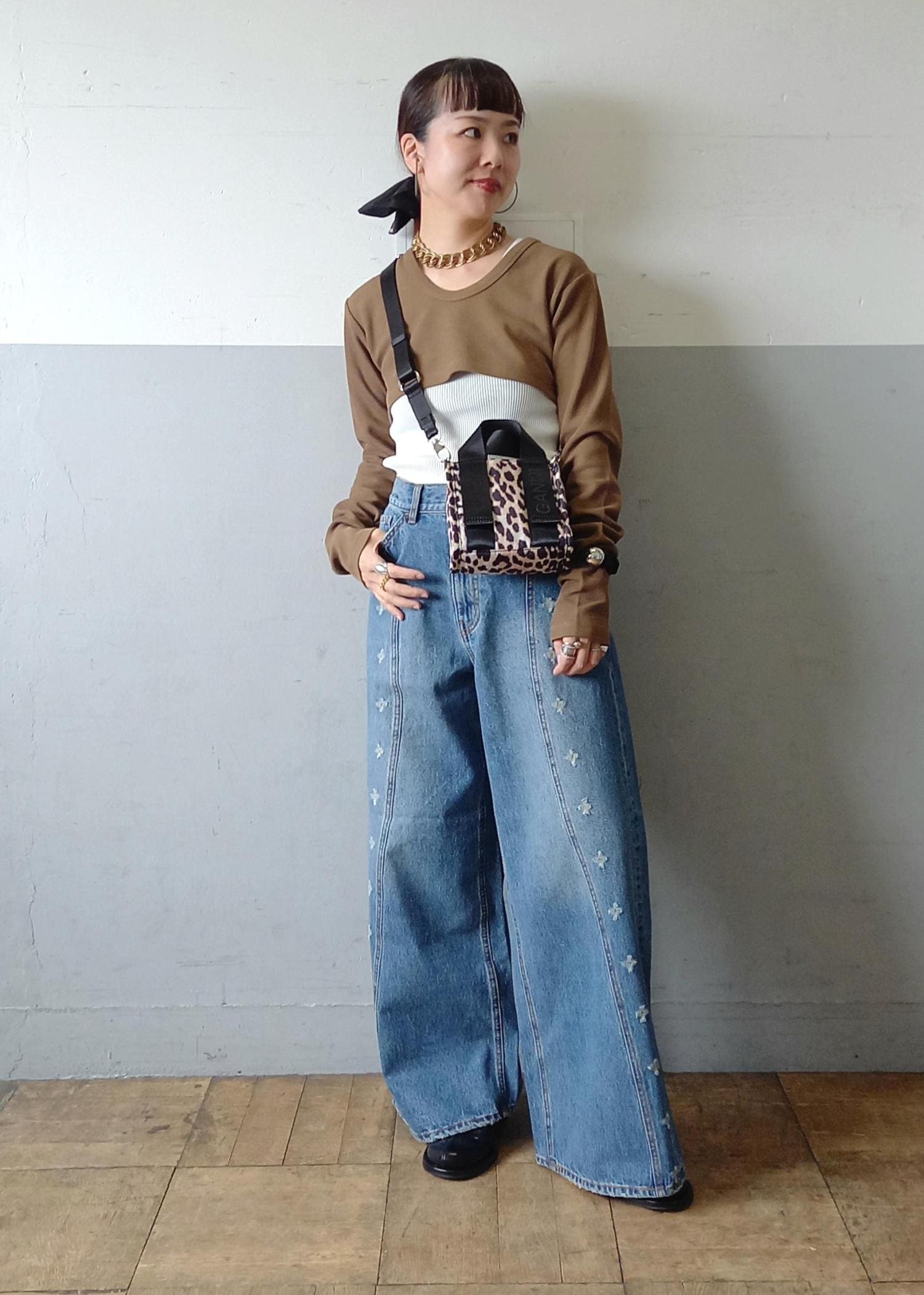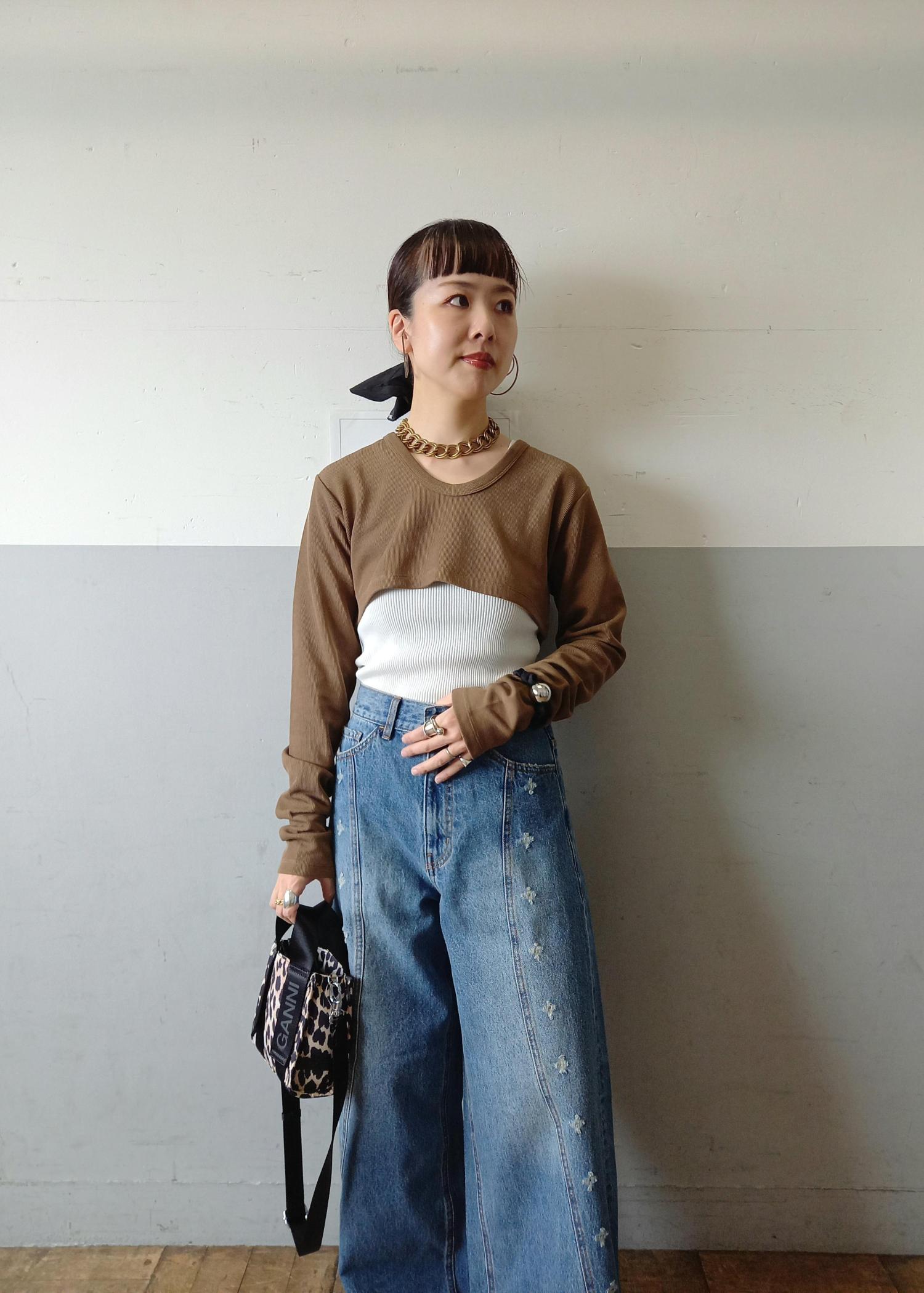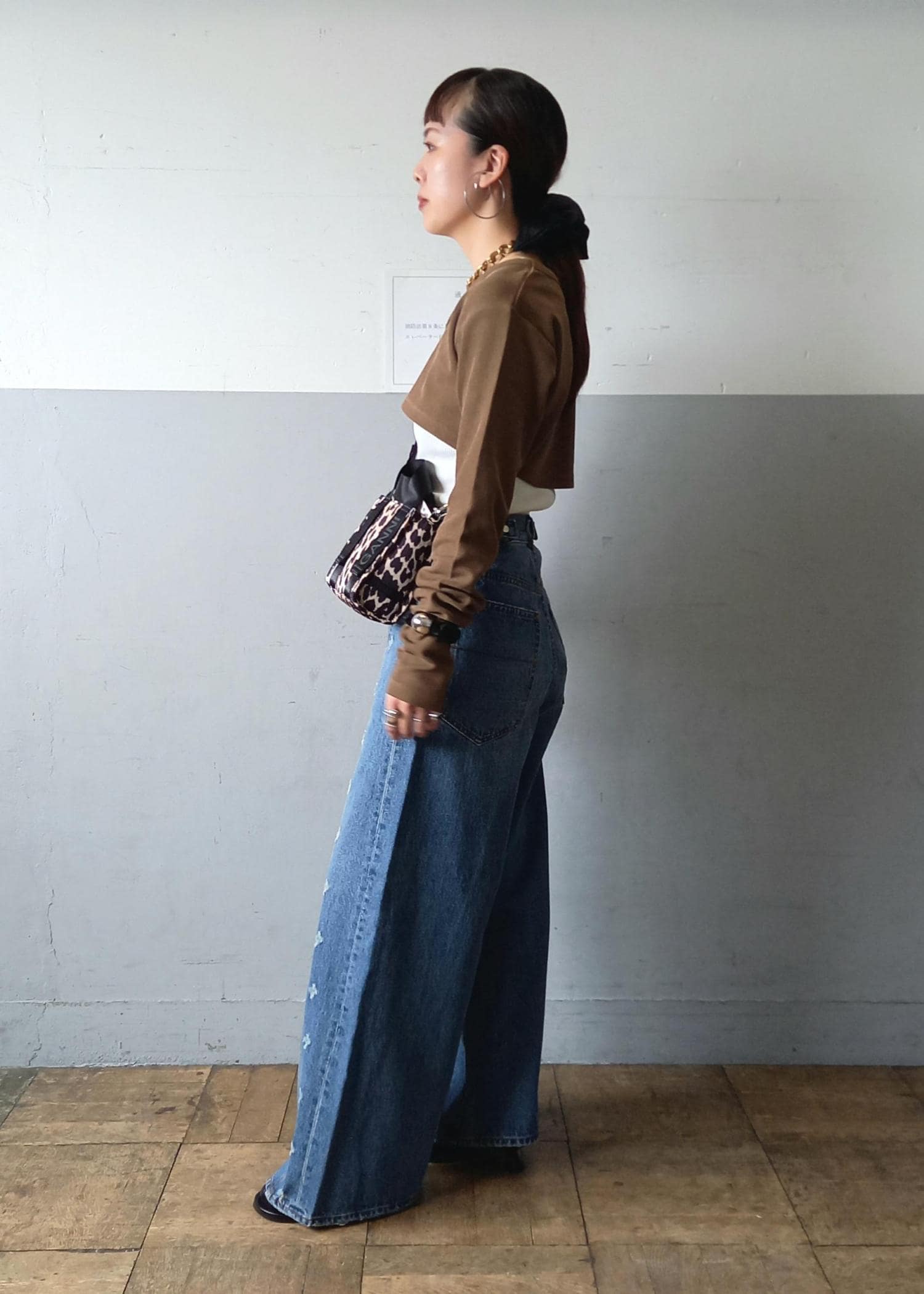 ウェーブさんの特徴は腰位置が低めで重心が下になりがちなのですが、短いトップスを着ることで重心・視線を上に上げてくれます✨