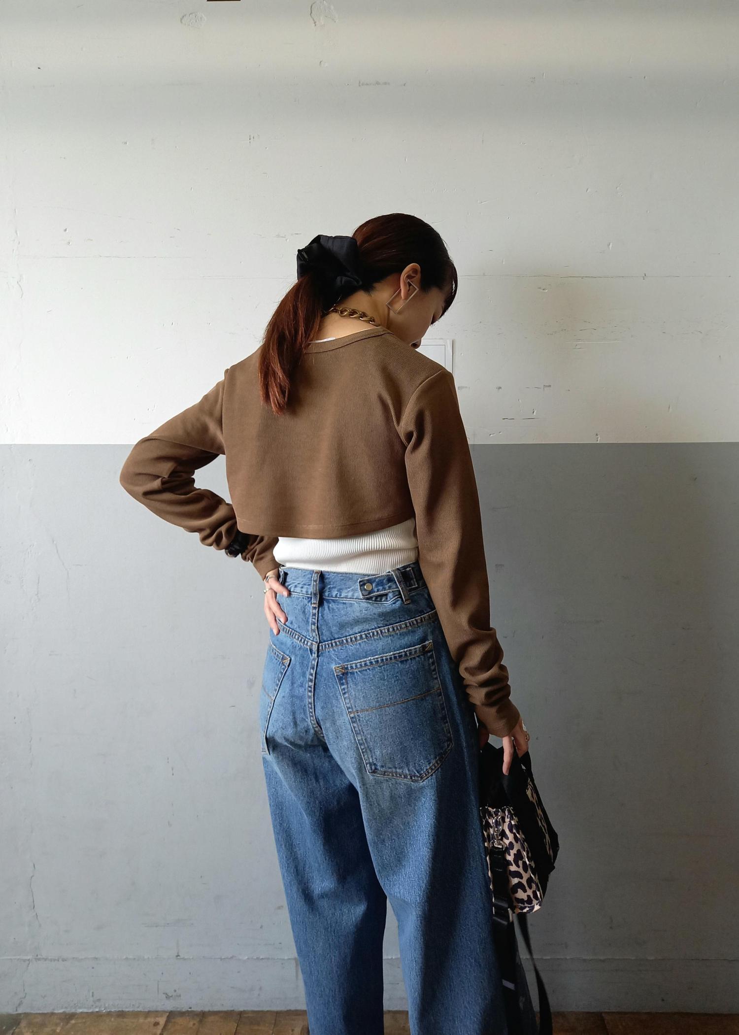 トップスはコンパクトなクロップド丈でスタイルアップ効果も♡インナーにキャミソール、プリントTEEと合わせるのもオススメです♡ -