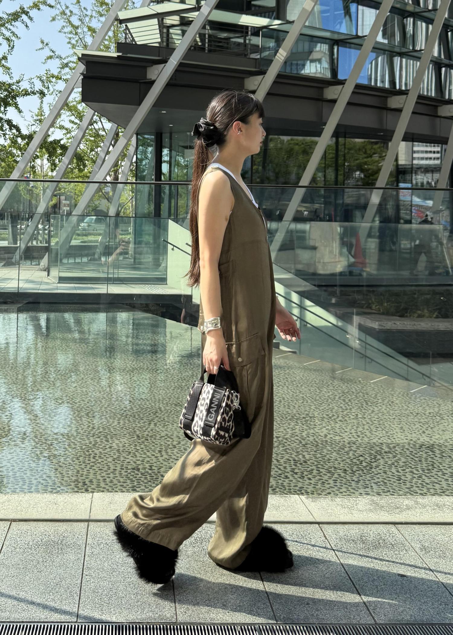 今はまだ暑いのでノースリーブでレイヤードして足元をファーにして少し秋らしいスタイリングにしました!