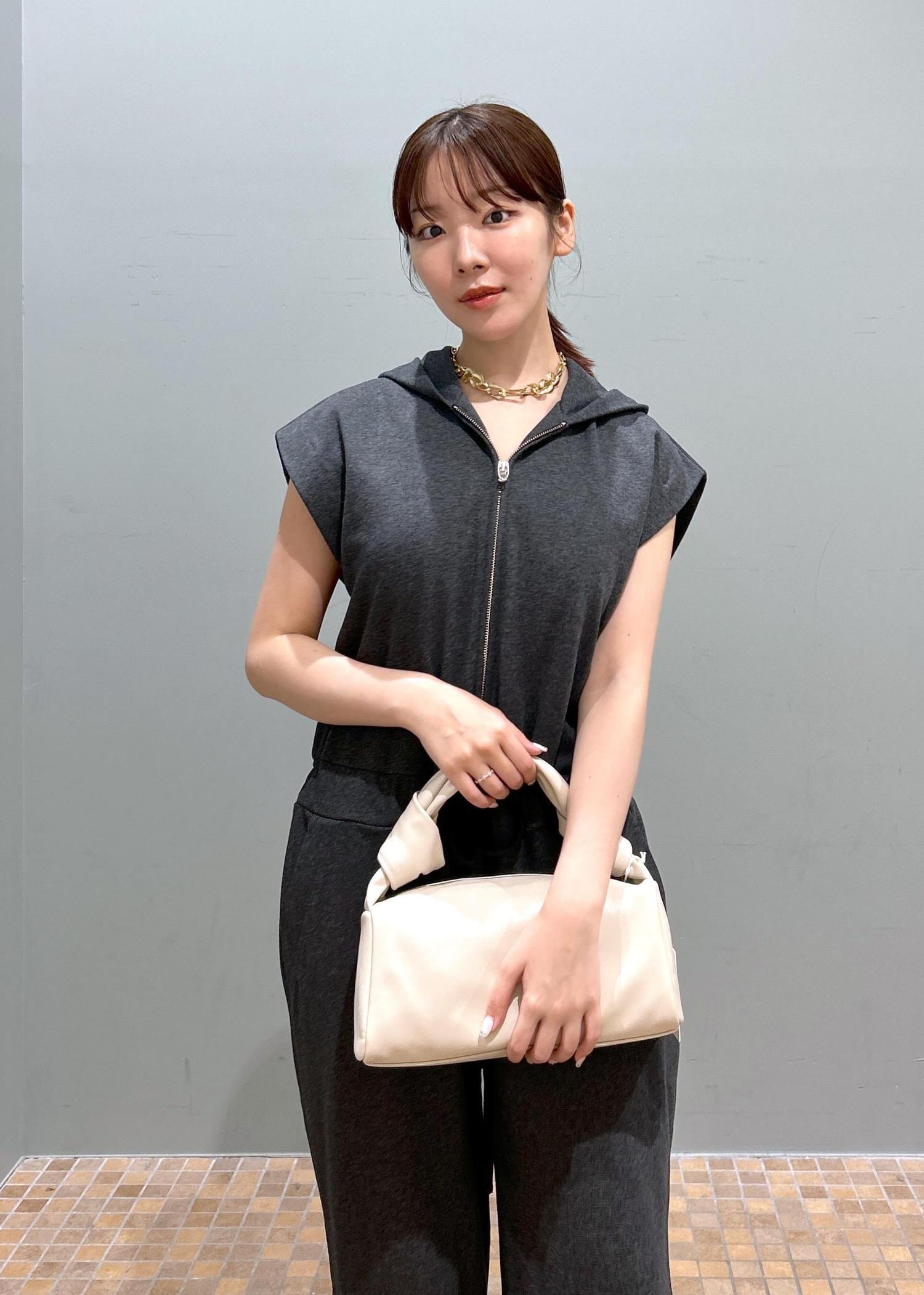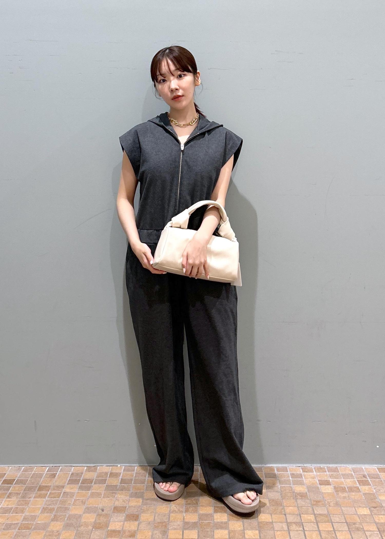 アウトレットADAM ET ROPÉ FEMME裏毛フーディロンパースチャコール / F¥11,880レビュー丈は長めですが、ウエストの絞りでかなり調節ができます!