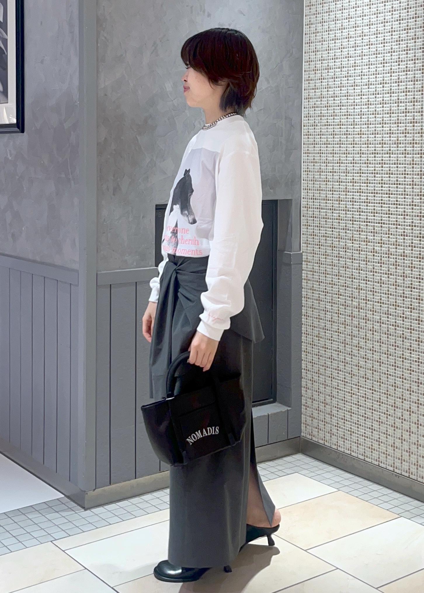 今回はNOMADISのTシャツとバッグをつかったコーディネートを組んでみました。わんちゃんデザインがかわいすぎる♡