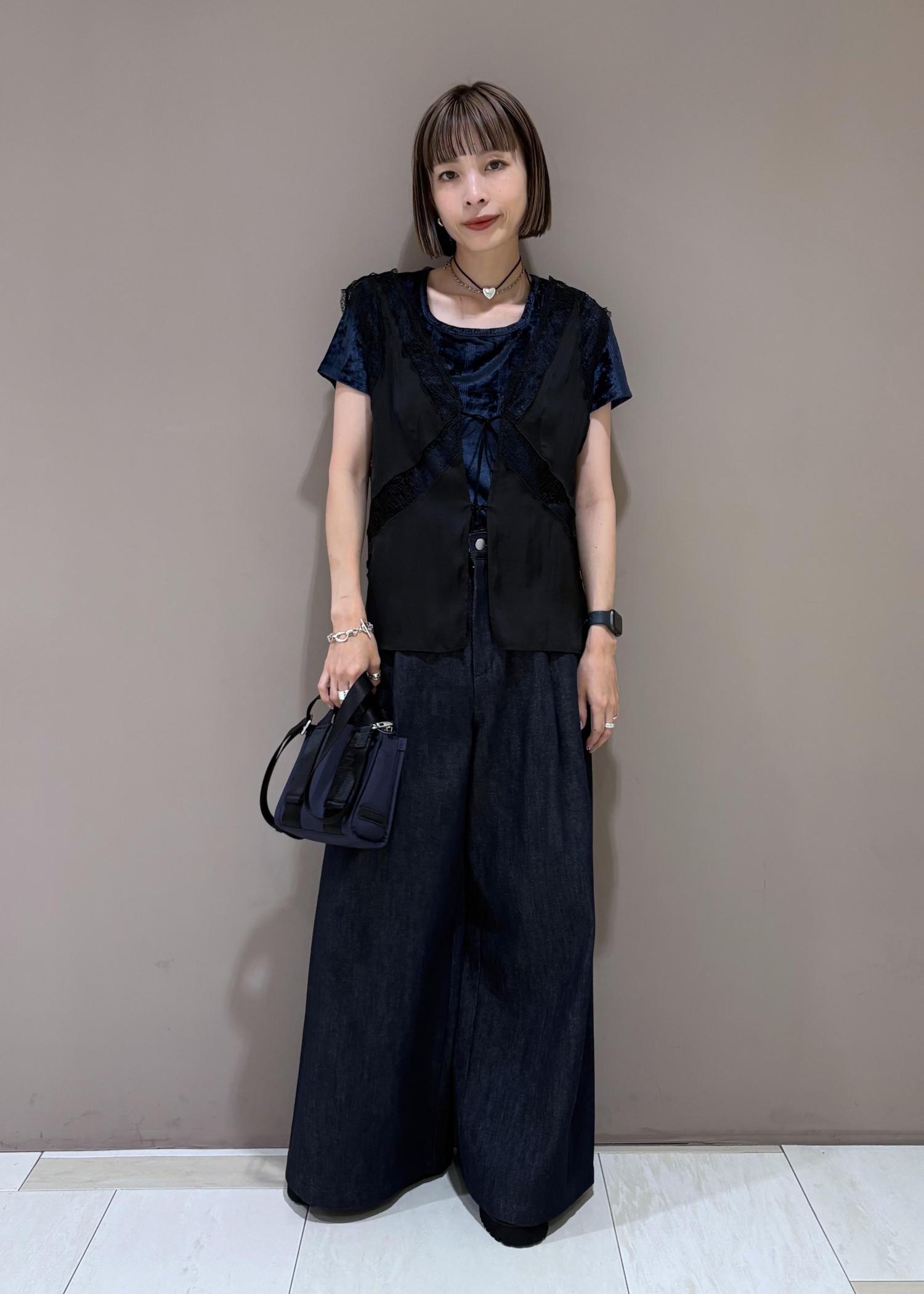 アウトレットADAM ET ROPÉ FEMMEツイストシームワイドデニムネイビー / 36¥11,880レビュー162cm、36サイズ着用。