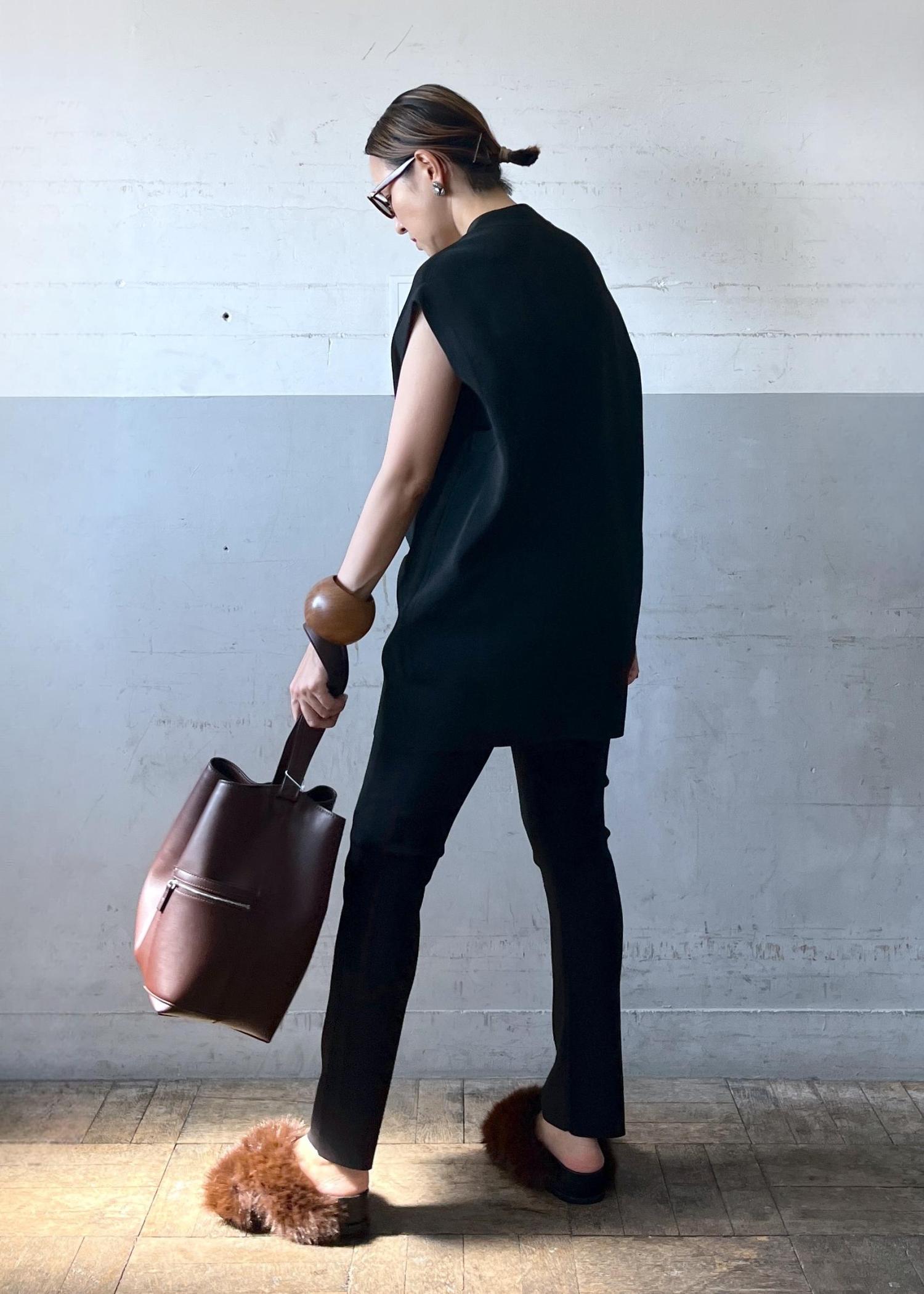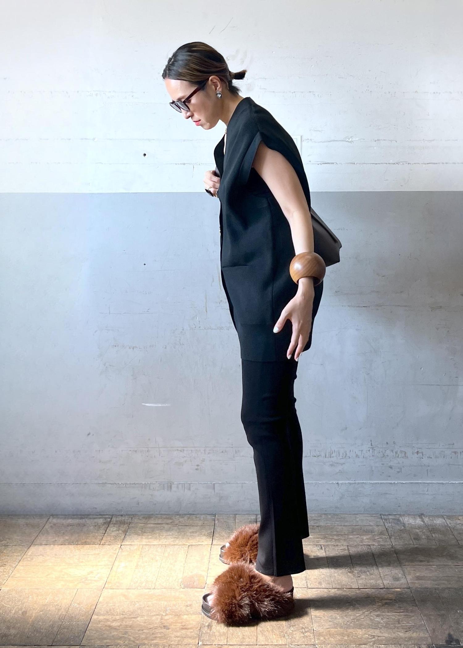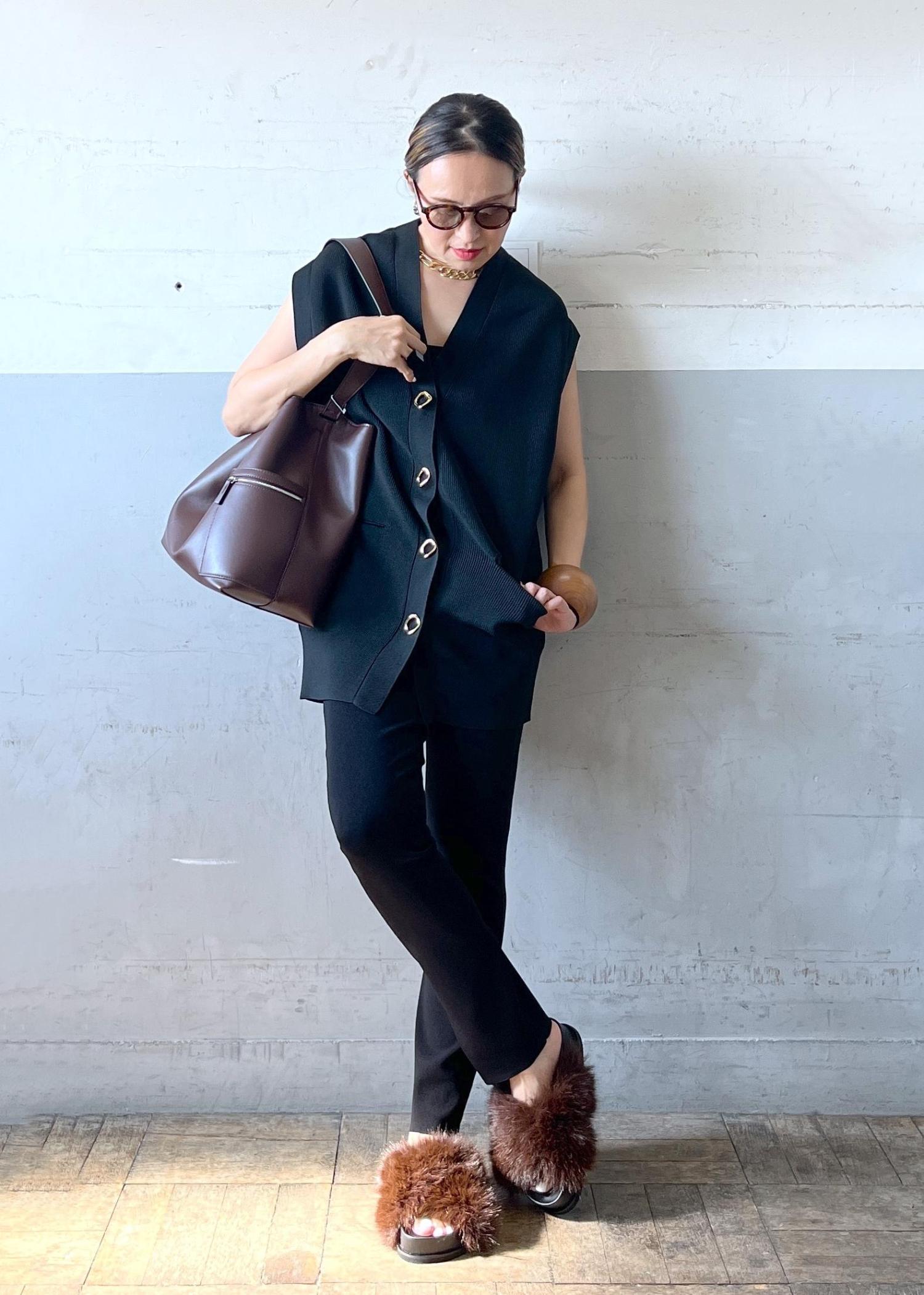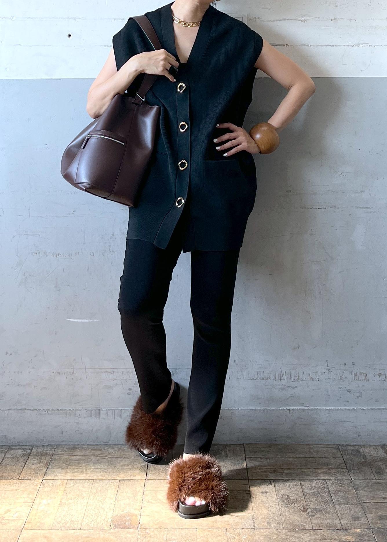 ADAM ET ROPÉ FEMME【サステナブル】ミドルニットジレブラック / F¥17,600レビューオーバーサイズでお尻をすっぽり包んでくれる安心の丈感◎ジレとして羽織ってもいいしボタンを閉じてトップスとして着てもOKな万能アイテムです。