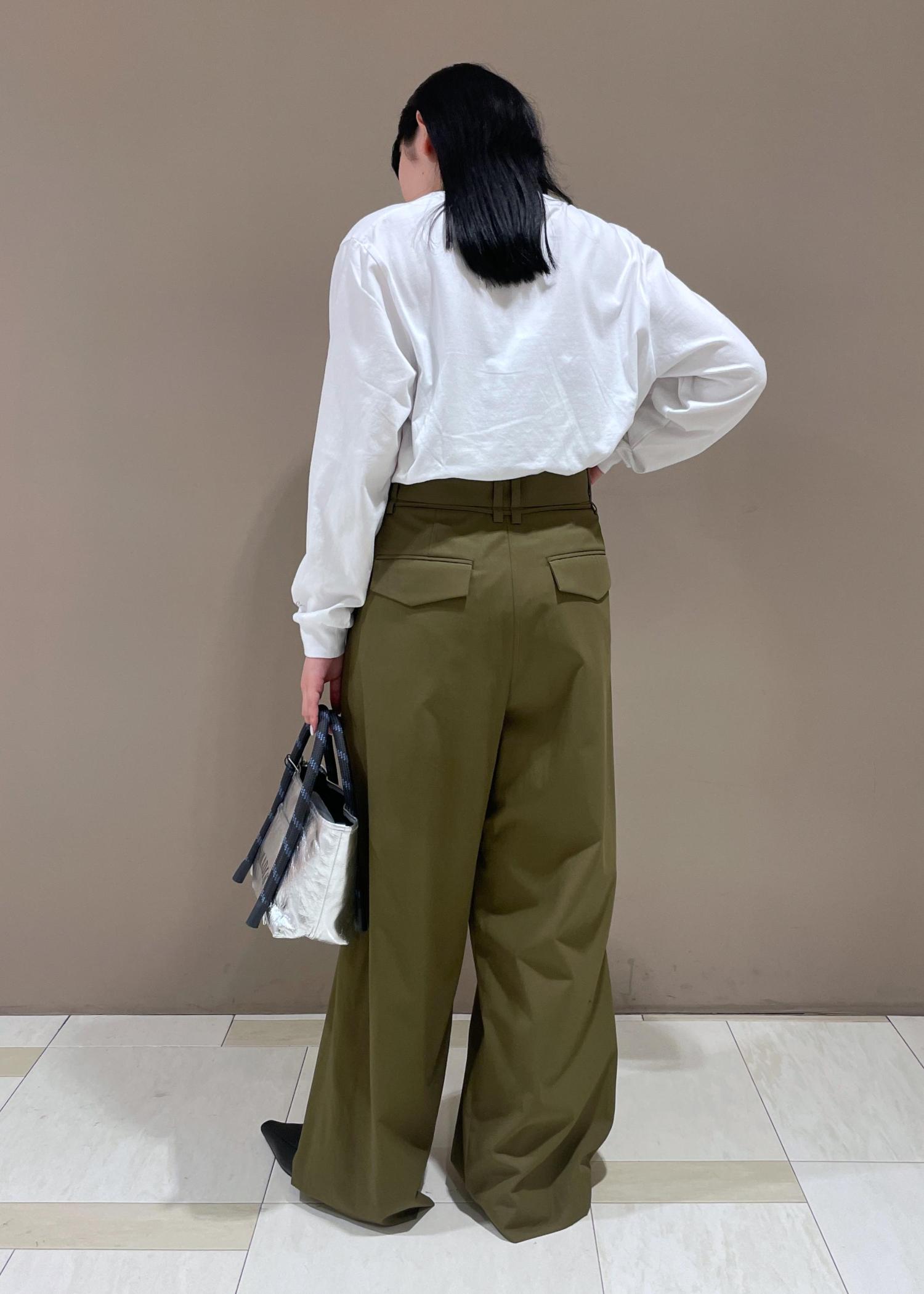 ADAM ET ROPÉ FEMMEドロストドカンパンツカーキ / 36¥24,200レビュー36でウエストとお尻周りゆったりめ、丈感はヒール無しの靴でぴったりです◎生地感サラサラしていて真夏も履きやすそうです!