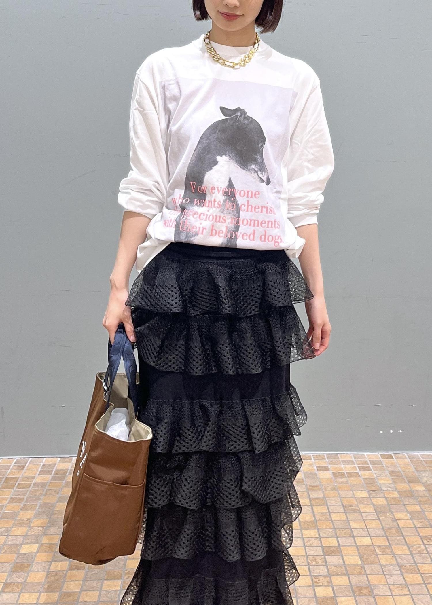また、トップスのわんちゃんロンTは各ルミネ店で行っているpop upで販売しており、プリントとロゴのバランスがとても可愛いです!