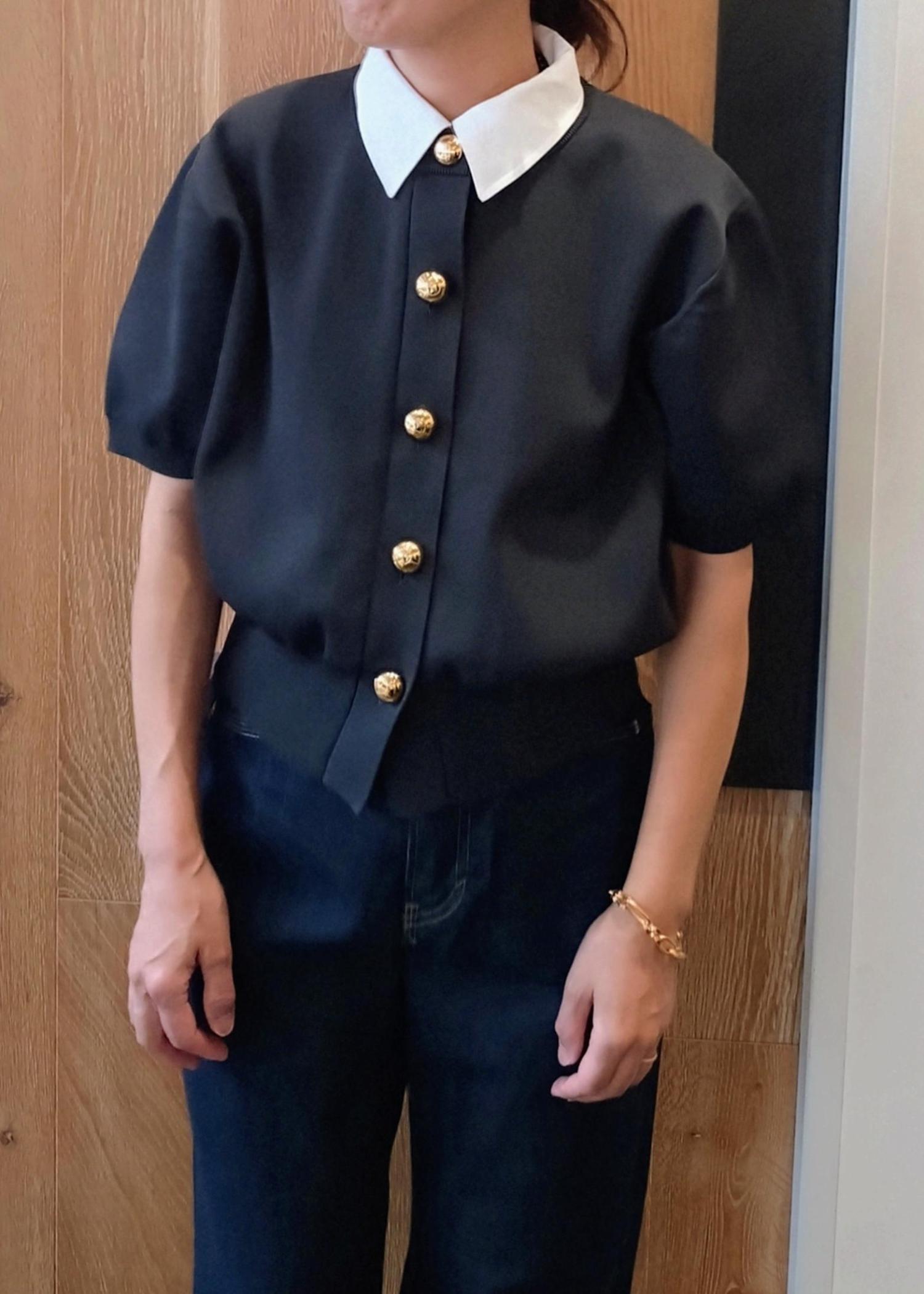 取り外しのできる襟と大きめのゴールドのボタンもポイントです。