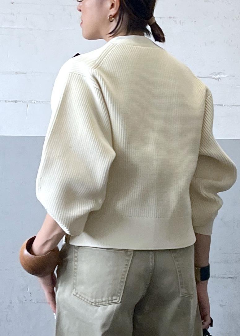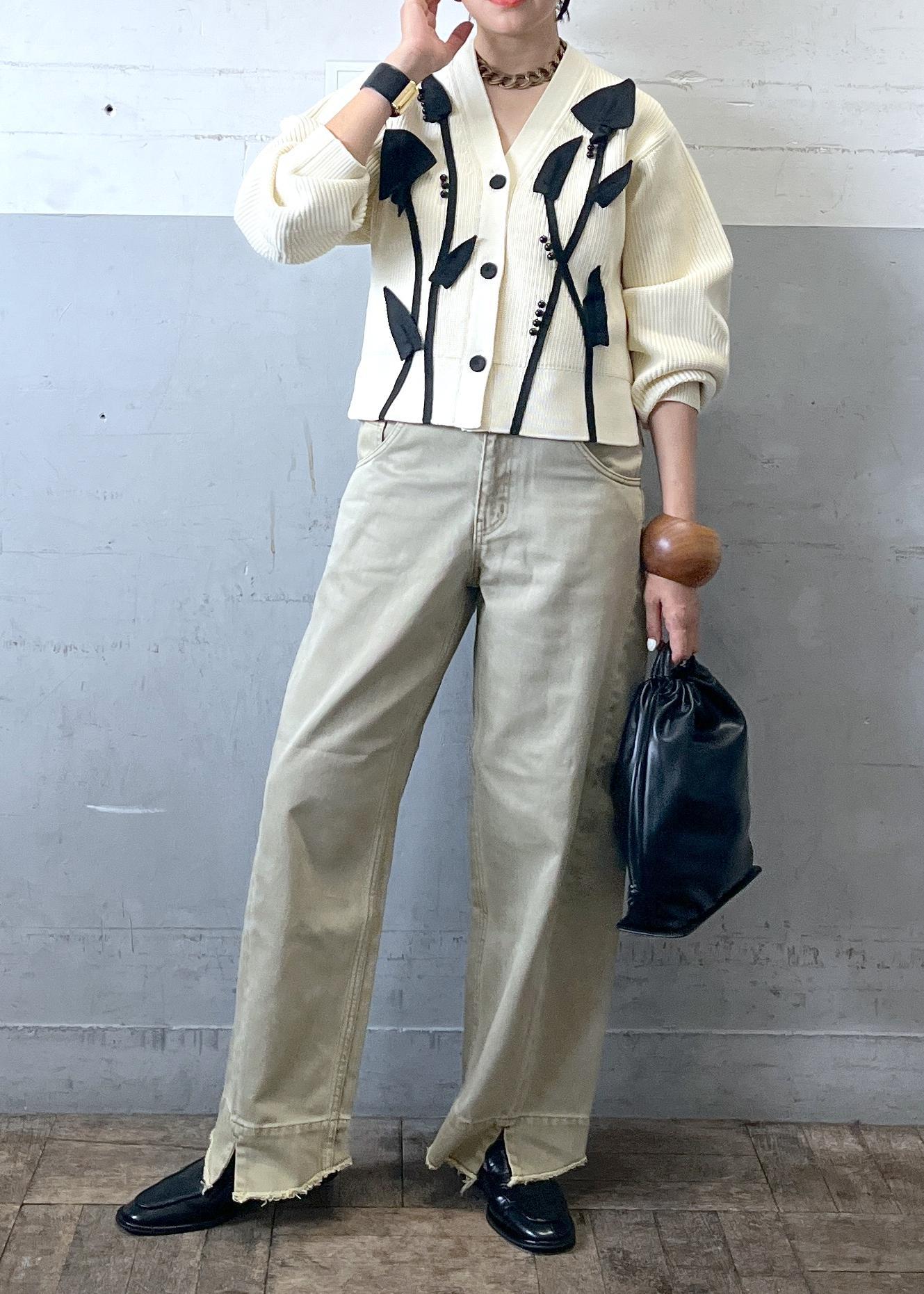 ADAM ET ROPÉ FEMME【サステナブル】3Dモチーフカーディガンキナリ / F¥9,900レビュー毎年人気のリブカーディガンのデザインがガラッと変わって新登場です♡ 立体的なモチーフがインパクト大!で主役級のカーディガン♫ ゆったりしたサイズ感で、インナーにも着込めるのでちょっとしたアウター感覚で長く着ていただけますよ!とても軽いところも嬉しいですね!