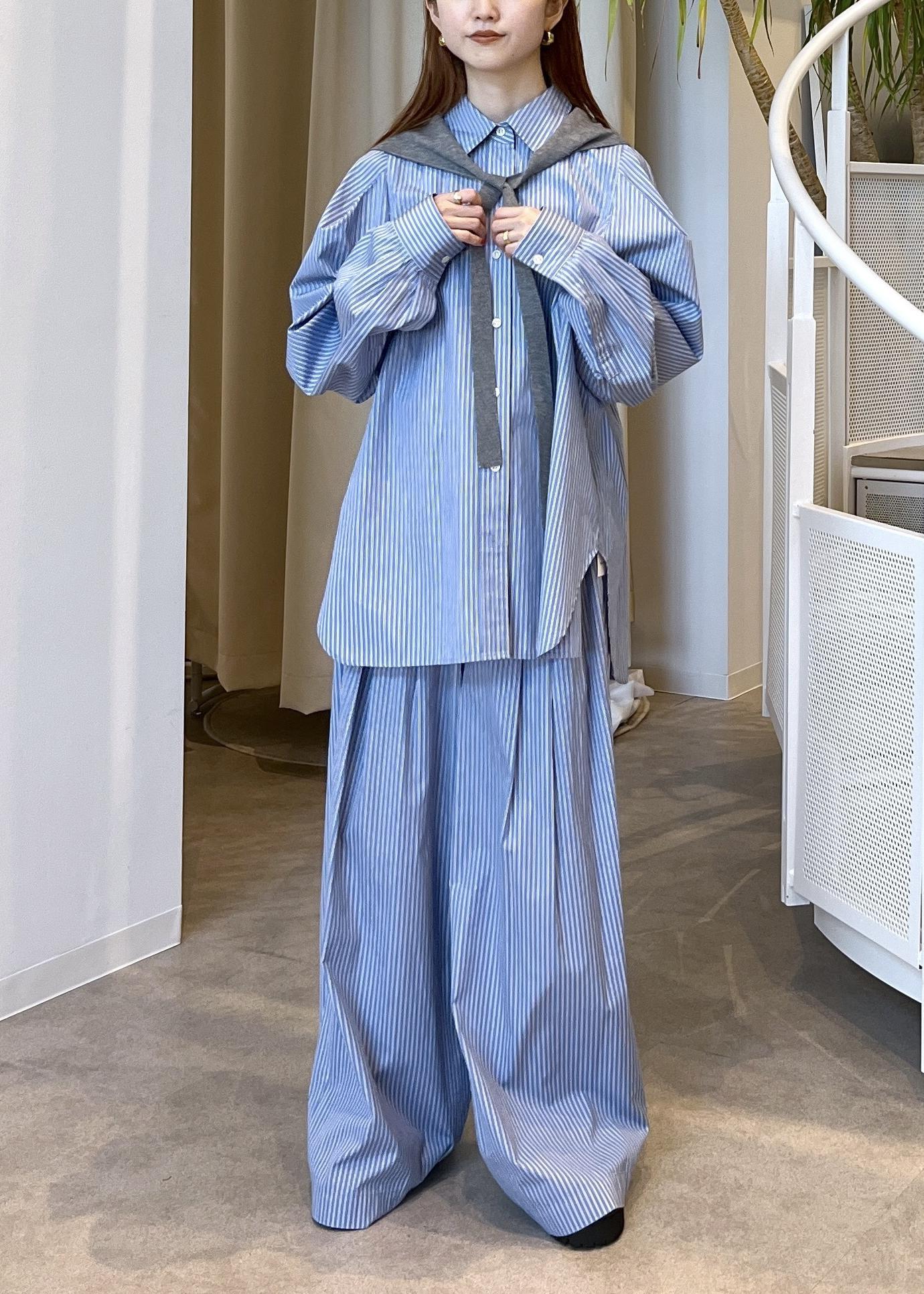 ADAM ET ROPÉ FEMMEシャツスラックスサックス / 38¥25,850レビューサラッとしたシャツ素材で、とっても軽い着心地です。ウエストにヒモが入っているのでサイズの調整も可能です。ワイド目でヒップ〜太ももにかけてもゆとりがありながらも、すっきりと脚を長く見せてくれます。
