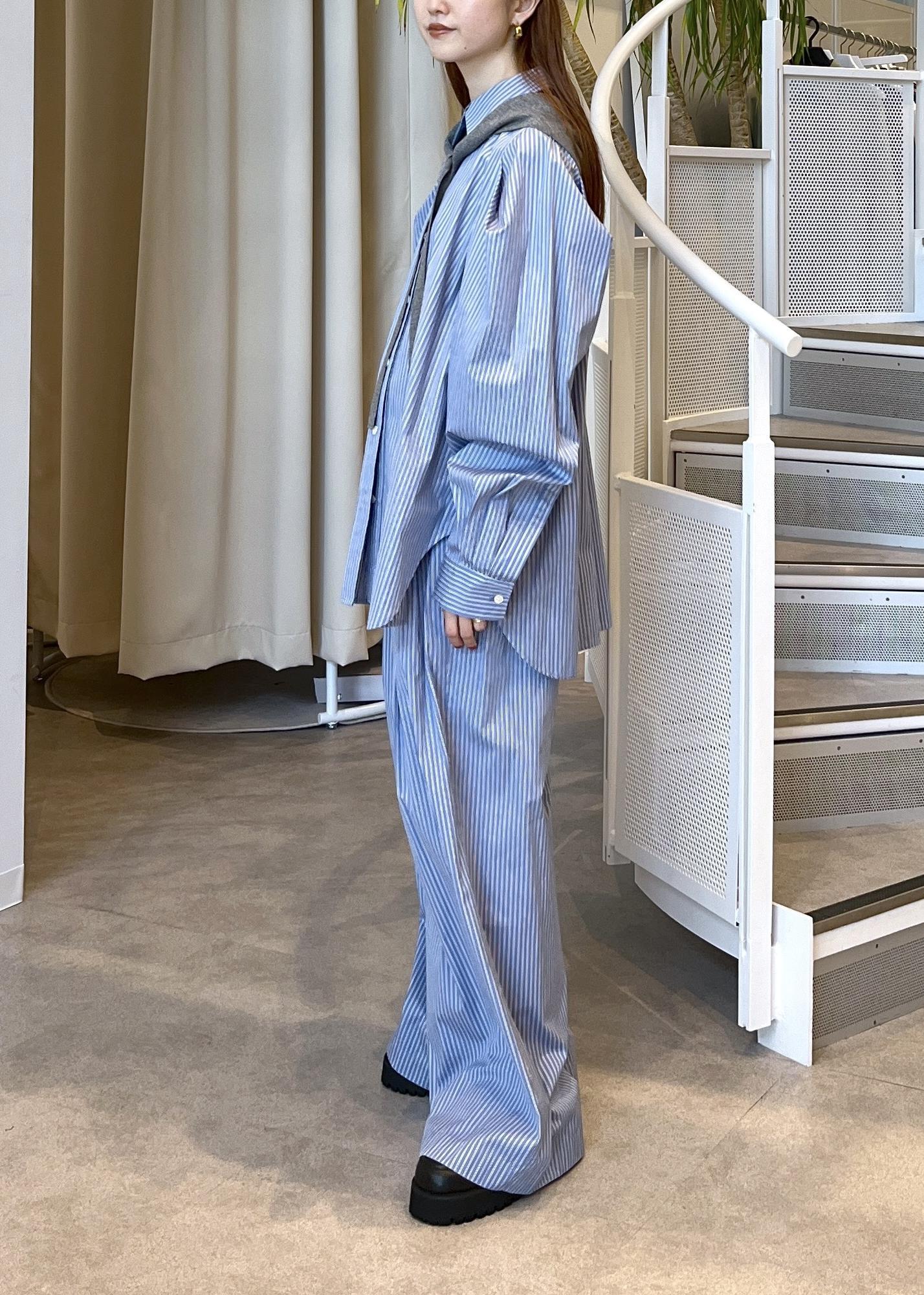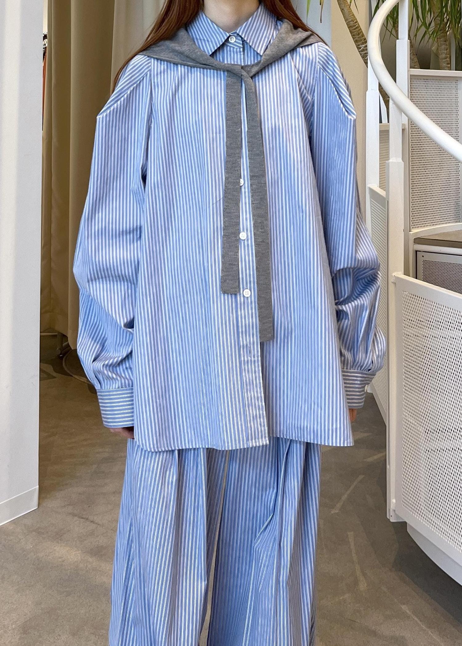 ADAM ET ROPÉ FEMMEタックスリーブシャツサックス / F¥16,170レビュー程よくハリ感のあるシャツで綺麗な素材感。サラッと着心地も良いです◎オーバーサイズで、ヒップがすっぽり隠れるくらいの着丈です。中にインナーを入れて羽織としても使い勝手の良い1着です。