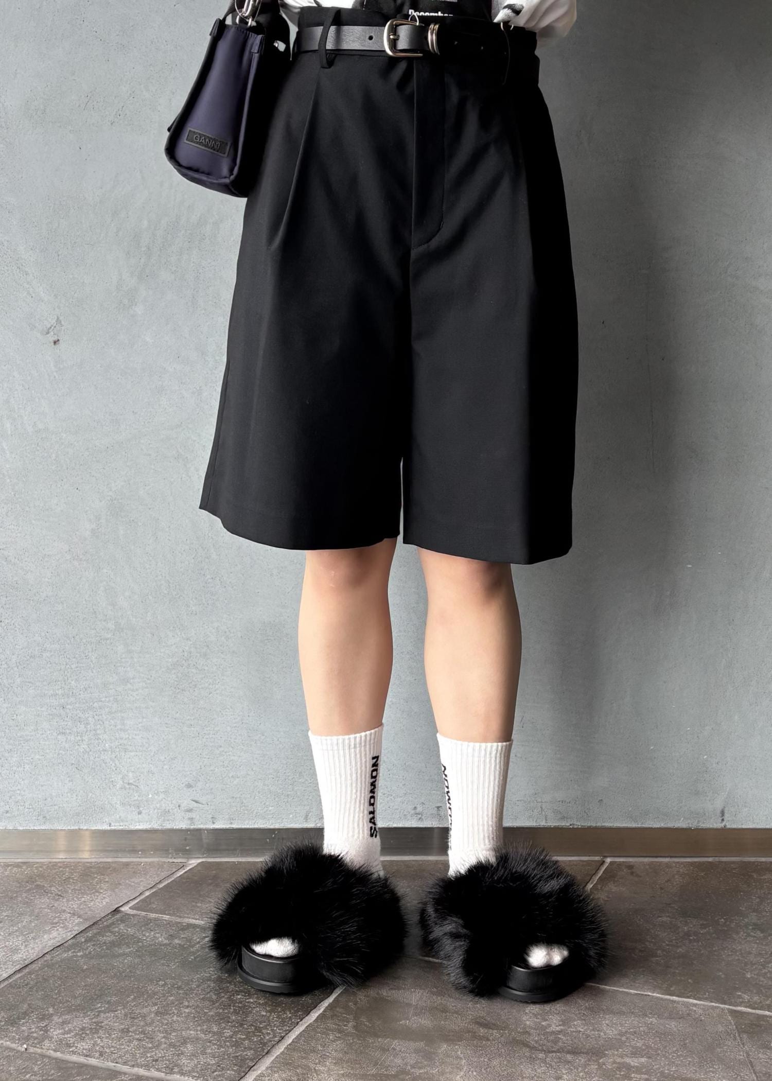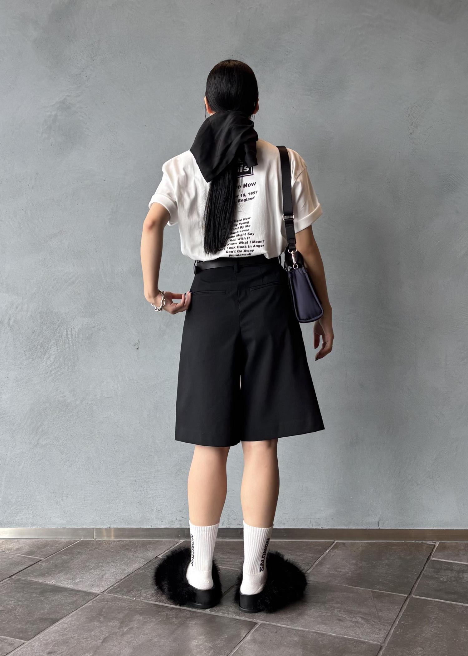 アウトレットADAM ET ROPÉ FEMME【サステナブル】ソリッド&ストライプハーフパンツブラック / 36¥13,090レビュー36着用。膝にかかるくらいの長さ。サラッとした素材で、綺麗めにもカジュアルにも◎ウエストはアジャストで調整可能です。