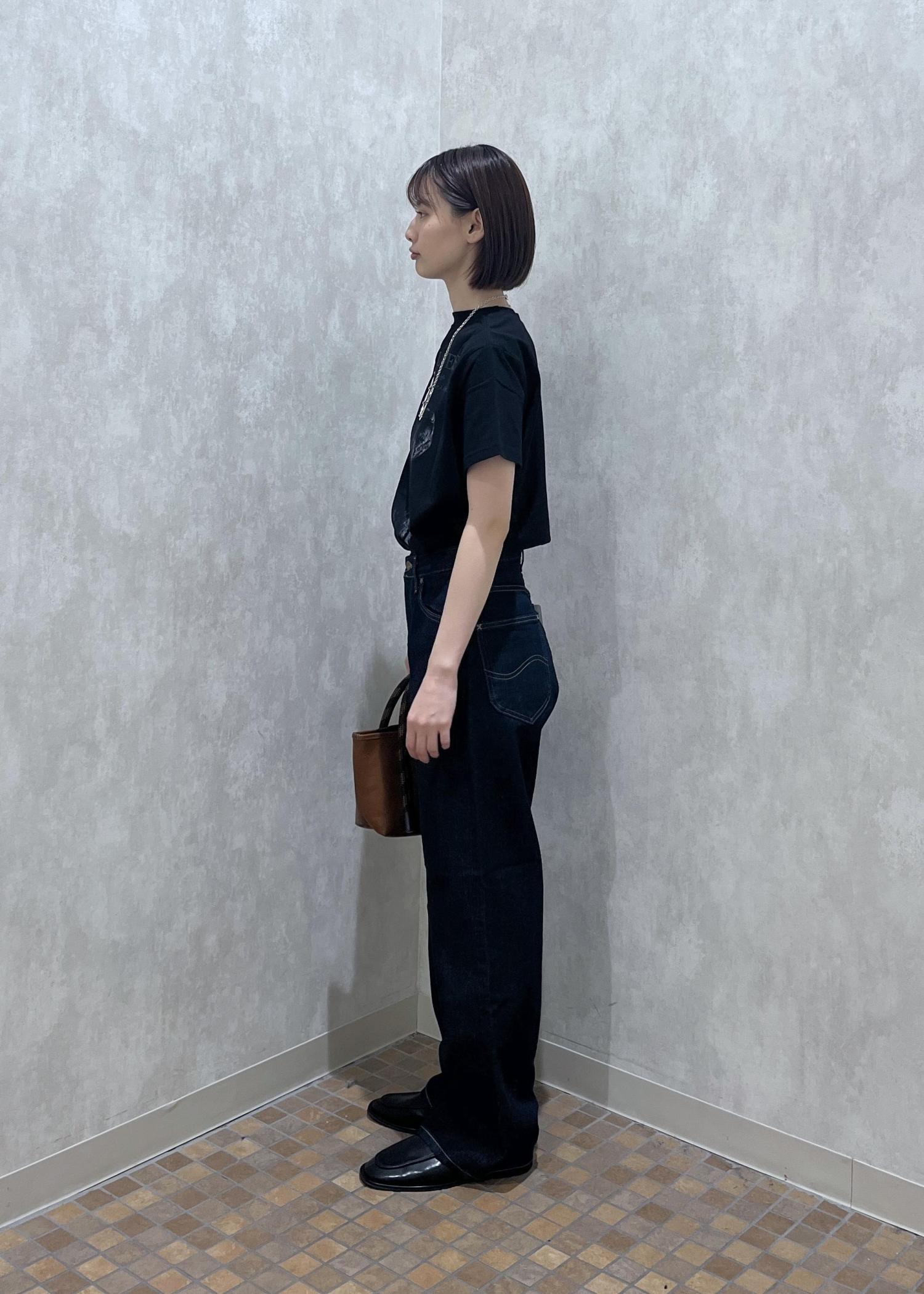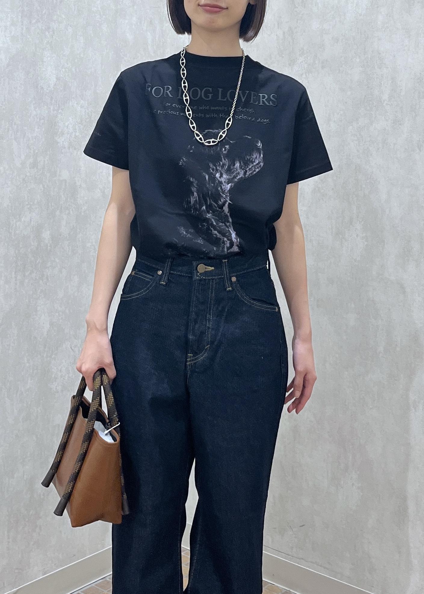 一緒に合わせているわんちゃんteeとバッグは、ただいまADAM ET ROPÉ各ルミネ店で行っている”NOMADIS“のPopupで販売しているもので、Tシャツはあえてバックプリントを前にして着用しております!