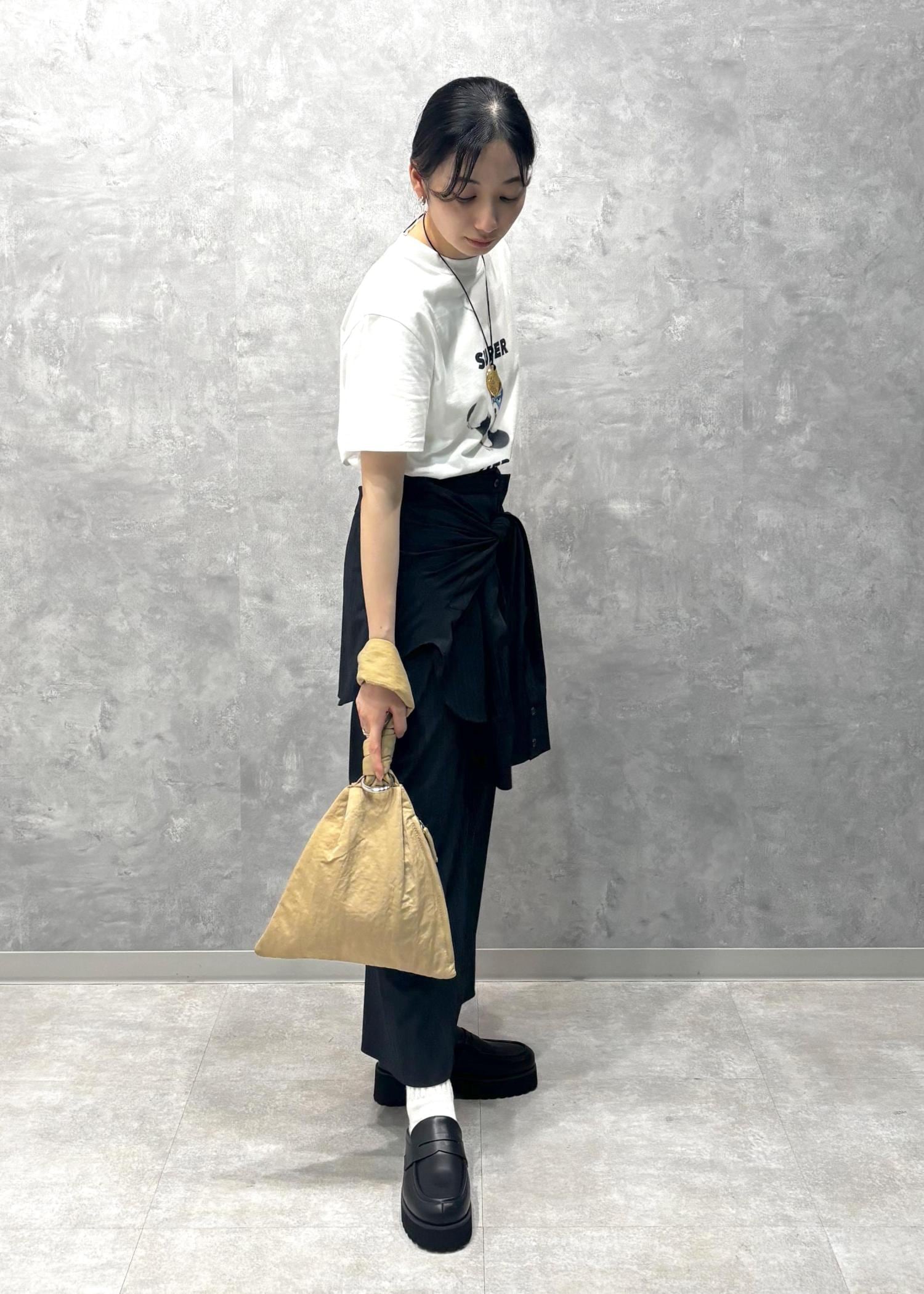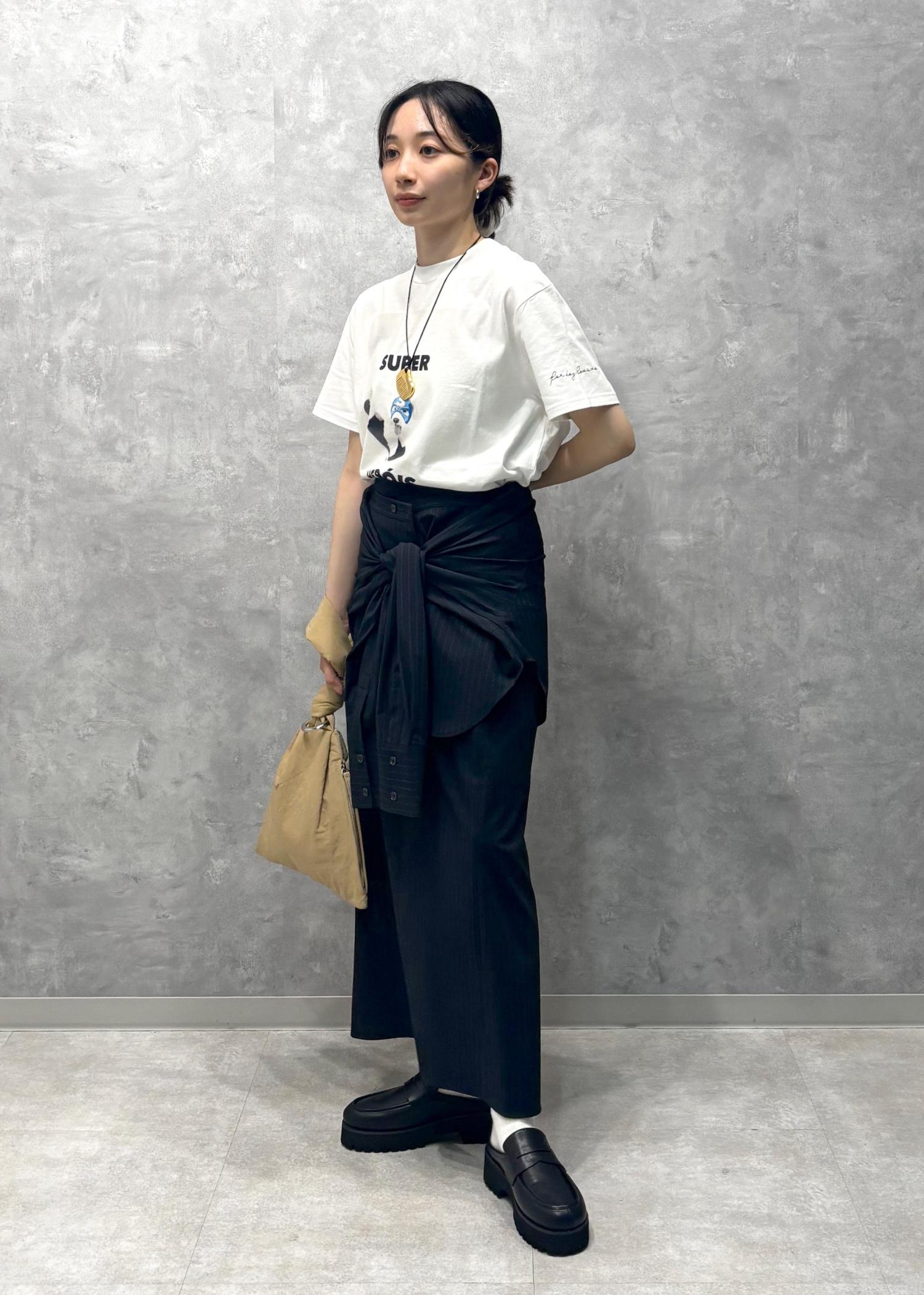 接触冷感の機能があるので、さらっとひんやり感があって夏でも涼しく履いていただけます。トップスとのセットで、別々に使えるので着回しに大活躍です!生地感はキレイめですが、Tシャツ合わせや腰巻きスタイリングでカジュアルにも合わせられる万能アイテムです☺︎