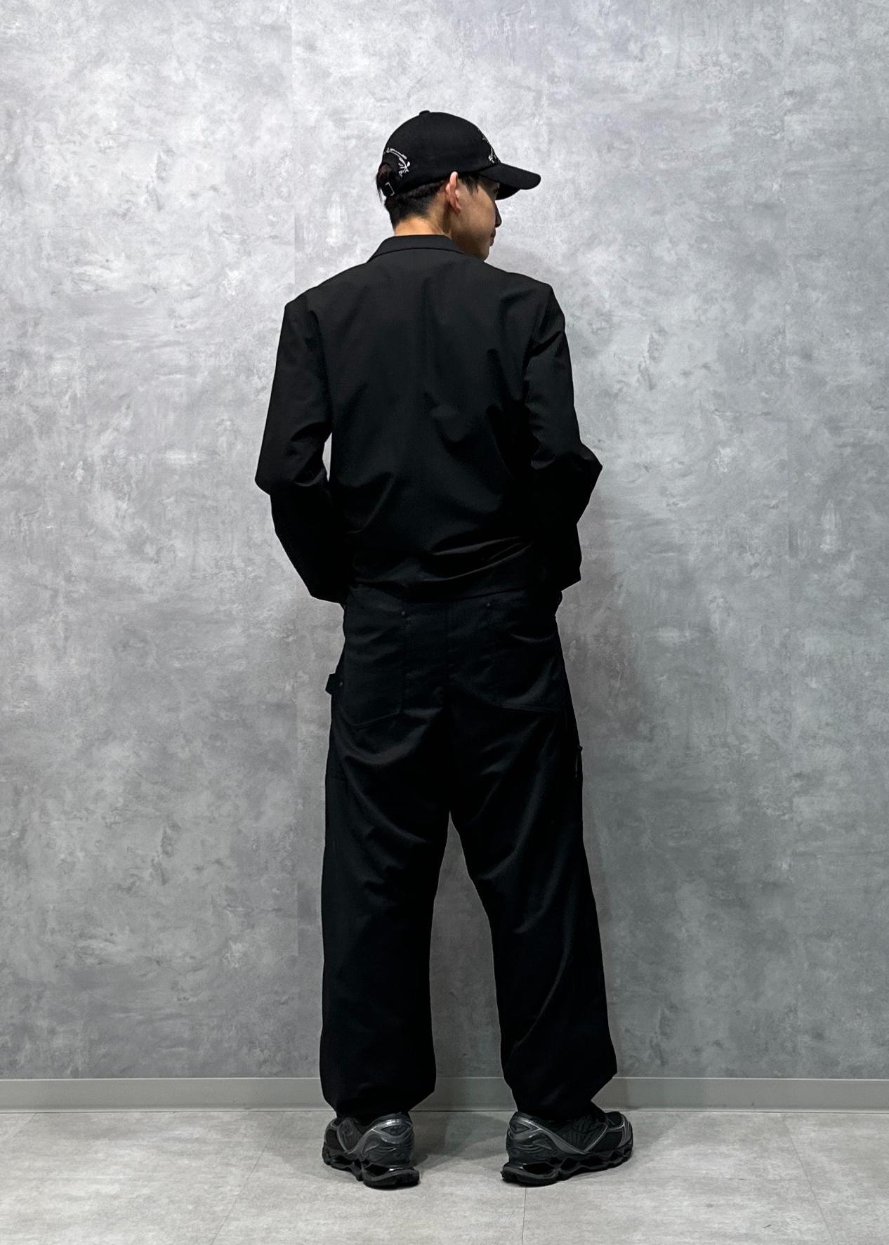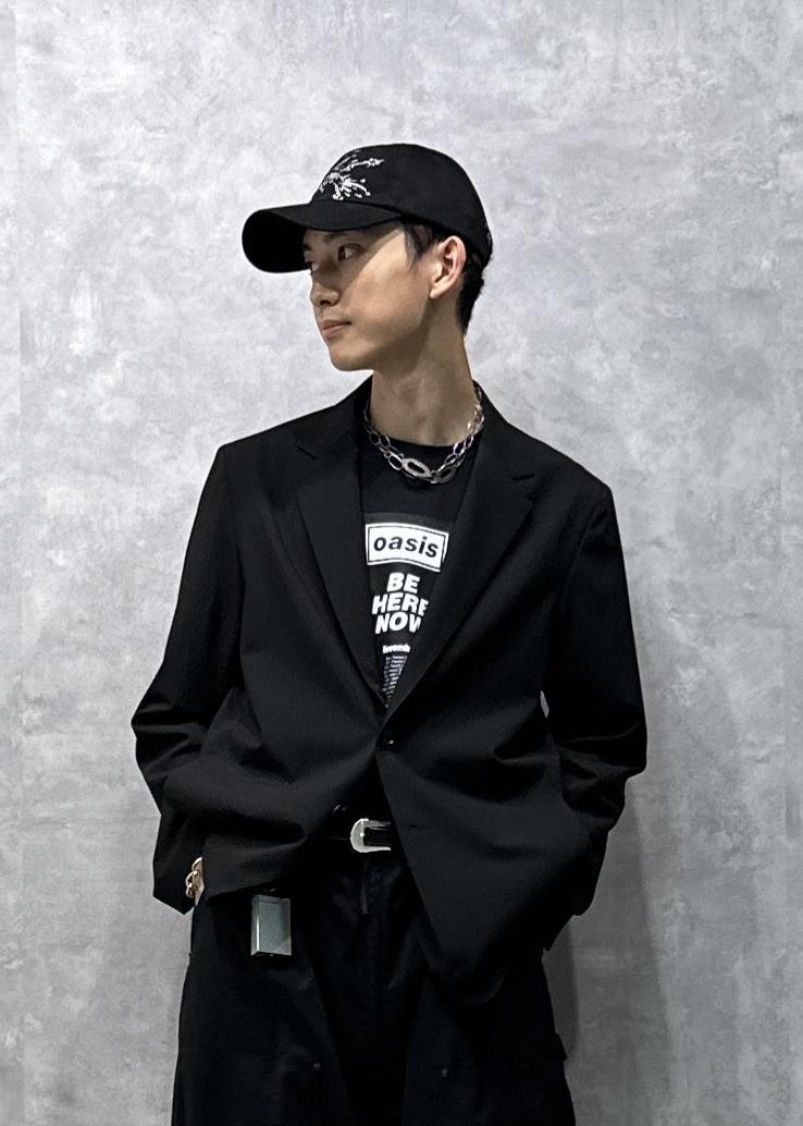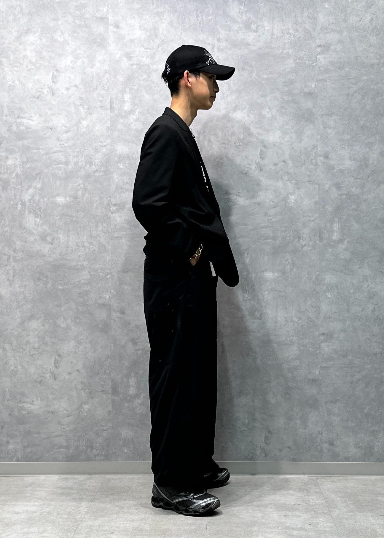 クリーンなカーゴパンツにテーラードジャケットを組み合わせ、スニーカー、キャップでカジュアル要素を取り入れたきれいめモードコーデです。黒でまとめることでカジュアル感満載になりにくく、大人っぽくカッコよく仕上がります。