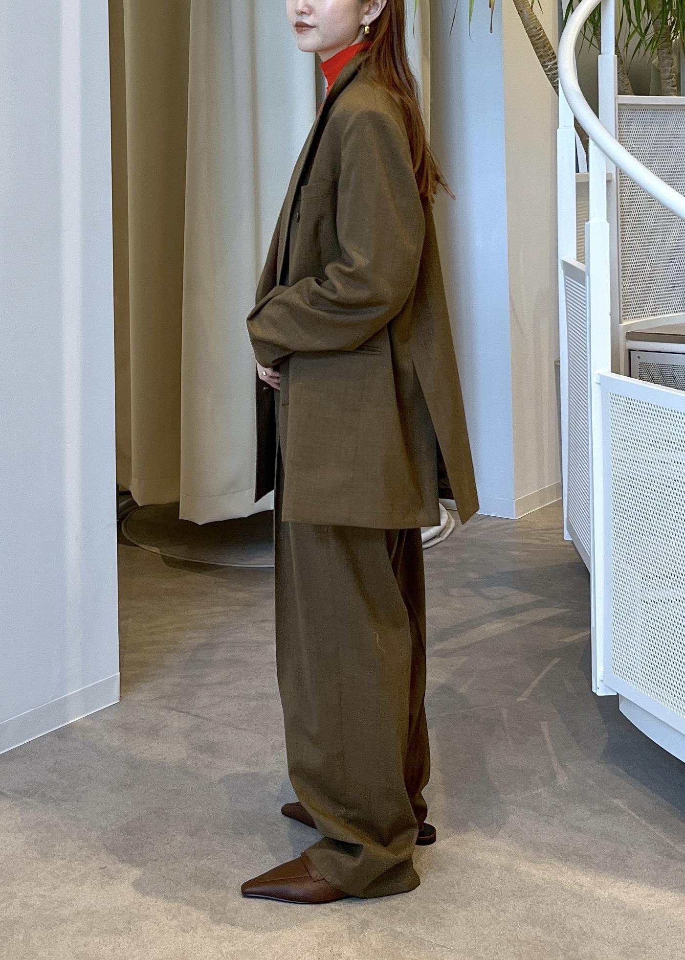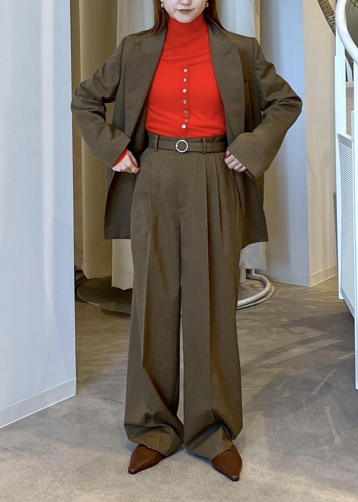 EMOELLE【EMOELLE】ベルテッドスラックスキャメル系 / 38¥29,700レビュー細番手の糸を使用したウールとポリエステルの上質な素材感です。程よくハリがありシワになりにくいもの嬉しいポイント。ウエストでぎゅっと絞ってずるっと感が出る長さです。すとんと落ち感がとても綺麗なシルエットです。