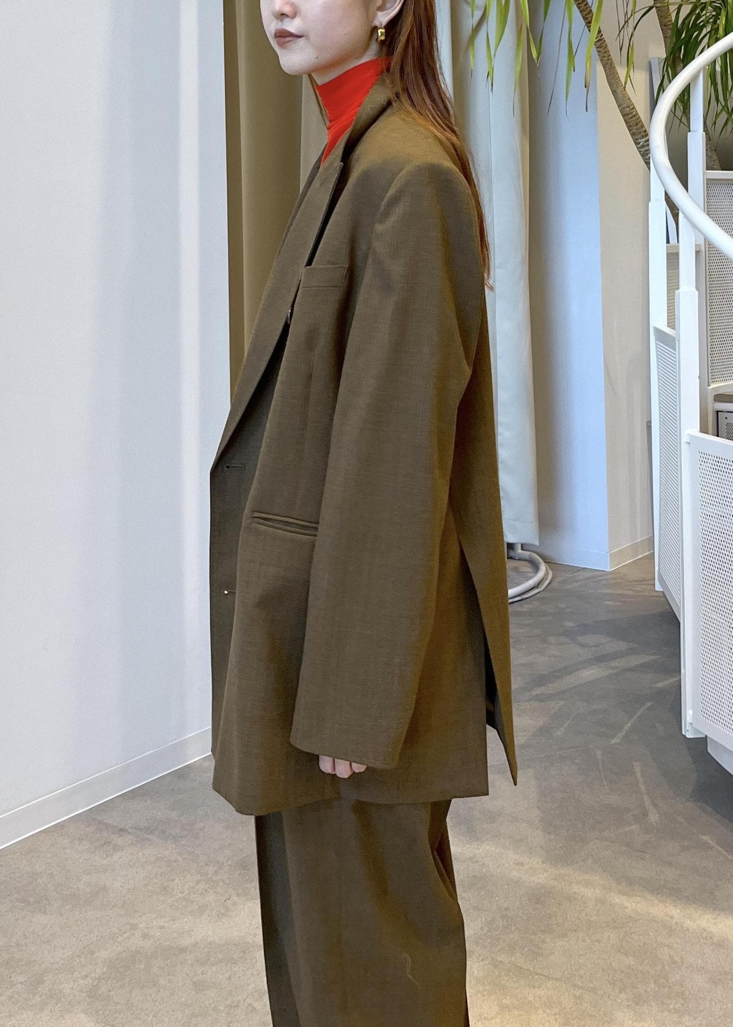EMOELLE【EMOELLE】ボックスジャケットキャメル系 / 38¥39,600レビュー細番手の糸を使用したウールとポリエステルのとても綺麗で上質な素材感です。程よくハリがありシワになりにくいもの嬉しいポイントです。ボックスシルエットでハンサムな雰囲気が◎