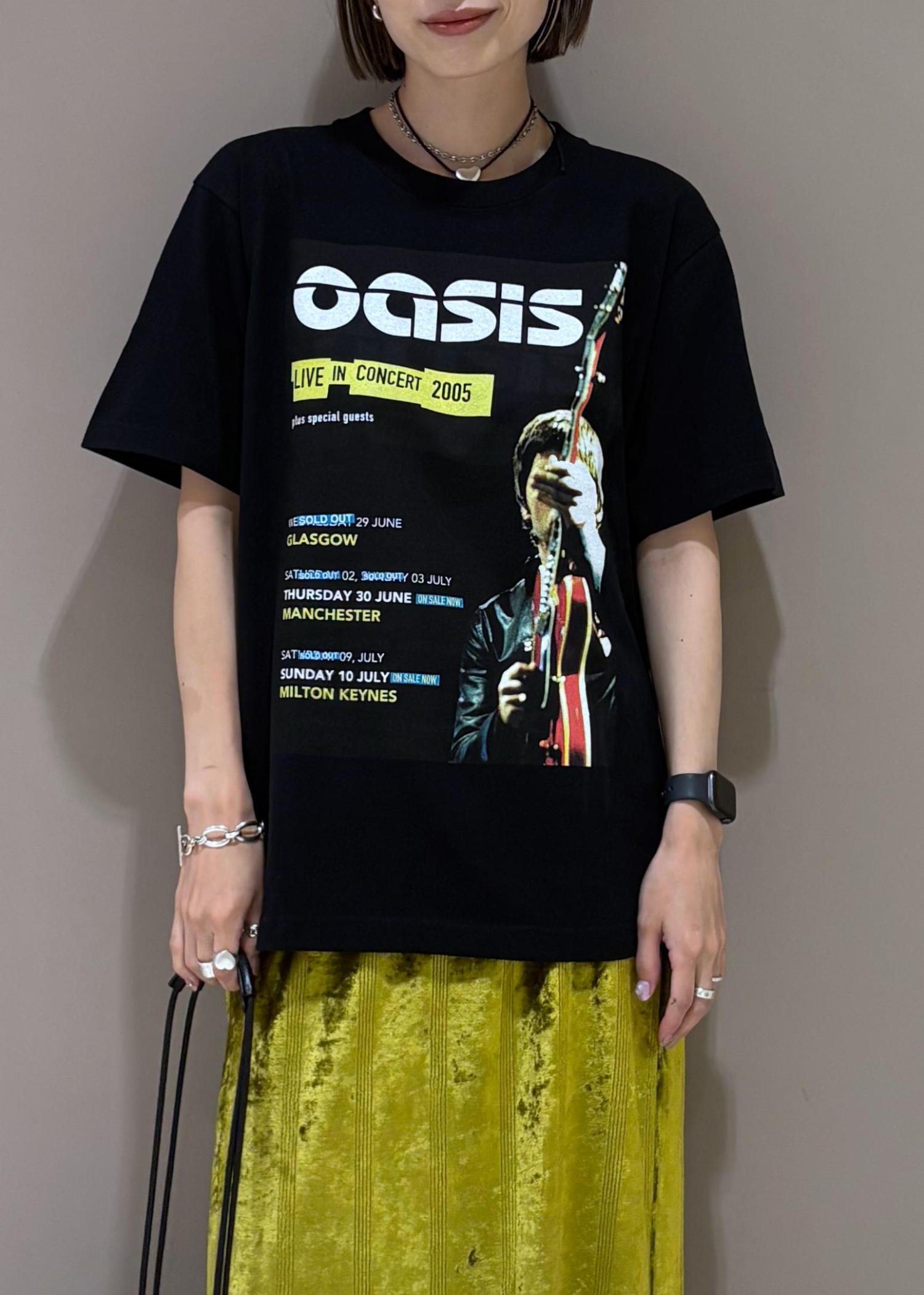 今回は、過去にoasisがライブを開催する際に使用していたポスターのグラフィックを、Tシャツのフロント部分に落とし込み、バックには、各ライブで披露された数々の名曲をセットリストのように記載したデザインを4柄と、開催が中止になった貴重なツアーポスターのアートワークをフロントに用いた2柄の全6柄で制作。