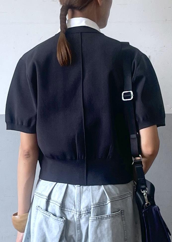 ADAM ET ROPÉ FEMME【サステナブル】カラー付きハーフスリーブカーディガンチャコール / F¥15,950レビュー腰にかかるくらいの着丈で、袖は膝上なので気になる部分はカバーしてくれるカーディガンです。