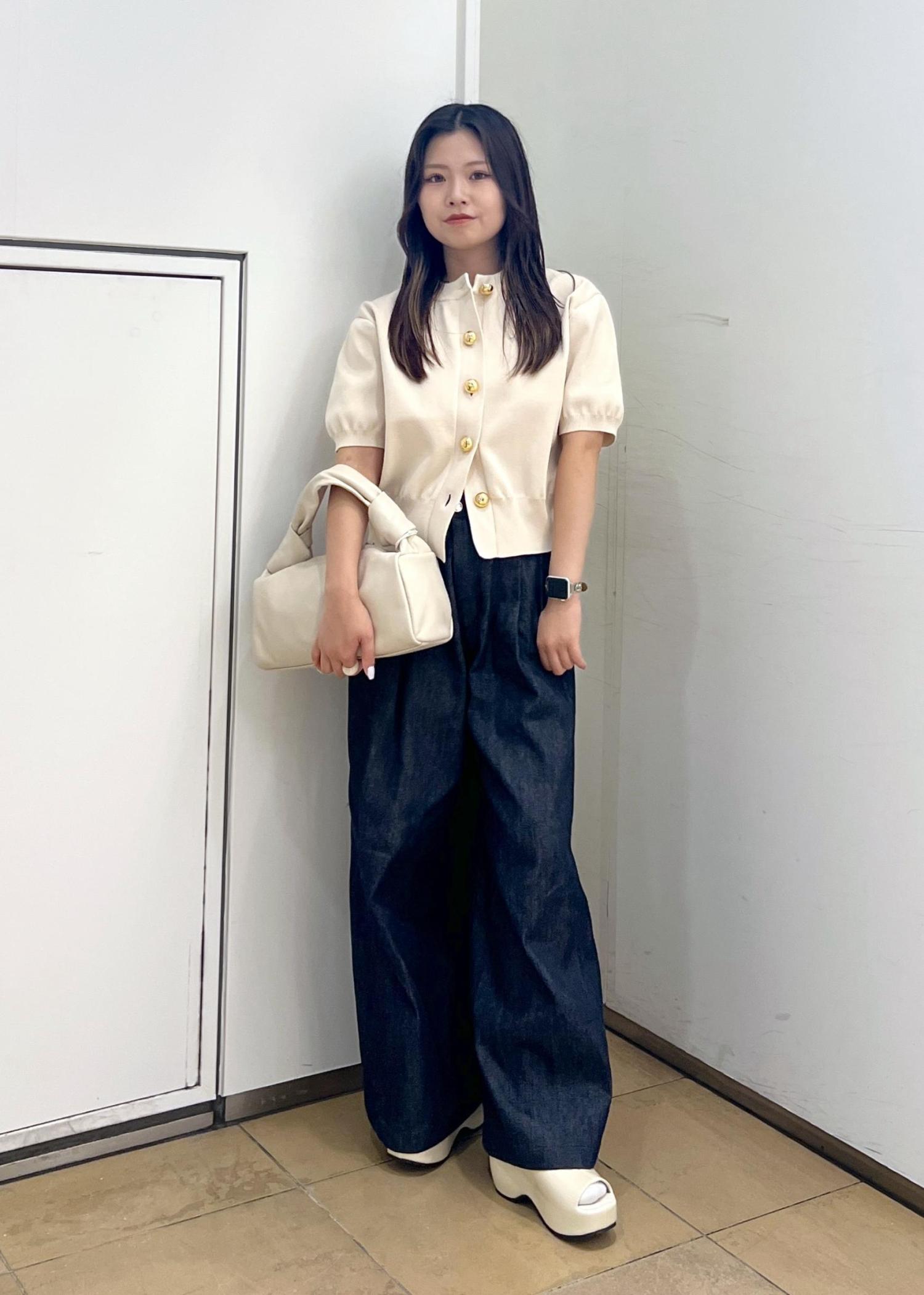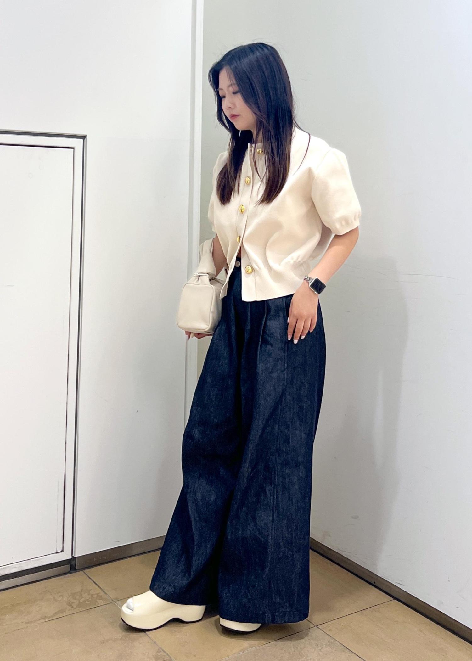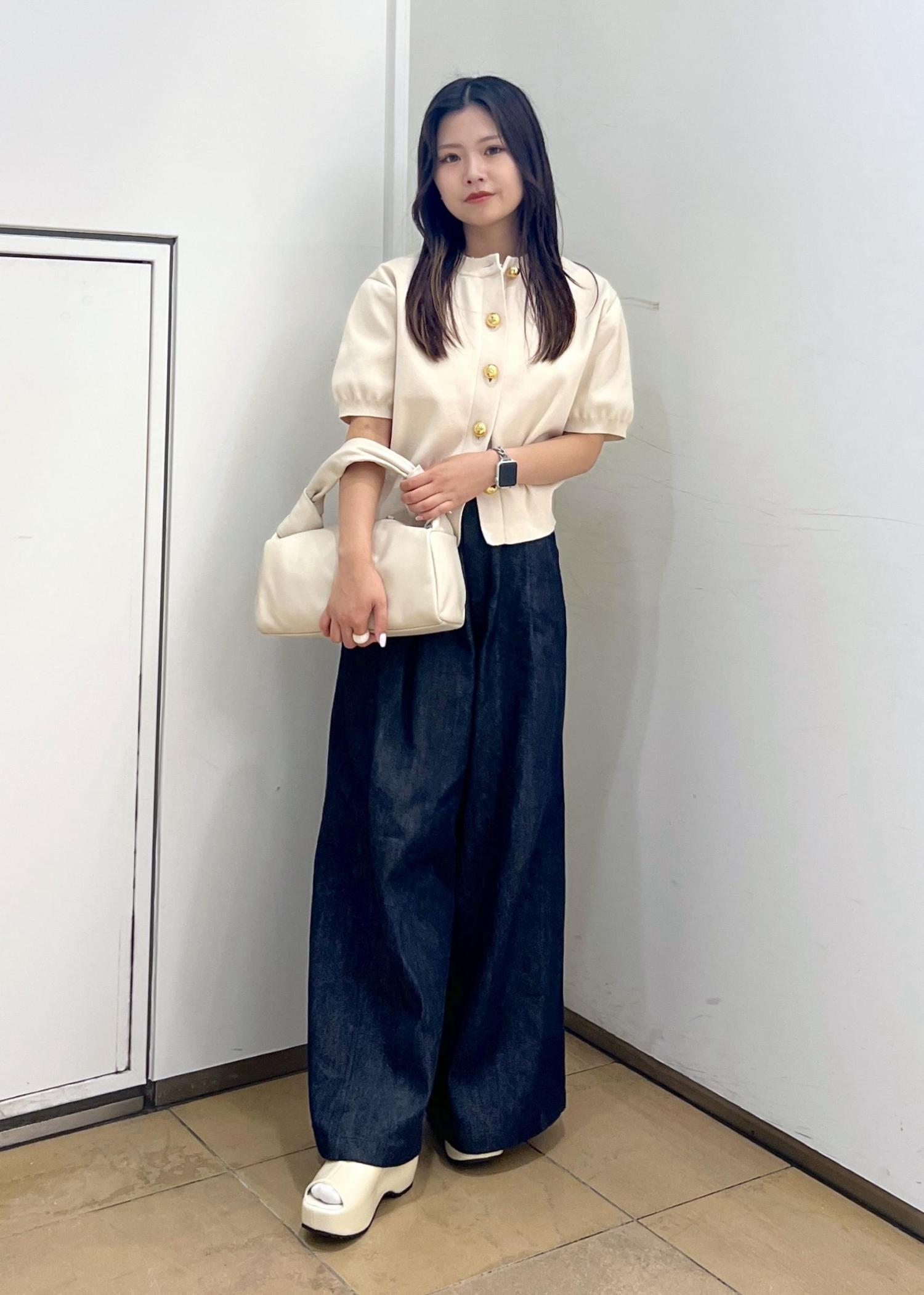 デザイン自体がオシャレなので、ボトムはシンプルなデニムで◎