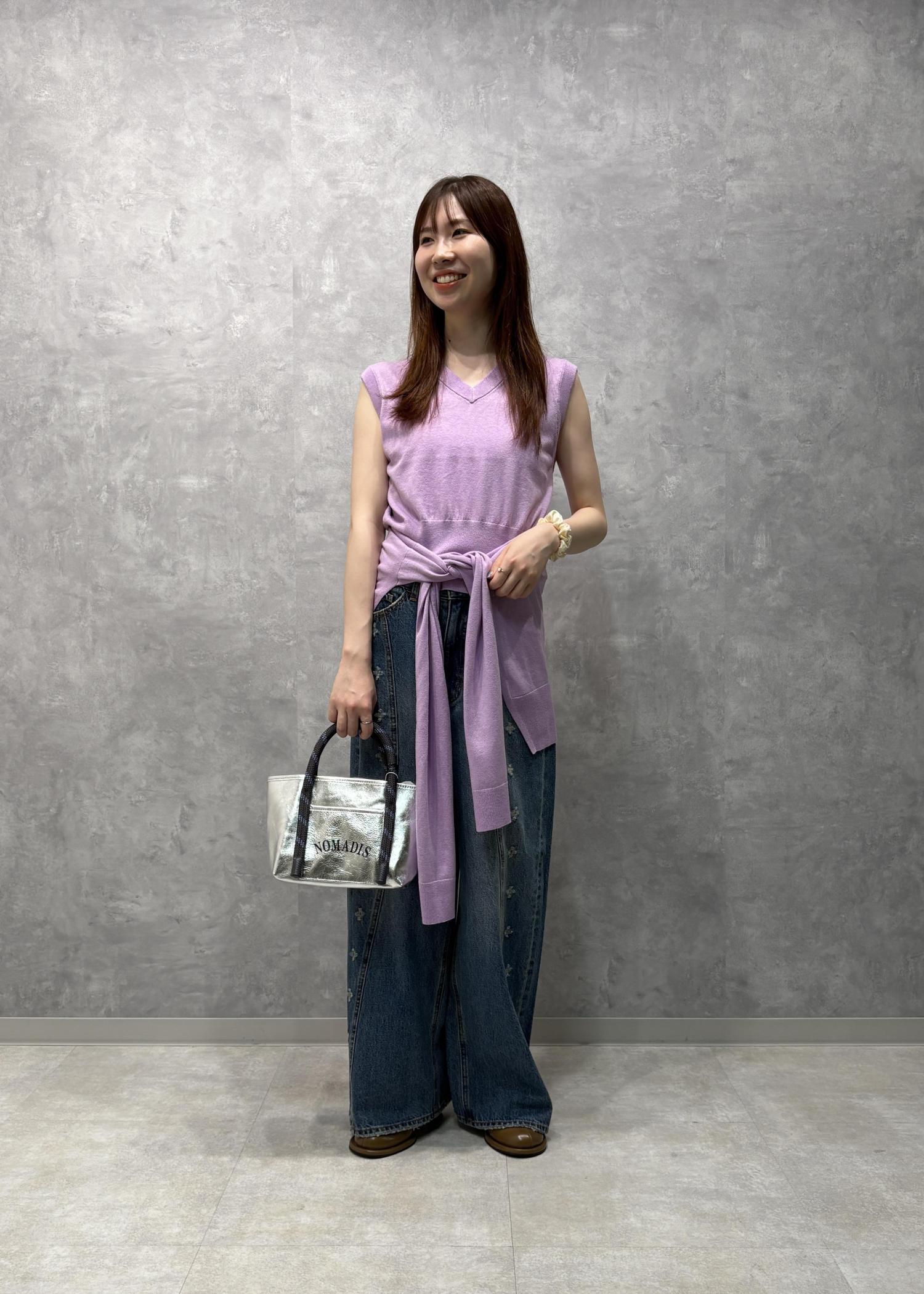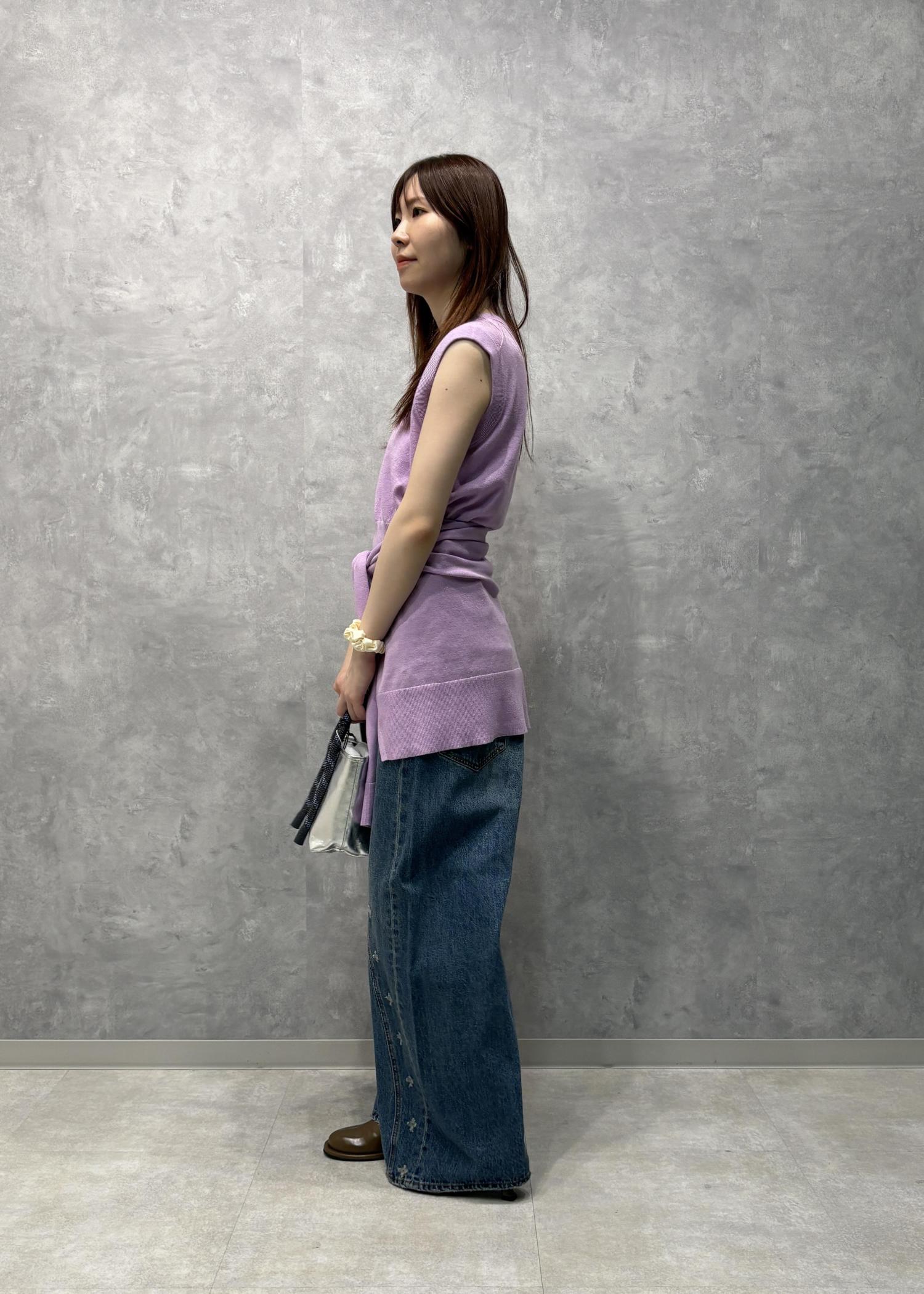 トップスはさまざまな着方を楽しめる優れもの。今回は腰に巻いてみましたがビスチェ風に着用するのもお気に入り。また印象の違うスタイリングになるのでおすすめです♪